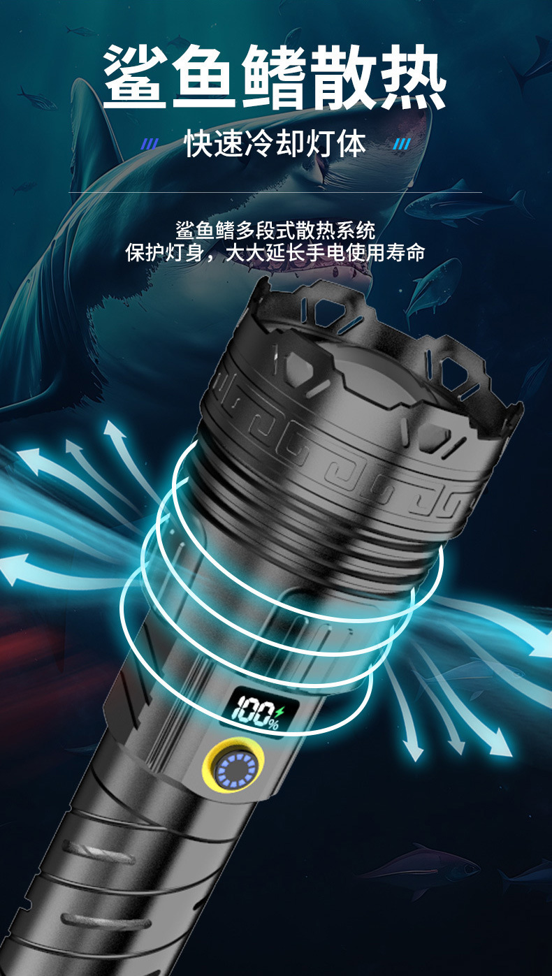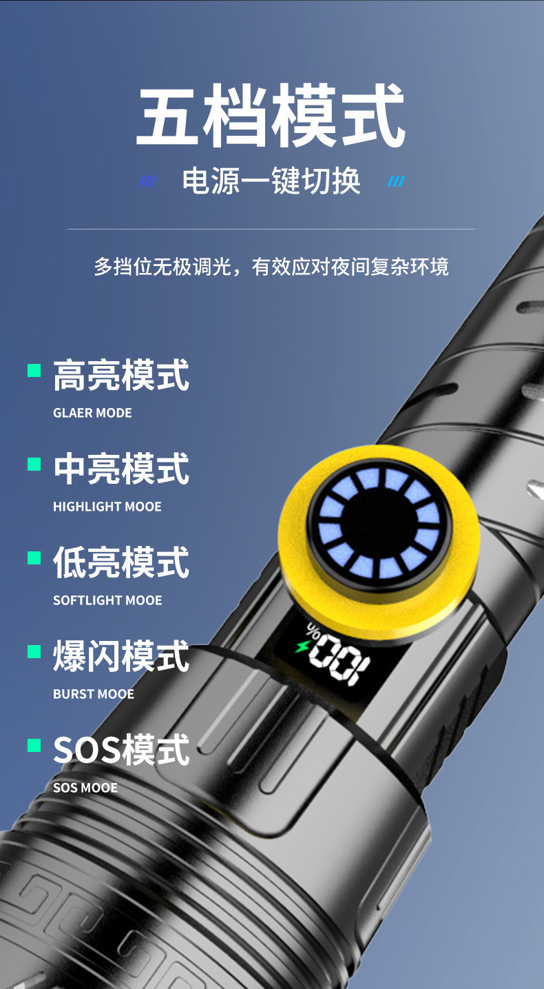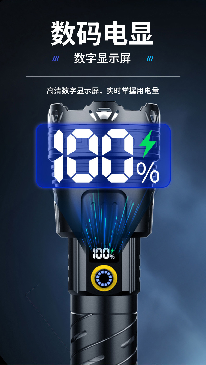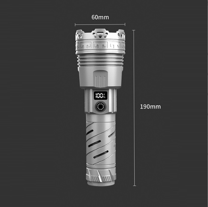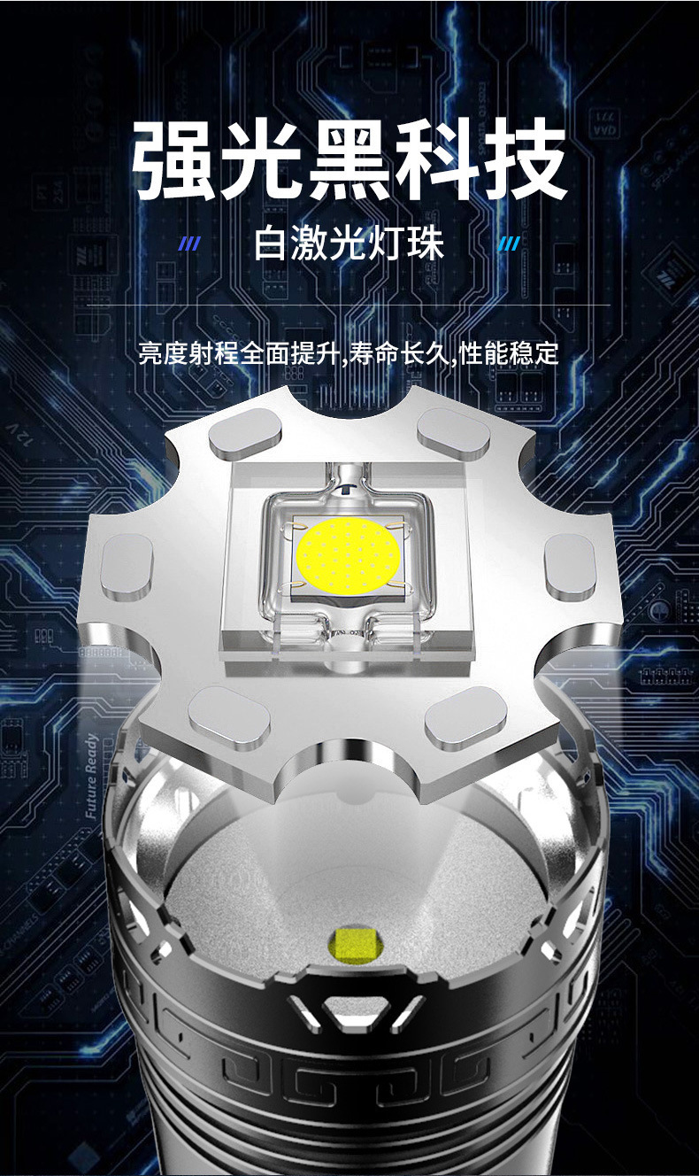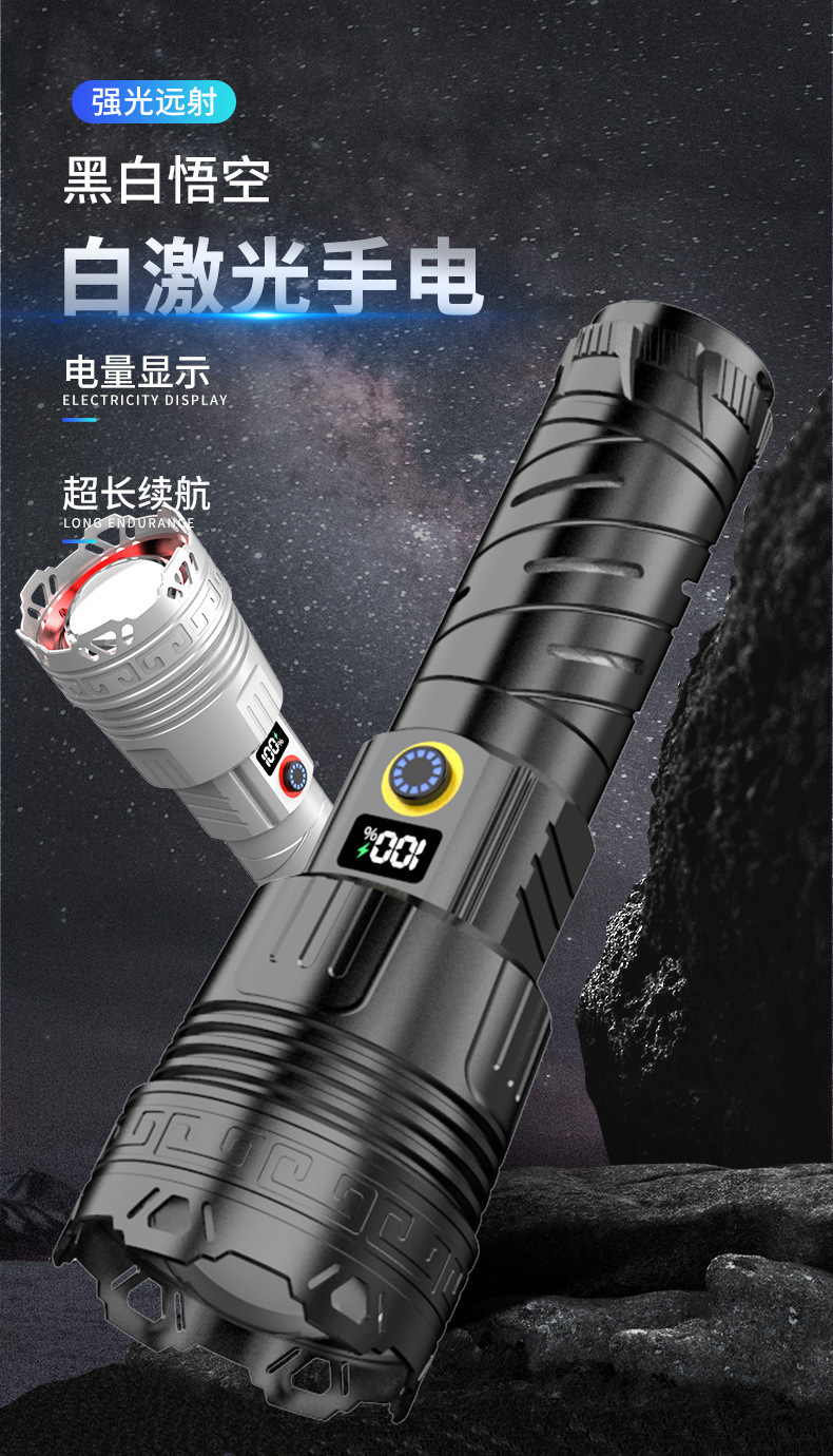 LED 알루미늄 합금 손전등 강한 빛 폭발 레이저 대포 긴 배터리 수명 야외 충전 휴대용 다기능 작업 조명