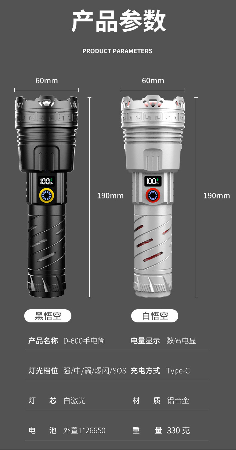 • 검정색 [백색 레이저 + 26650 리튬 배터리]