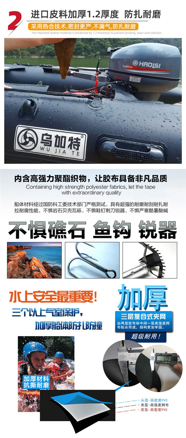 야외 낚시 및 래프팅 두꺼운 고무 보트 두꺼운 풍선 보트 낚시 보트 하드 바닥 방지