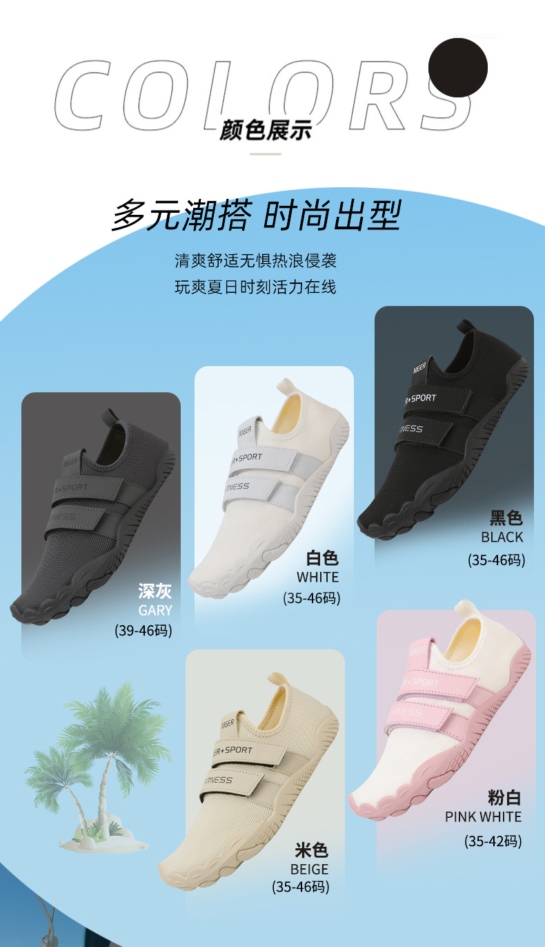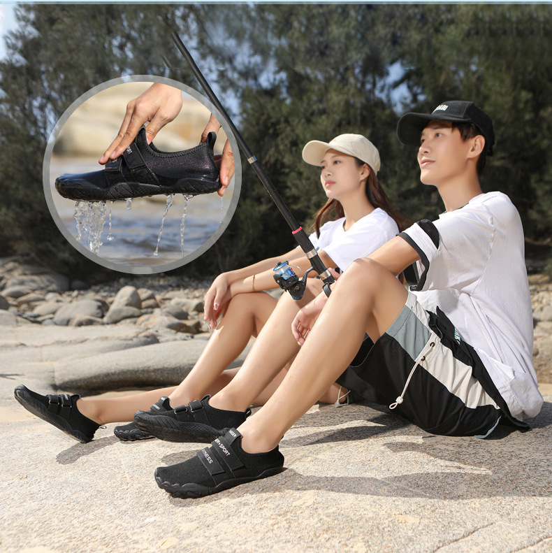 커플을 위한 새로운 야외 통기성 플라이 니트 다섯 손가락 신발, 미끄럼 방지 수영 신발, 해변 신발, 실내 피트니스 트레이닝 신발스토어 가기