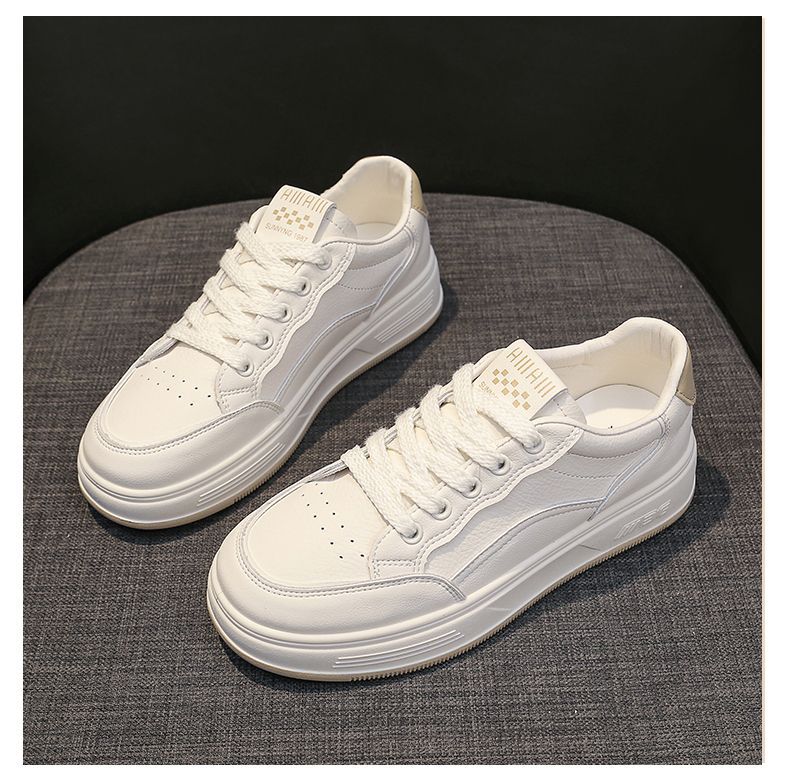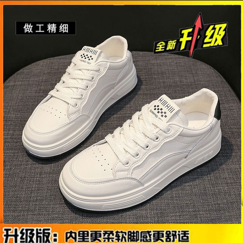 탑 레이어 소 가죽 작은 흰색 신발 여성의 2025 봄과 여름 새로운 부드러운 바닥 스포츠 캐주얼 여성 신발 플랫 보드 신발스토어 가기