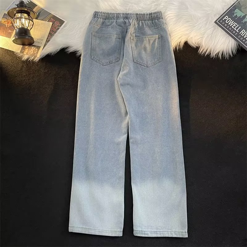 아메리칸 레트로 팬츠 하이 스트리트 인 트렌디 남성 웃는 얼굴 그래피티 레트로 청바지 루즈 스트레이트 와이드 팬츠 여름스토어 가기