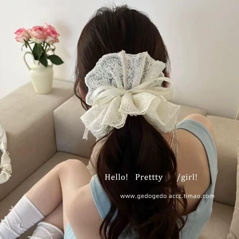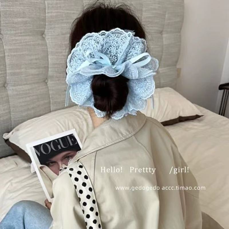 • 블랙 거즈 레이스 드로스트링 머리끈