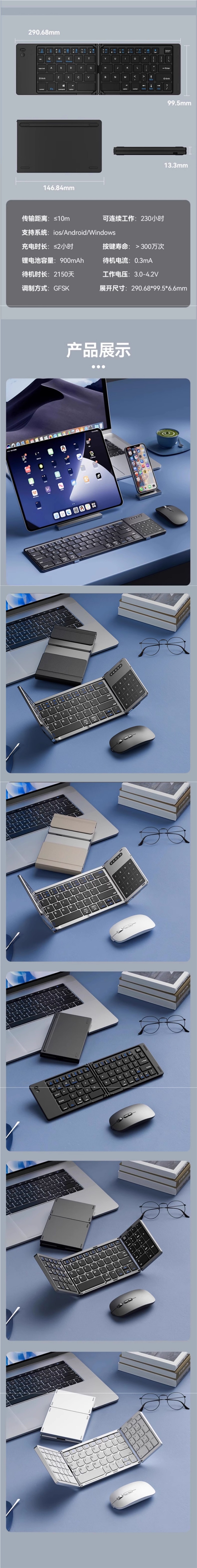 접이식 블루투스 무선 키보드 터치패드 노트북 ipad 태블릿 전화 사무실 휴대용 마우스 세트