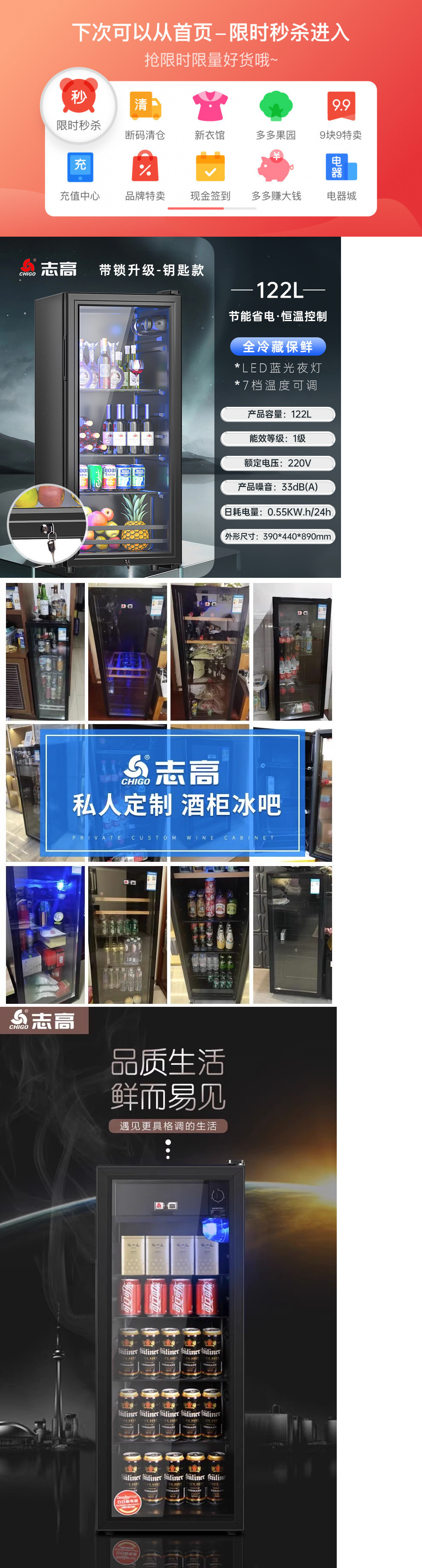 Chigo Ice Bar 가정용 냉장고 디스플레이 캐비닛 소형 냉장고 음료 레드 와인 캐비닛 대용량 차 보존 캐비닛스토어 가기