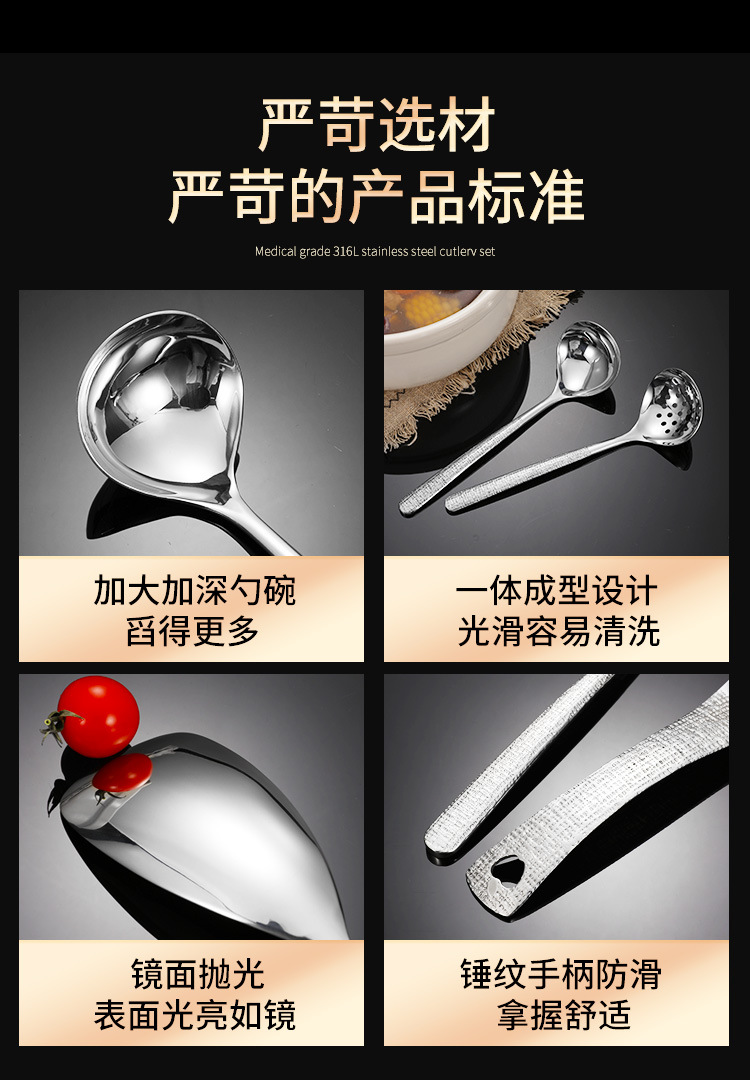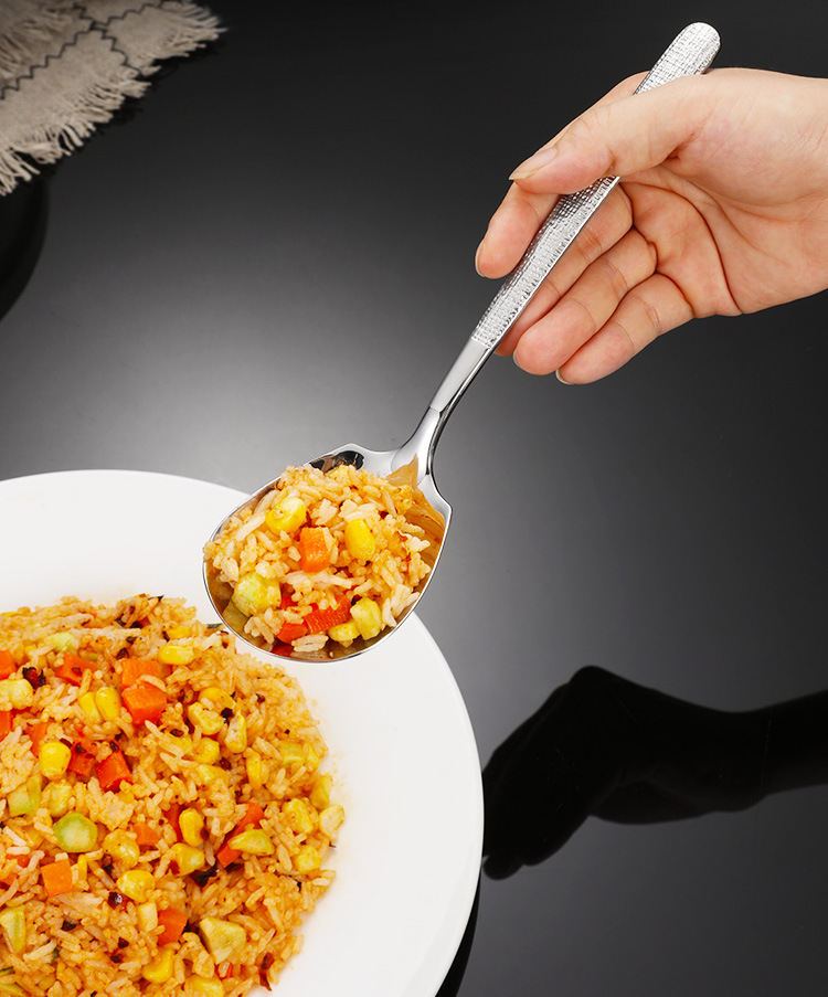 국경 간 18-10 스테인레스 스틸 망치 패턴 작은 주걱 수프 스푼 소쿠리 가정용 호텔 공용 식사 스푼 보조 식품 주걱