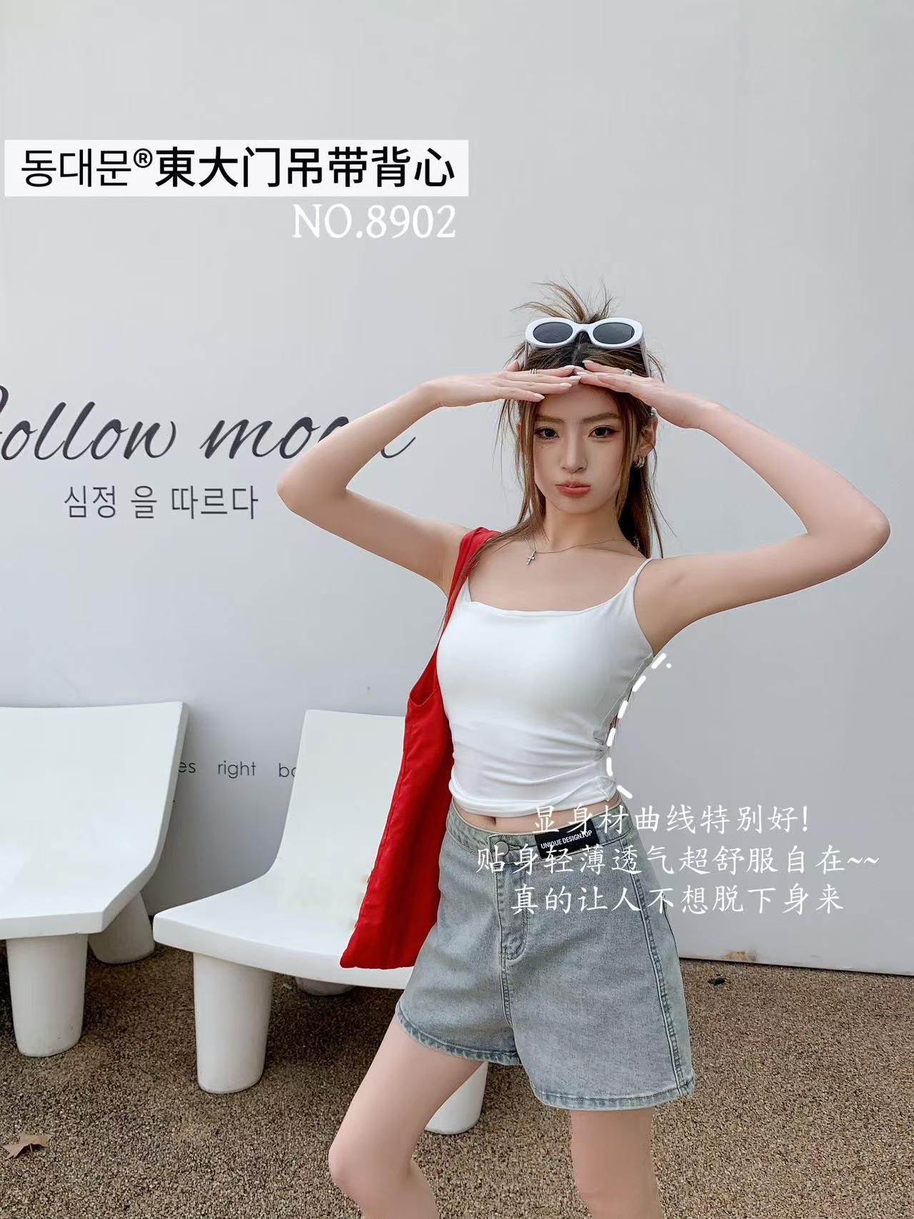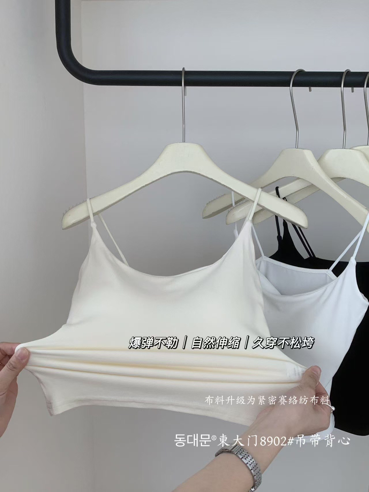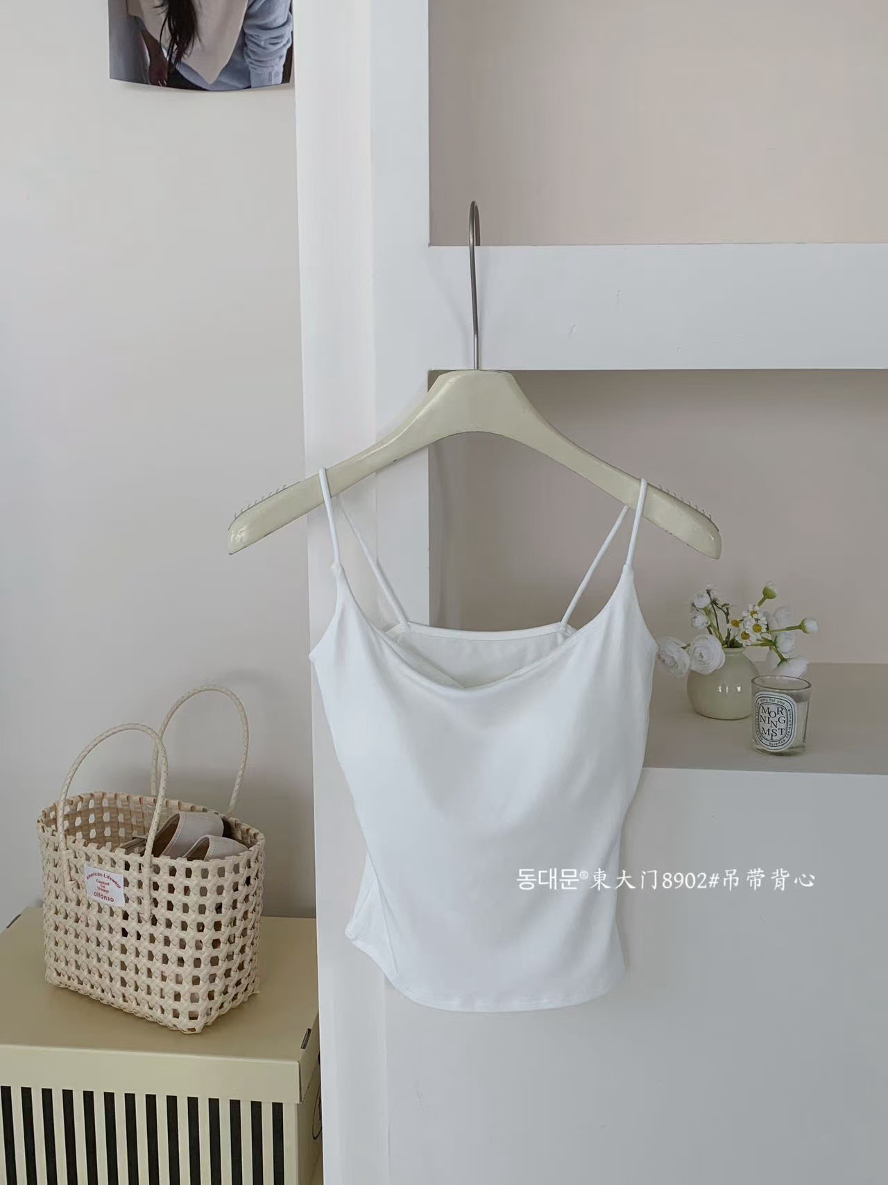 동대문 8902 순수한 매력의 끈나시 여성용 2026 신상품 내장형 가슴 패드 슬림핏 인기 만점 다용도 작은 조끼스토어 가기