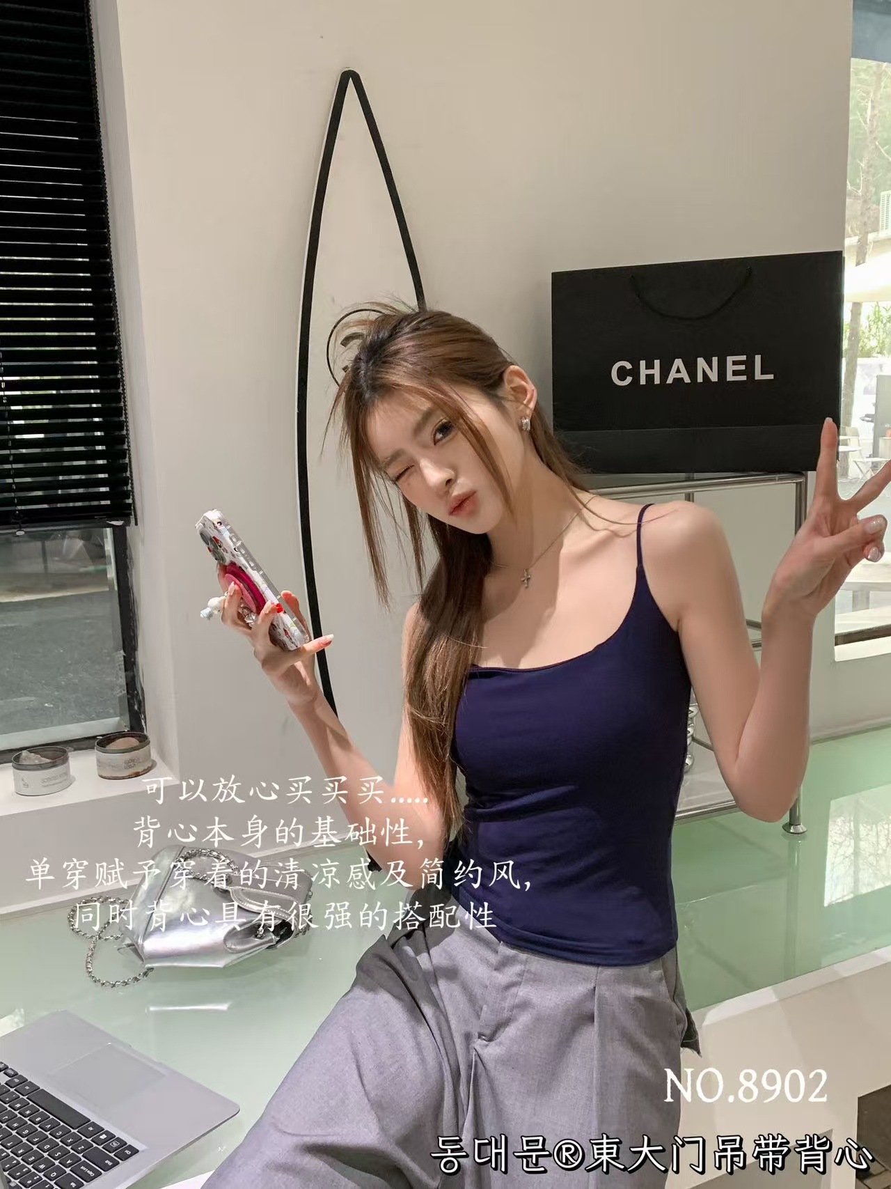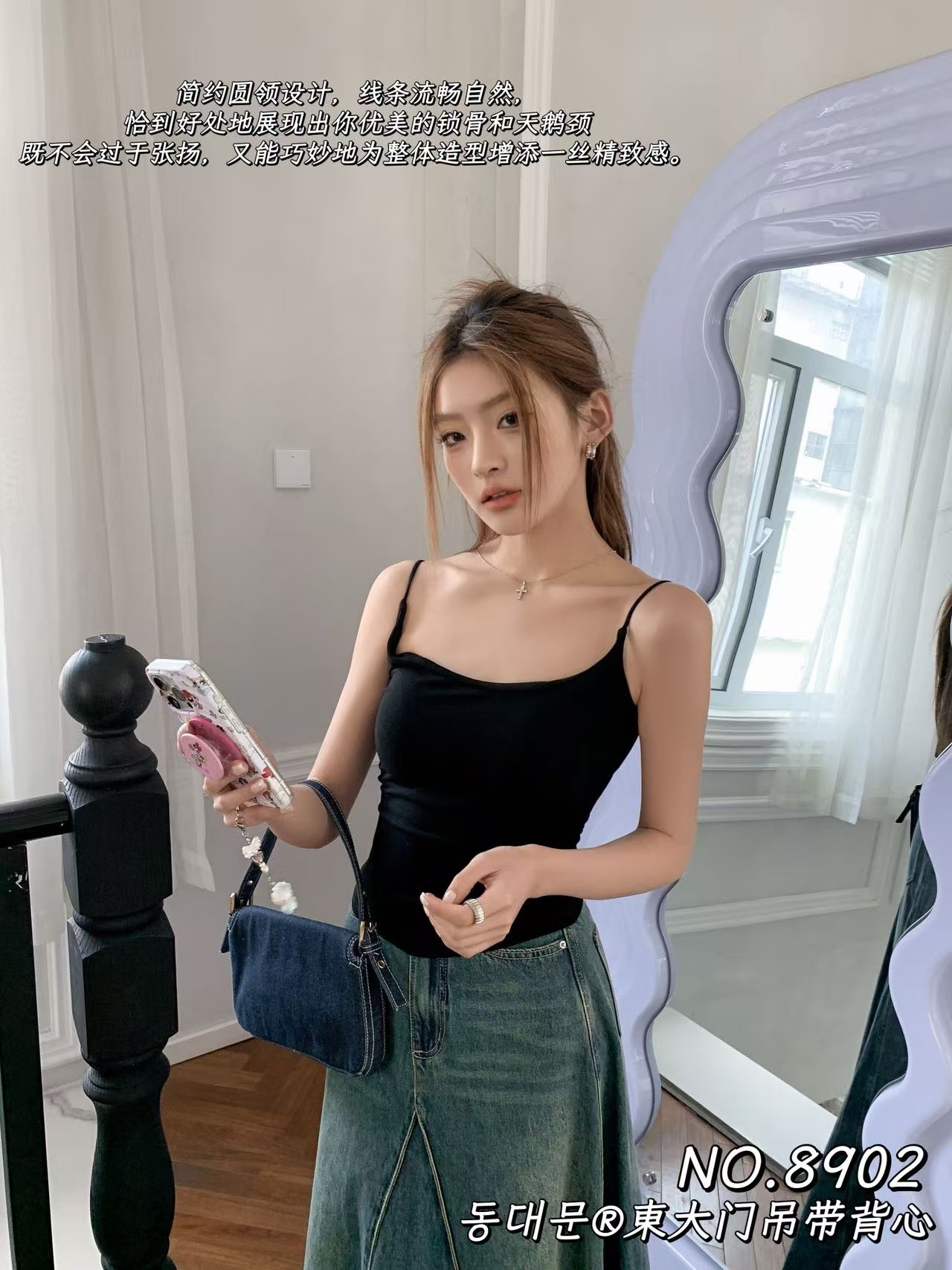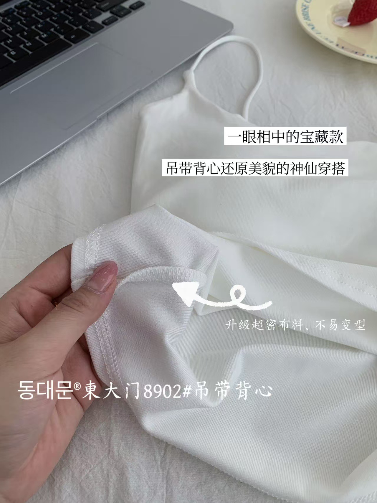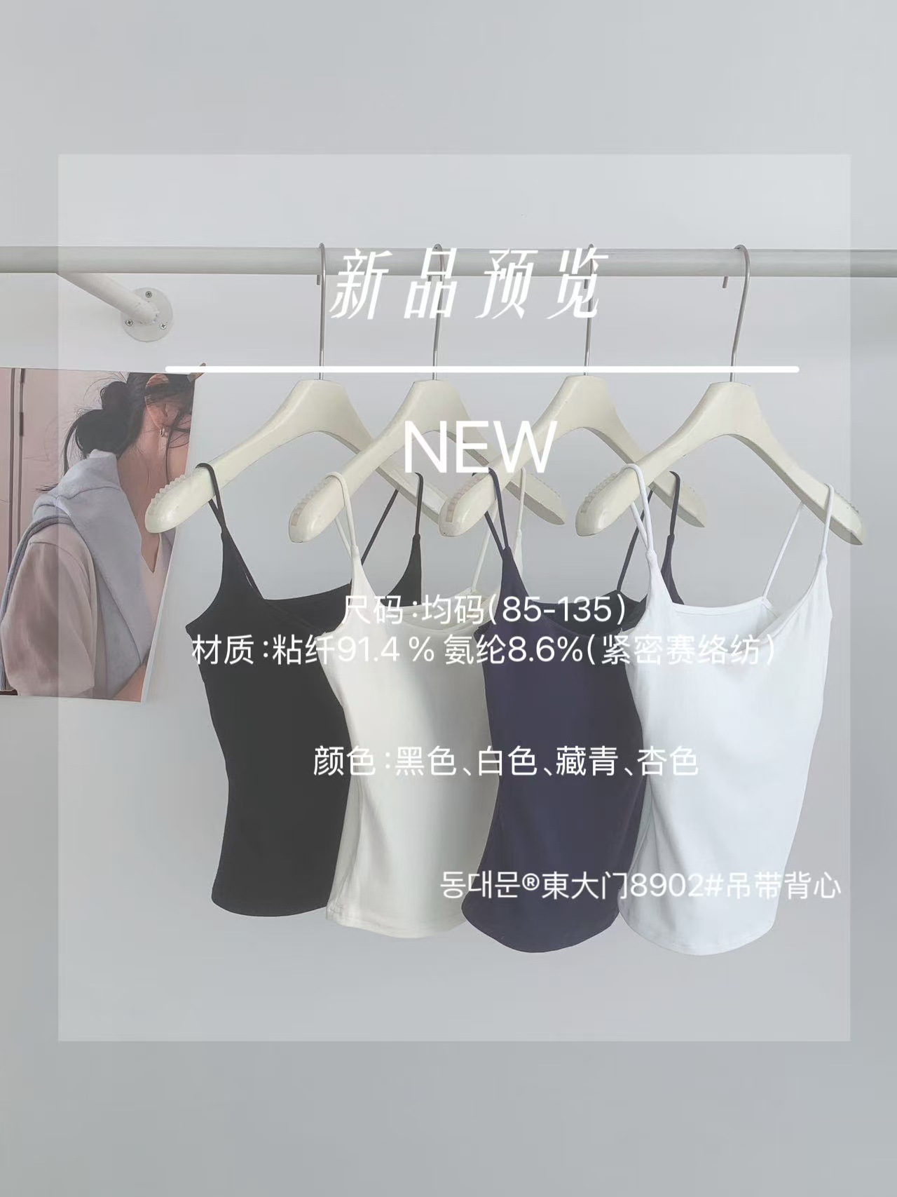 동대문 8902 순수한 매력의 끈나시 여성용 2026 신상품 내장형 가슴 패드 슬림핏 인기 만점 다용도 작은 조끼스토어 가기