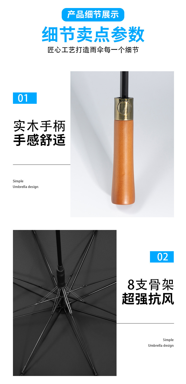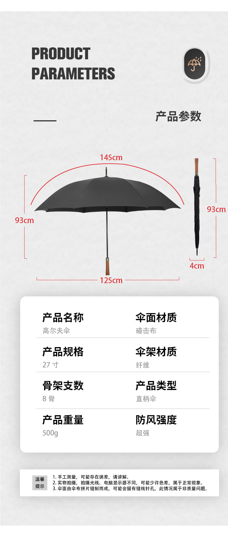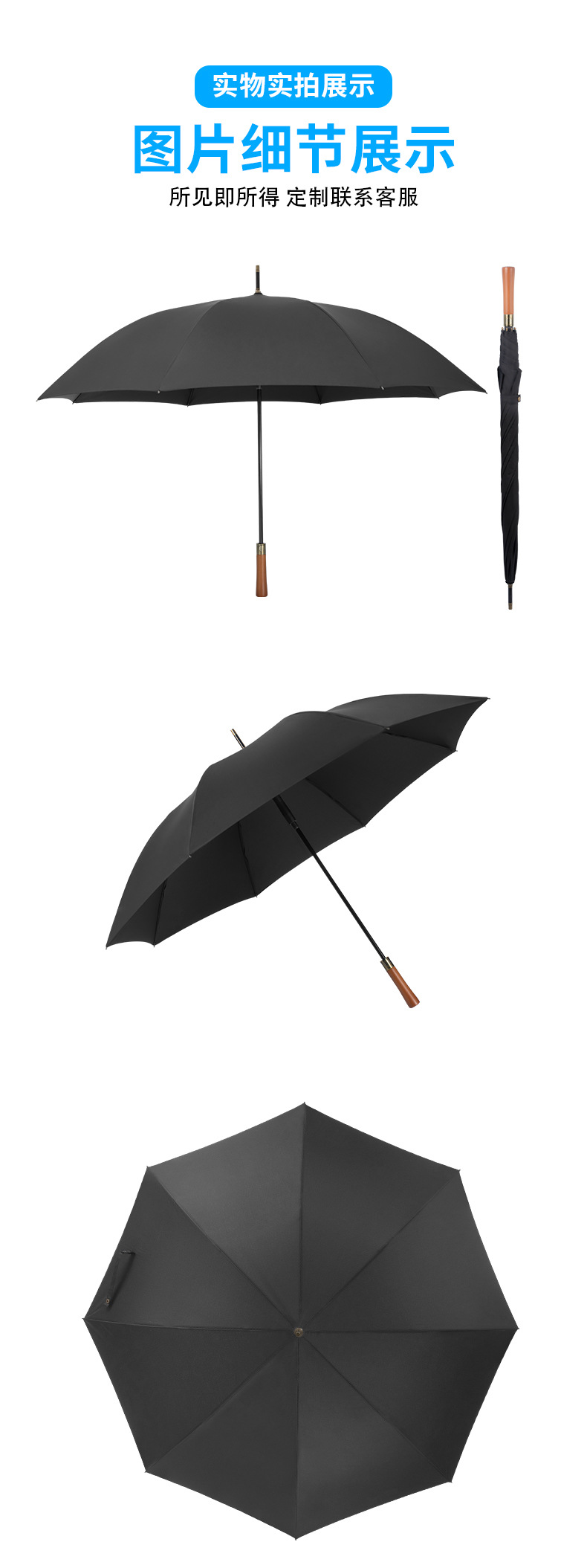 단단한 나무 손잡이 골프 우산 사용자 지정 로고 긴 손잡이 우산 큰 초대형 높은 수준의 유도 방지 폭풍 큰 우산