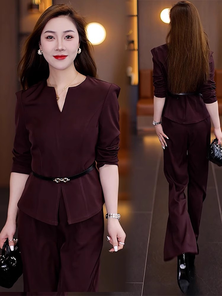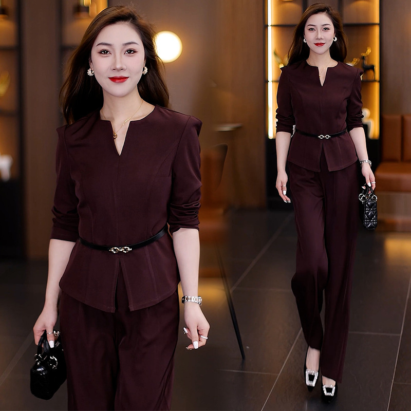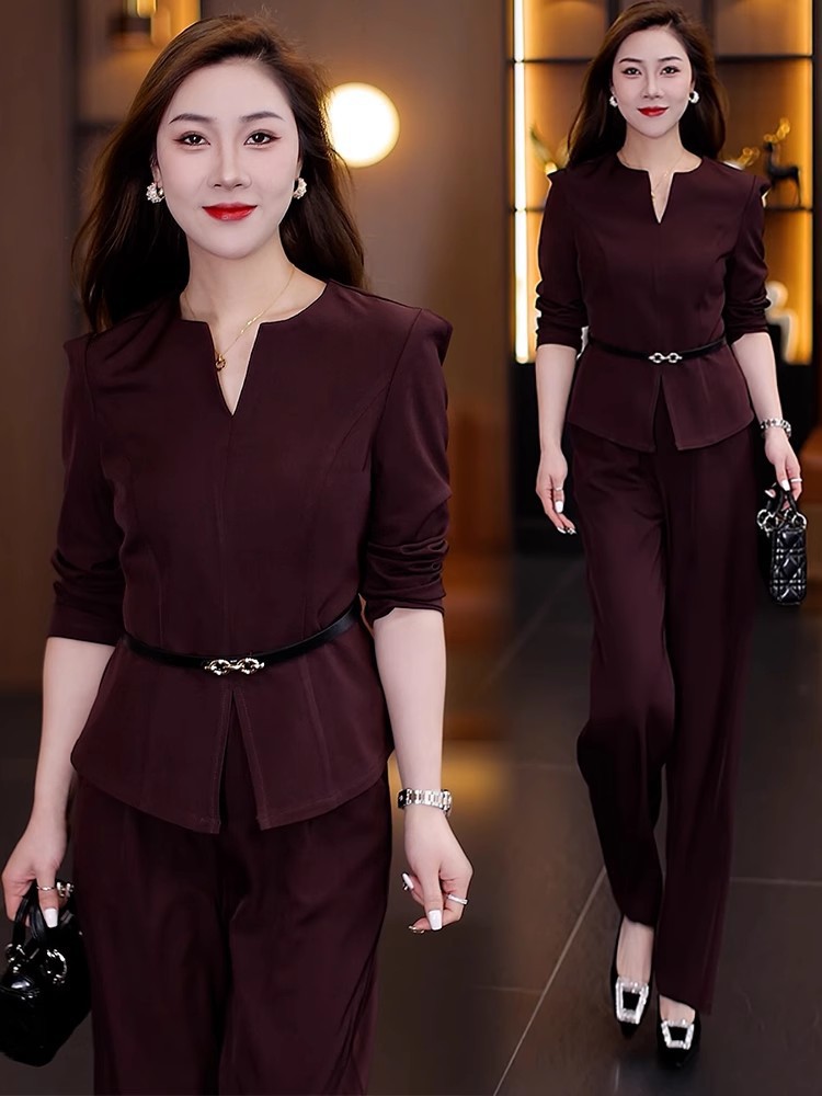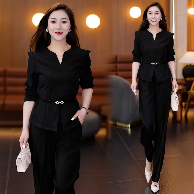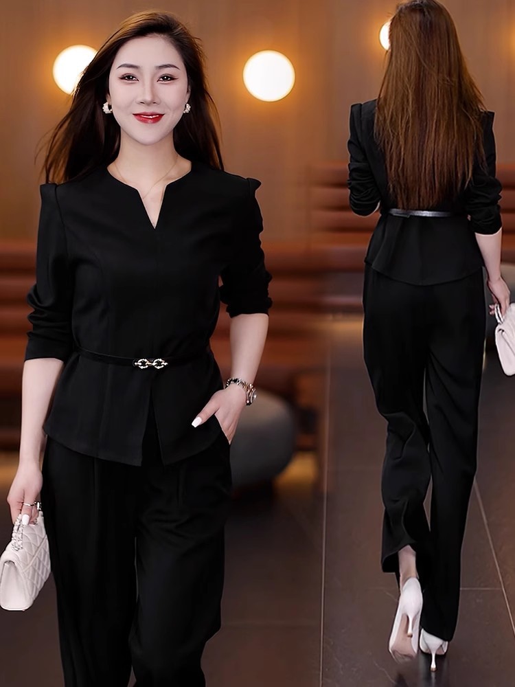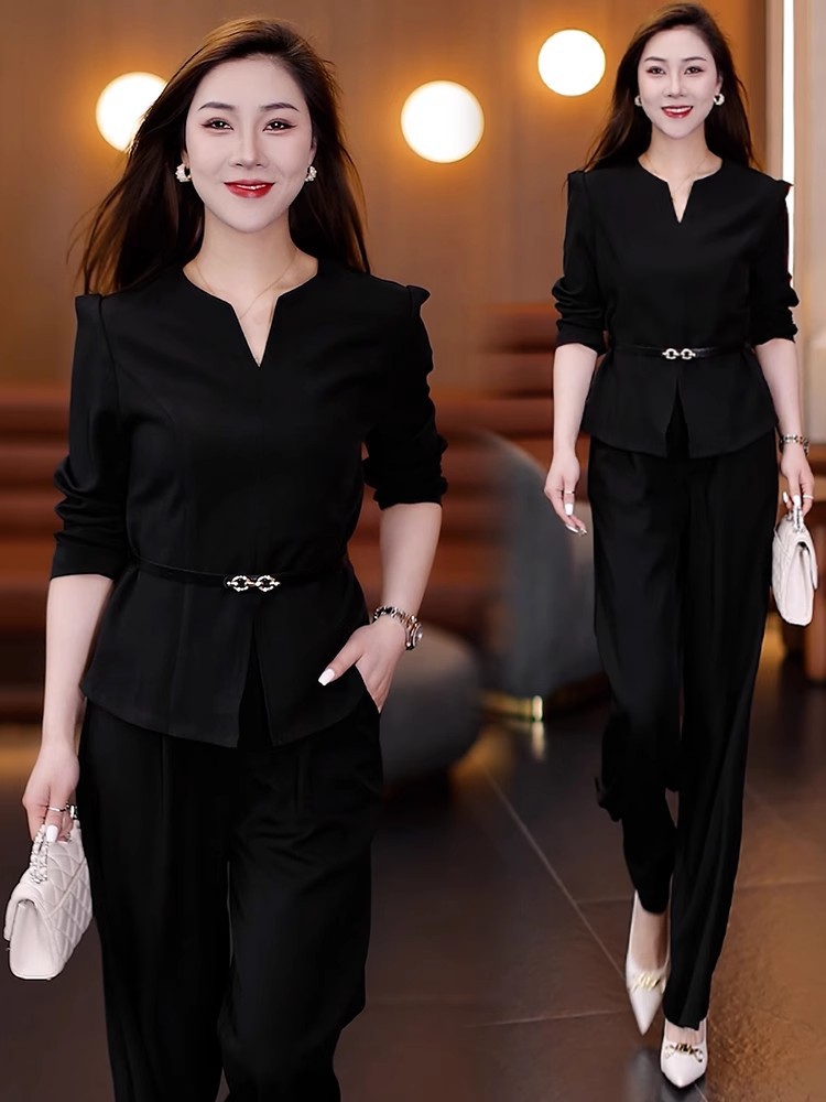 패션 세트 여성 2025 봄과 여름 새로운 우아한 슬리밍 프랑스 스타일 V 넥 탑 와이드 다리 바지 투피스 세트스토어 가기