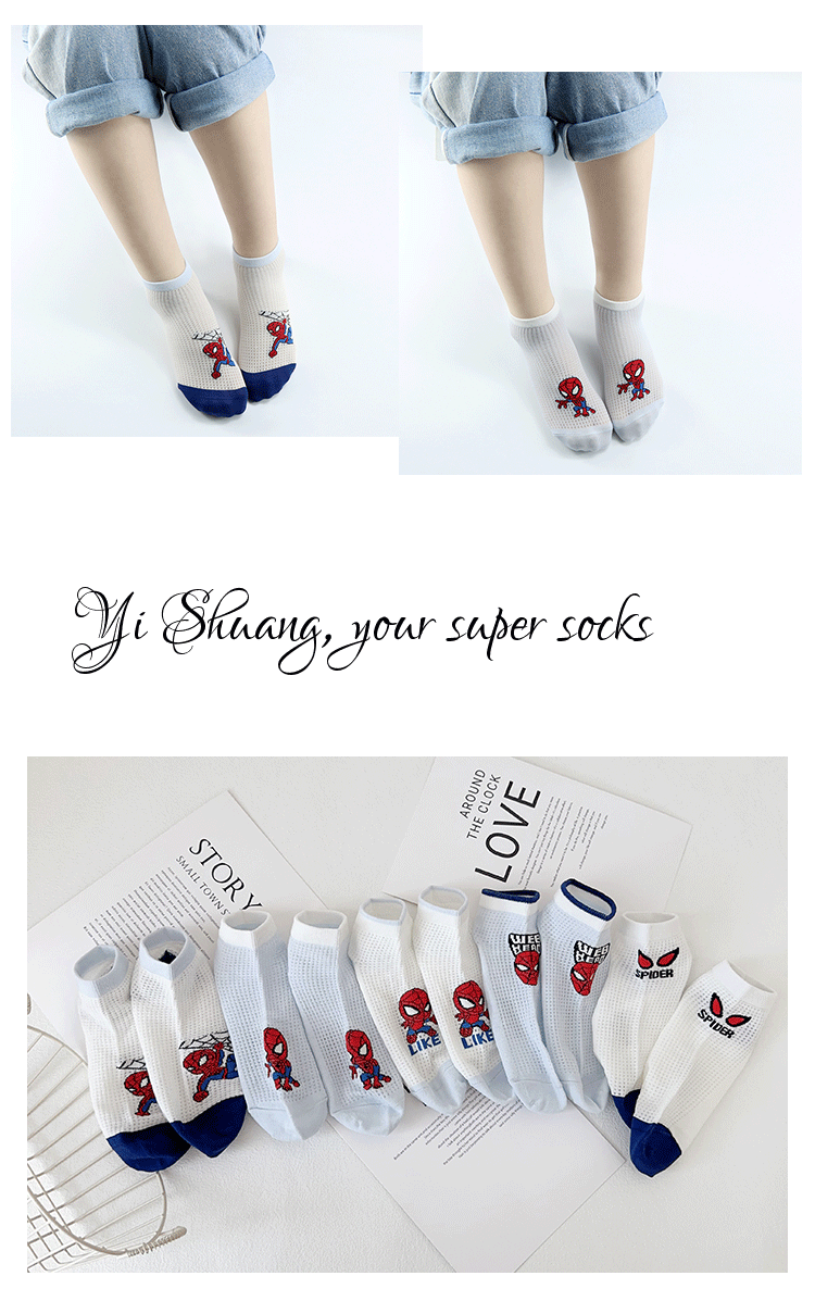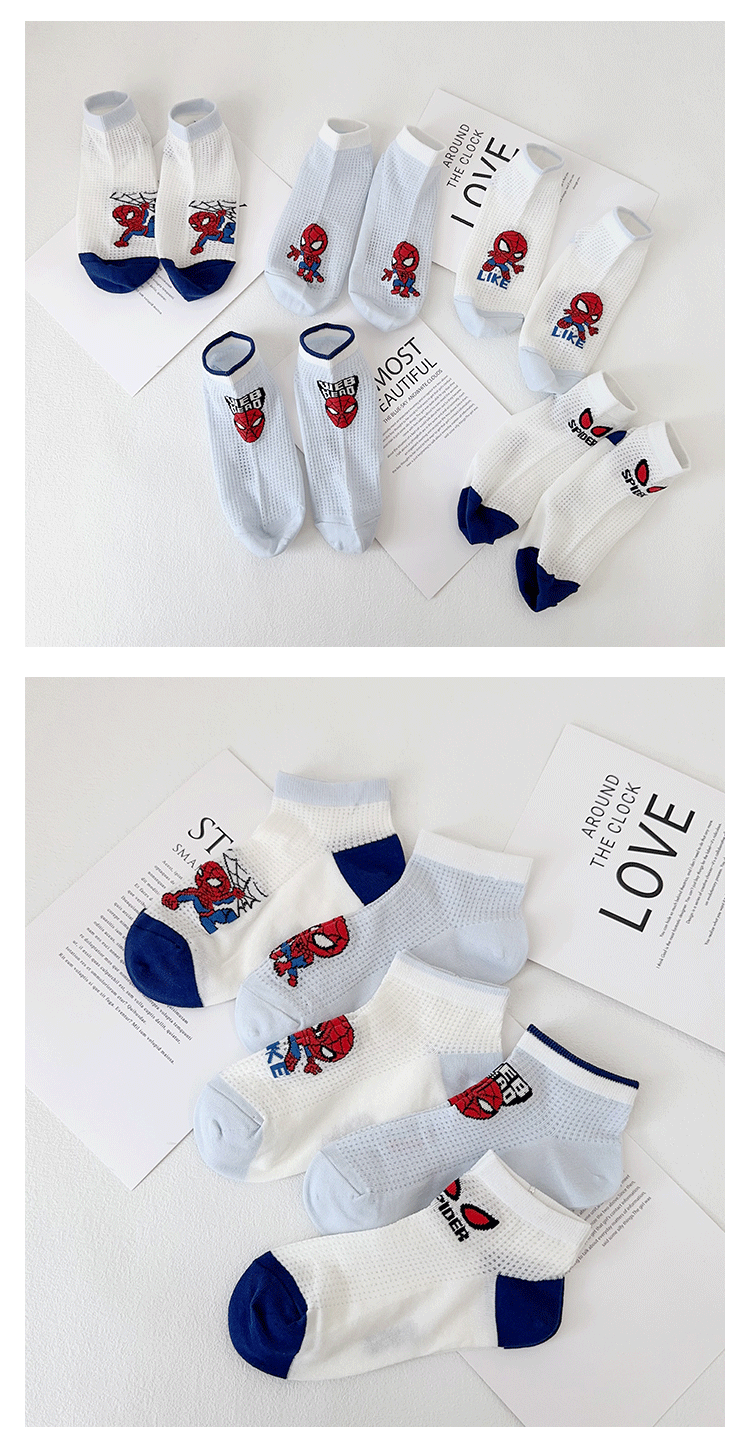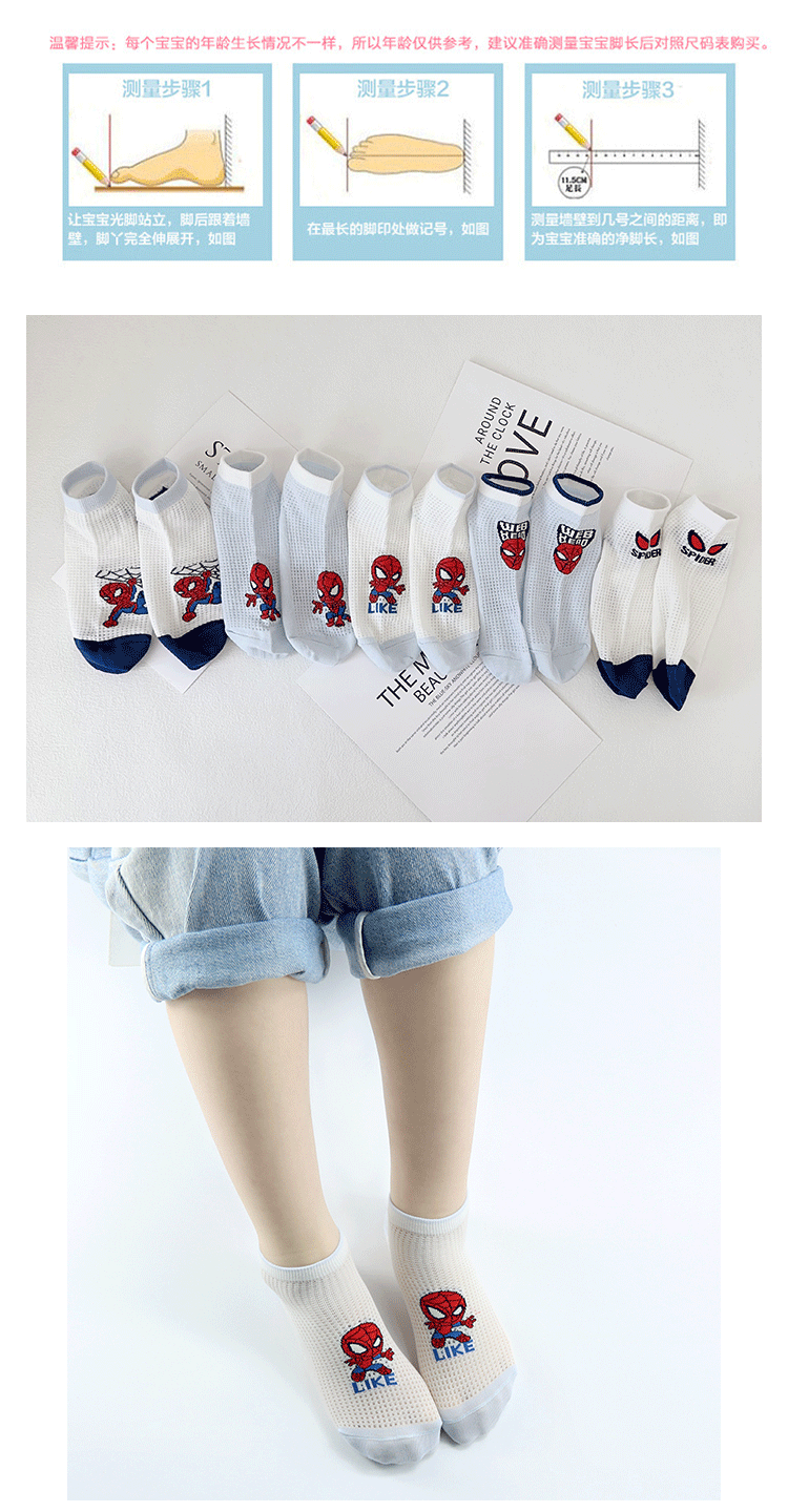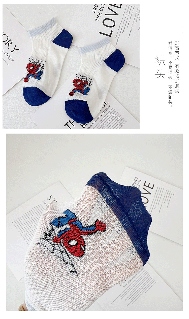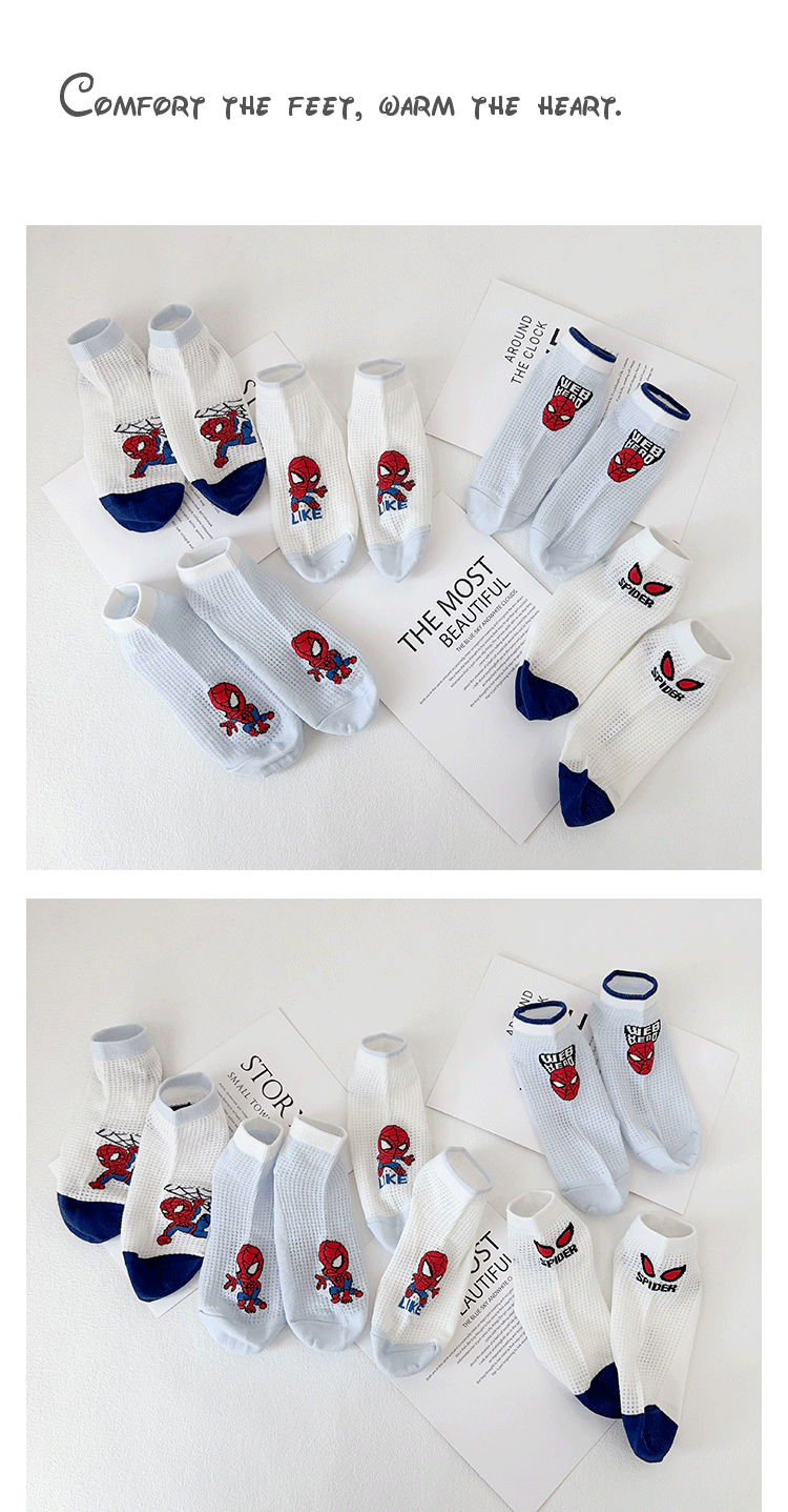 이족 쌍 어린이 양말 여름 큰 웹 만화 스파이더 맨 짧은 양말 빗 코튼 보이즈 뼈없는 면 양말 에어컨 양말스토어 가기