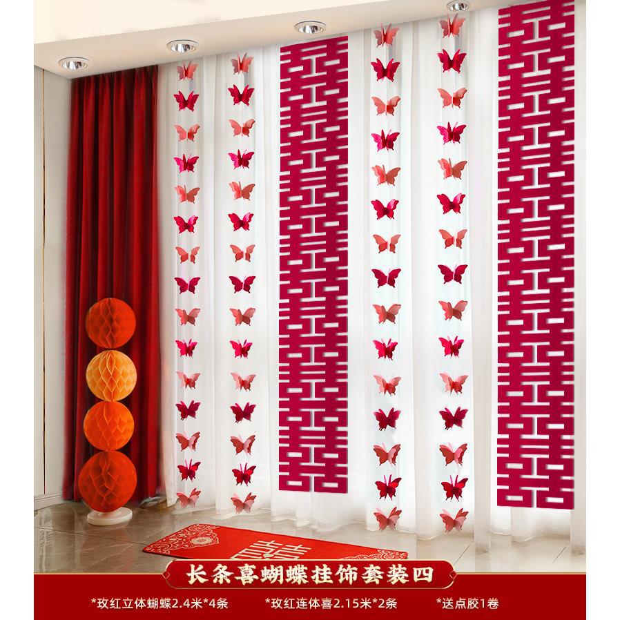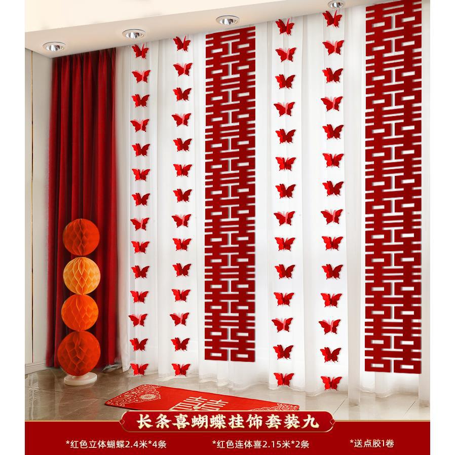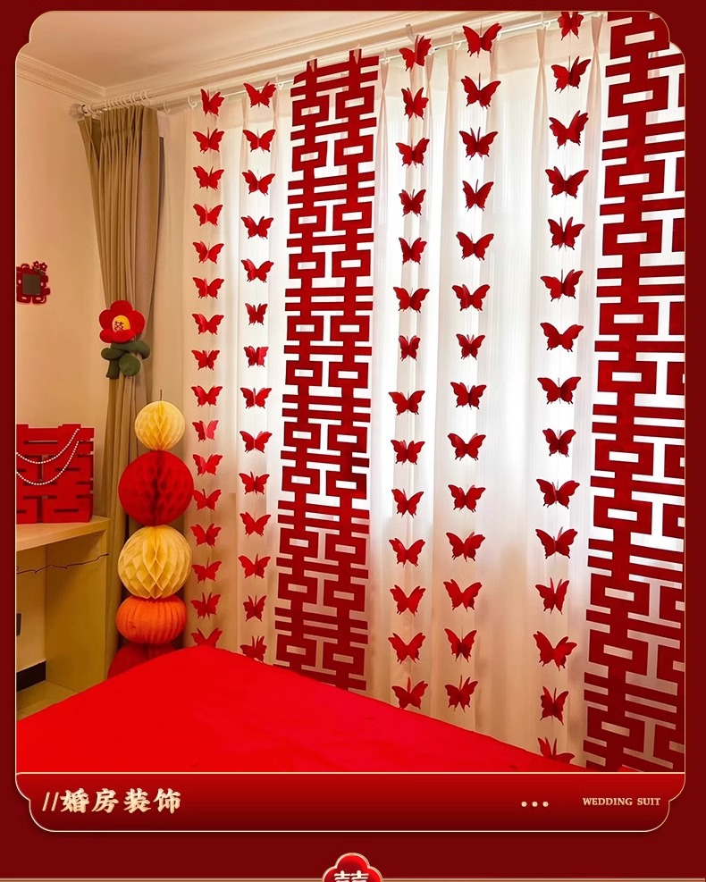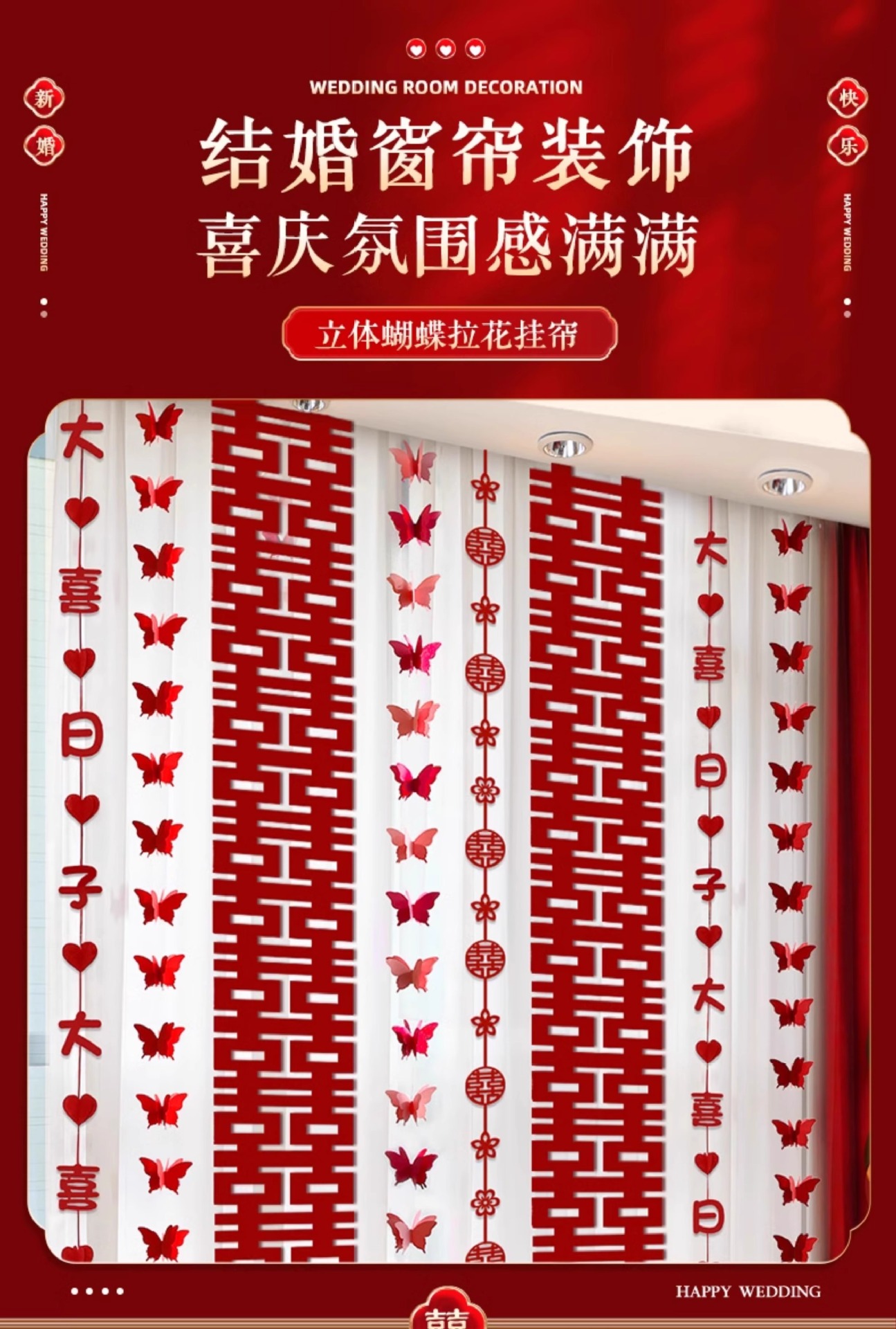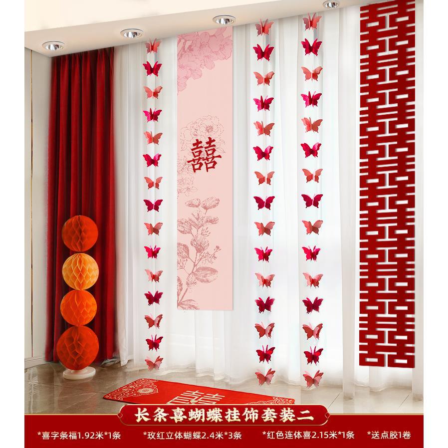 웨딩룸 레이아웃 세트, 커튼 장식, 웨딩 스트립, 입체 나비 꽃걸이, 새집 거실, 침실