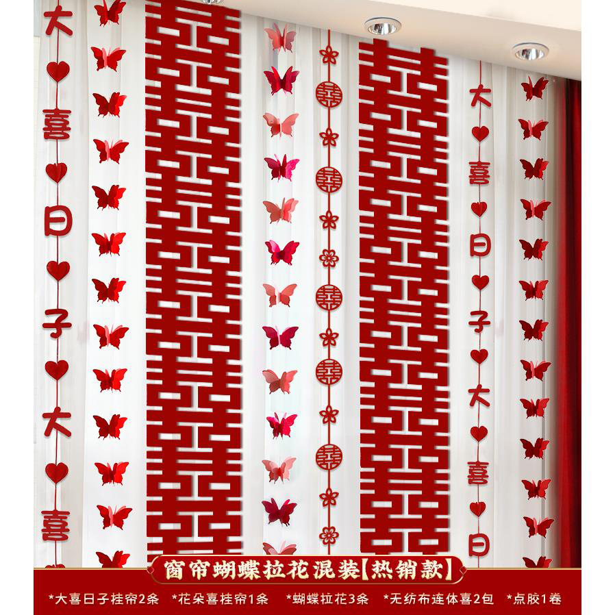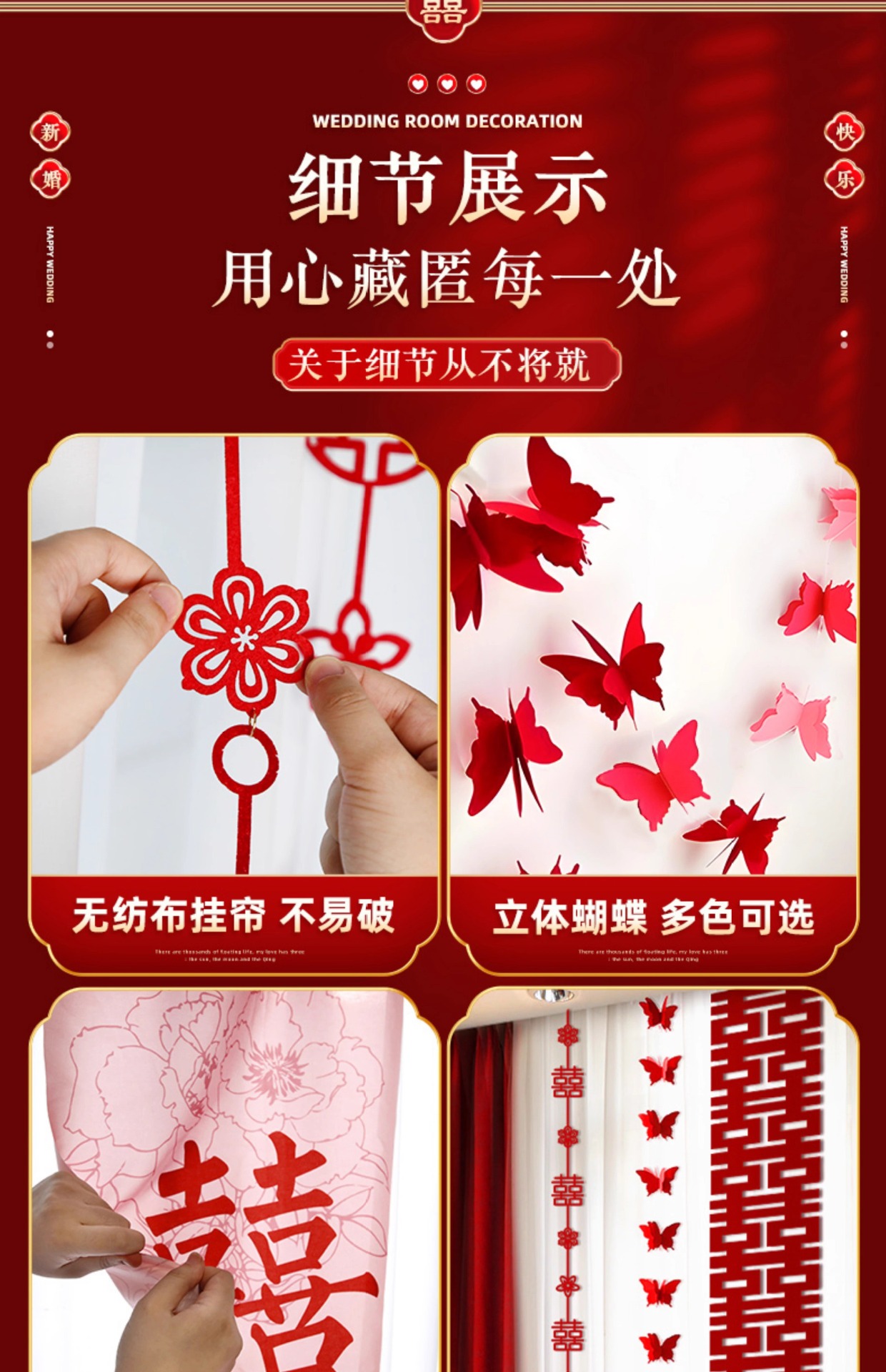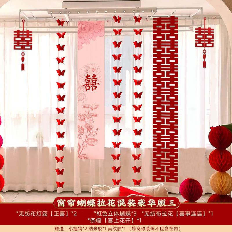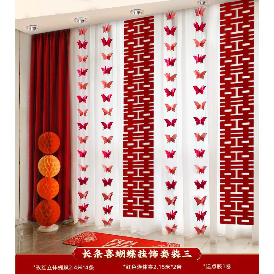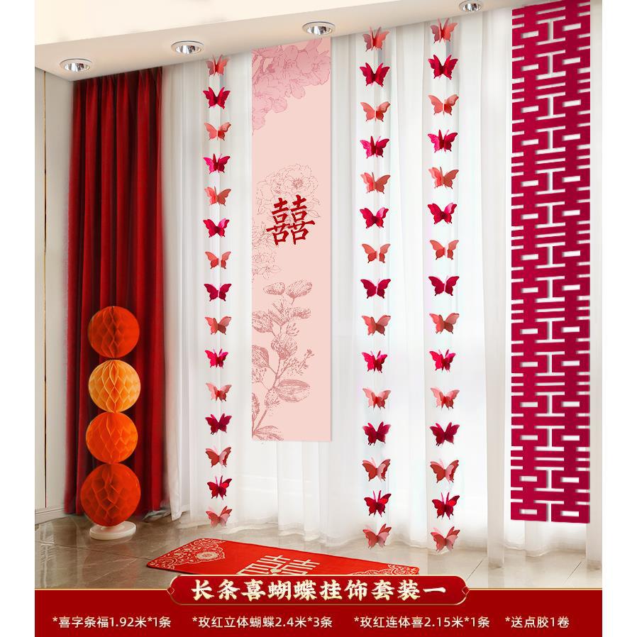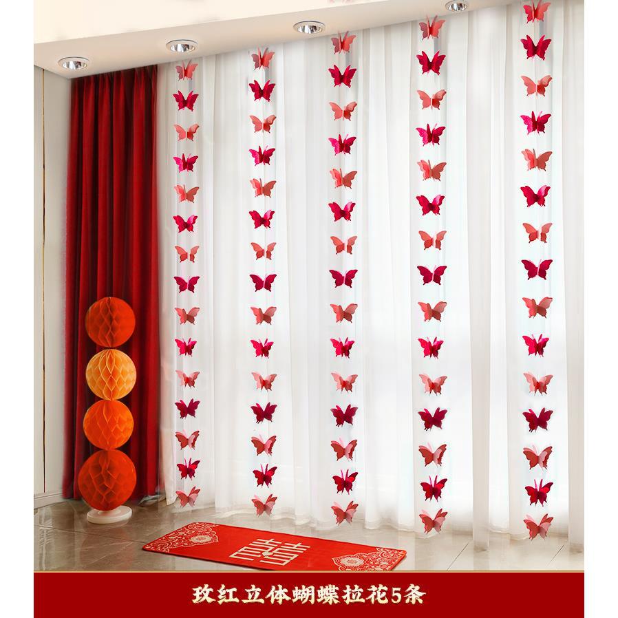 웨딩룸 레이아웃 세트, 커튼 장식, 웨딩 스트립, 입체 나비 꽃걸이, 새집 거실, 침실
