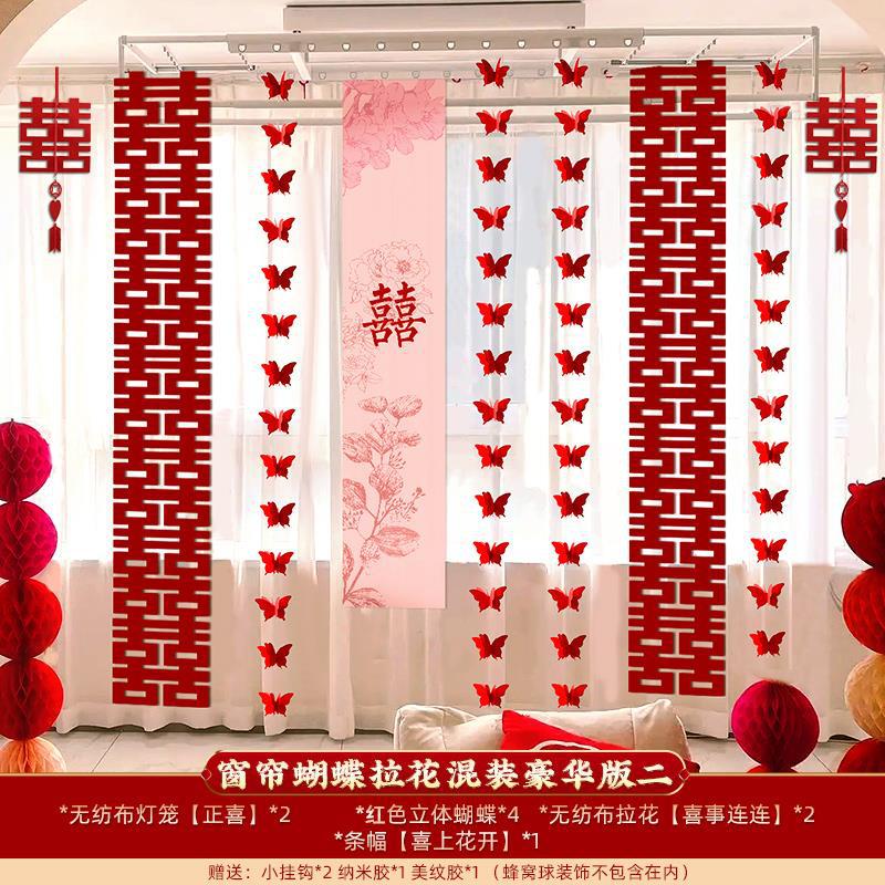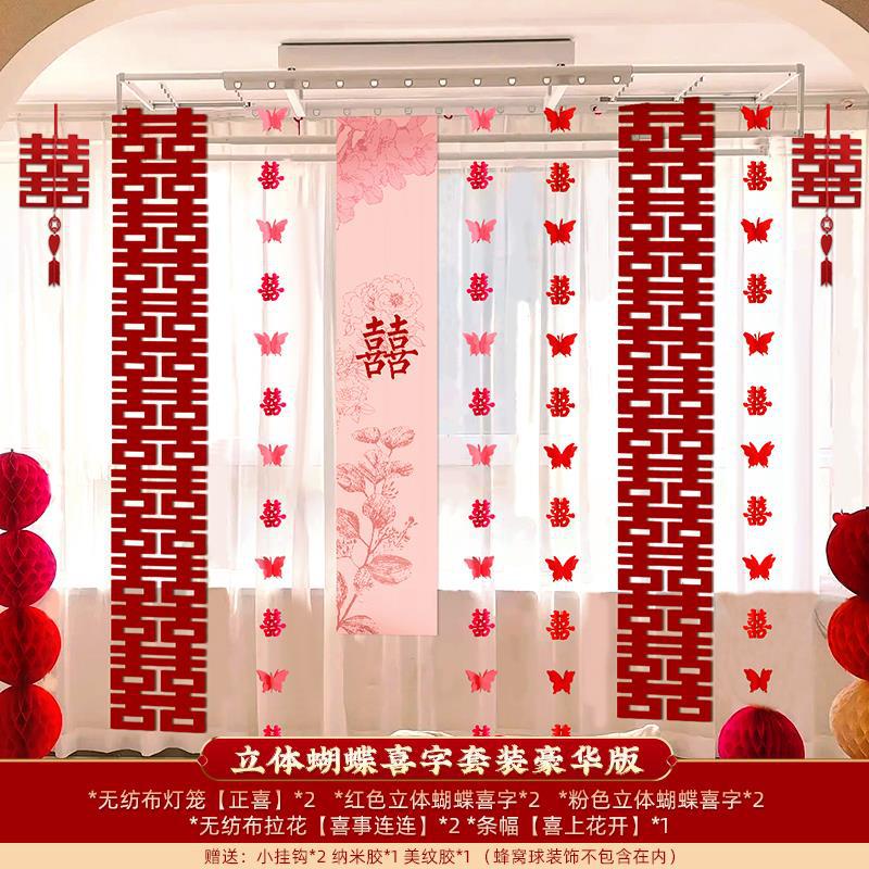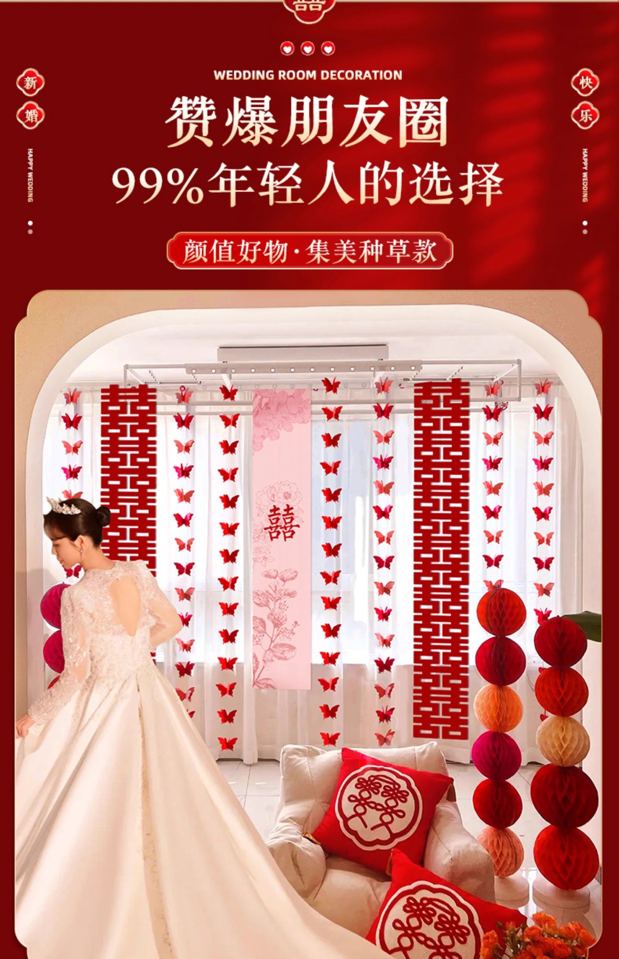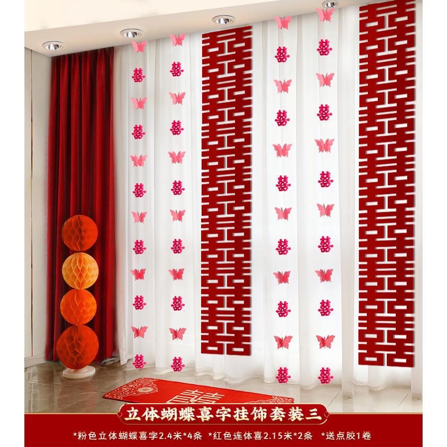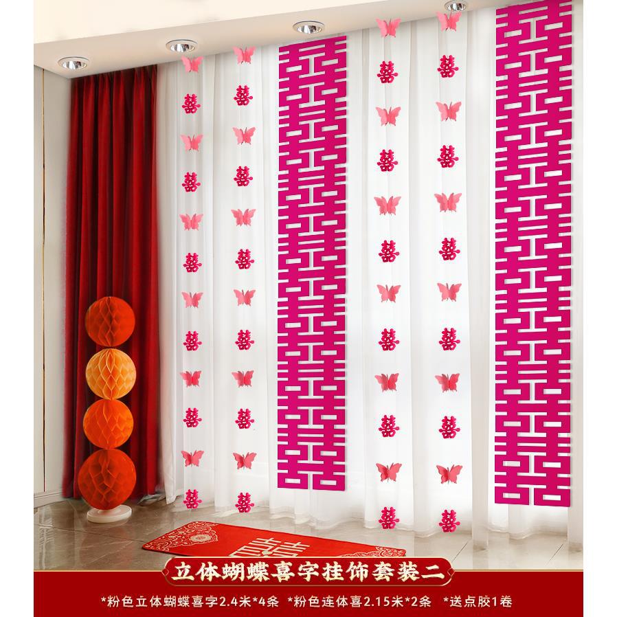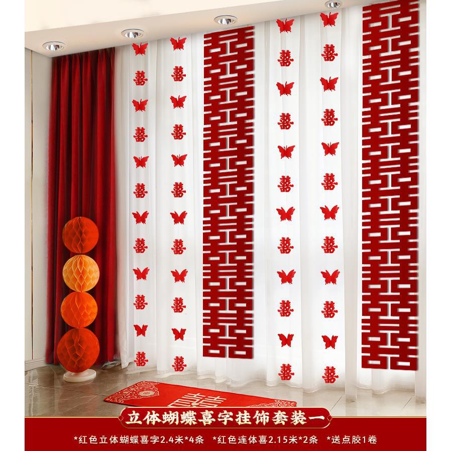 웨딩룸 레이아웃 세트, 커튼 장식, 웨딩 스트립, 입체 나비 꽃걸이, 새집 거실, 침실