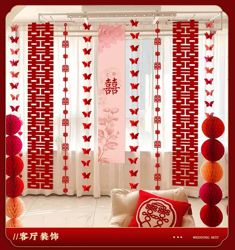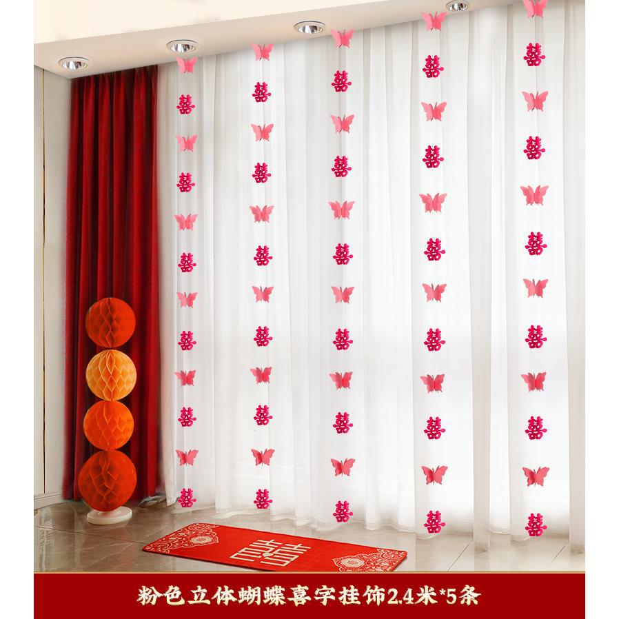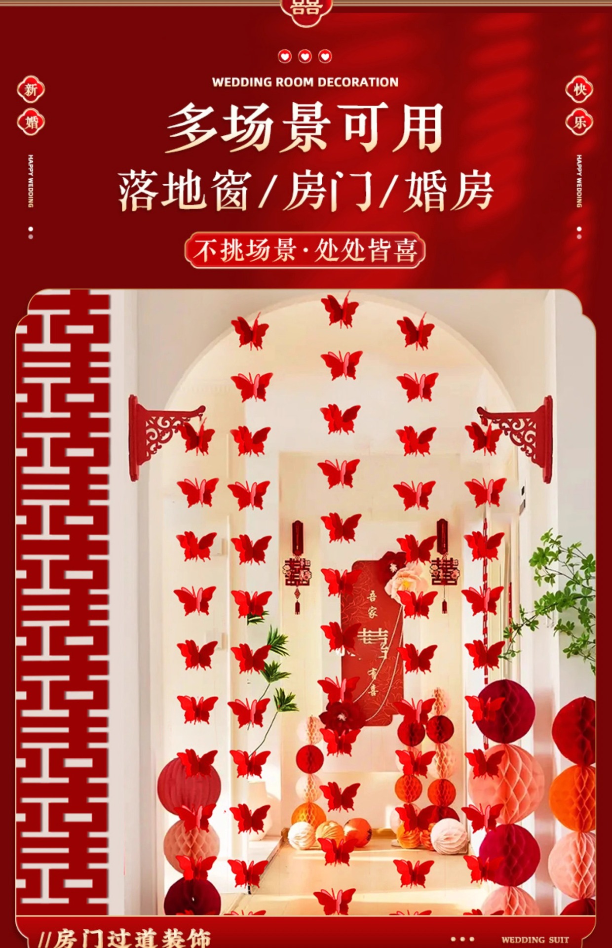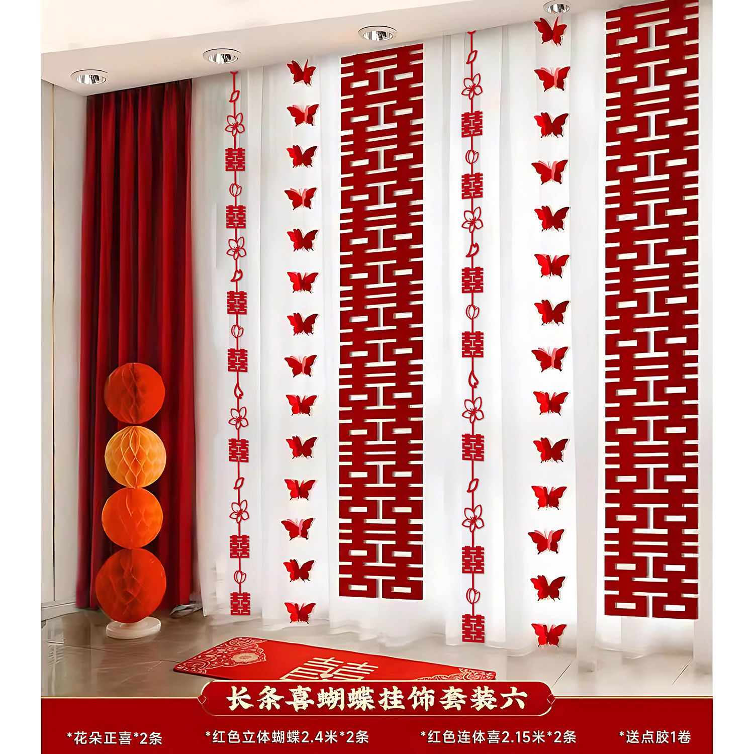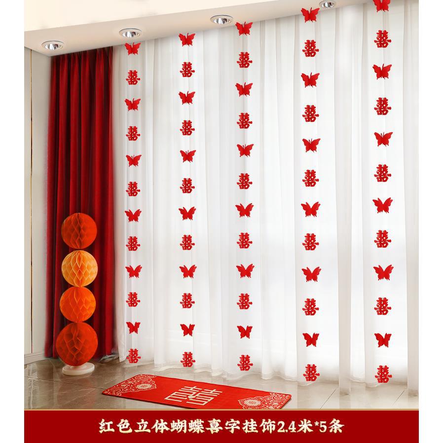 웨딩룸 레이아웃 세트, 커튼 장식, 웨딩 스트립, 입체 나비 꽃걸이, 새집 거실, 침실
