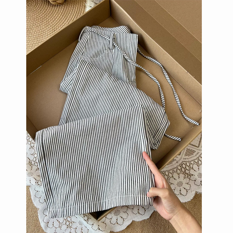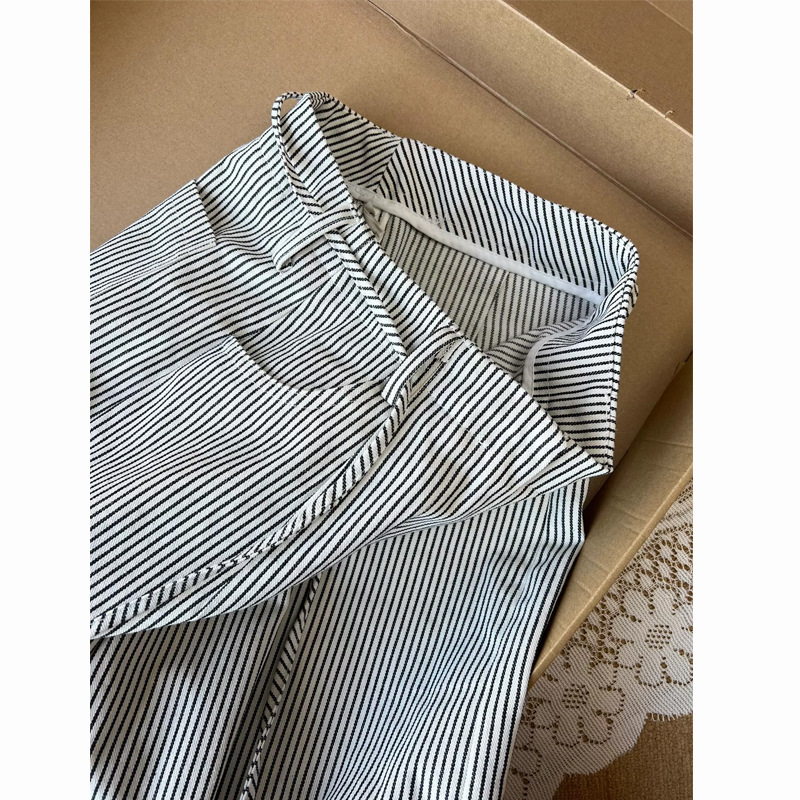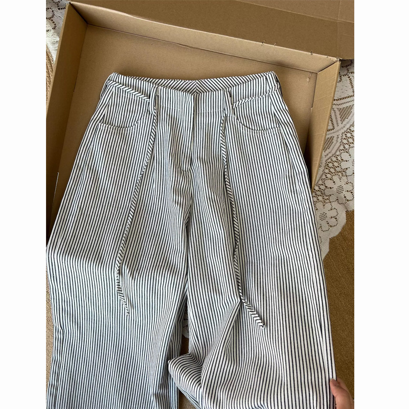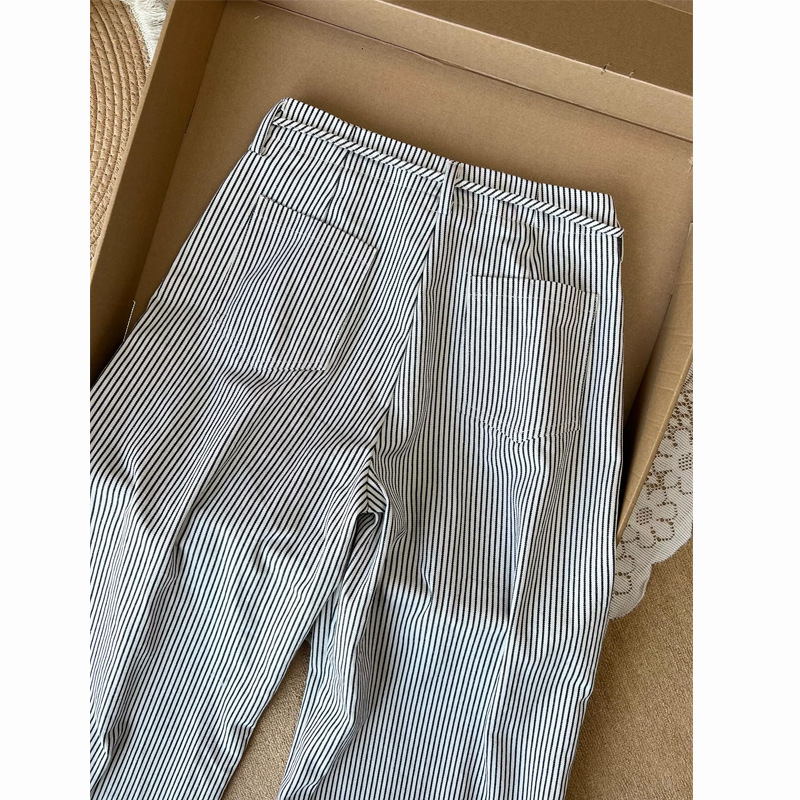 편안하고 아름다운! 디자인 센스 스트라이프 스트레이트 캐주얼 바지 여성의 가을과 겨울 느슨한 올매치 높은 허리 유행 바지
