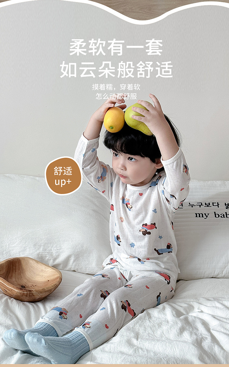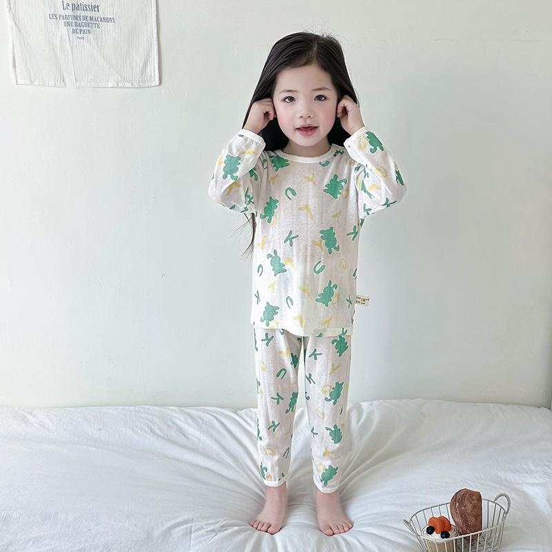 80-150cm 어린이 여름 에어컨 룸 대나무 섬유 편안하고 답답하지 않은 잠옷 3-15 세 소녀 가정복스토어 가기