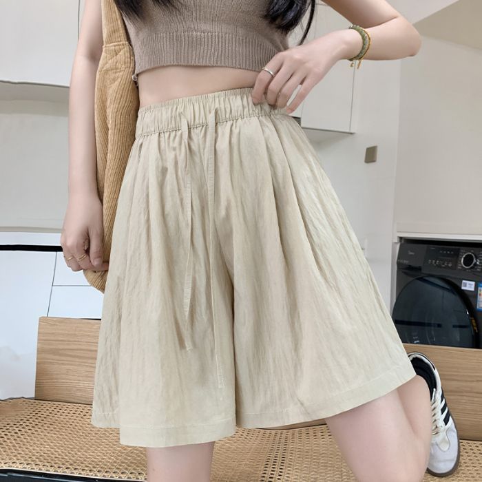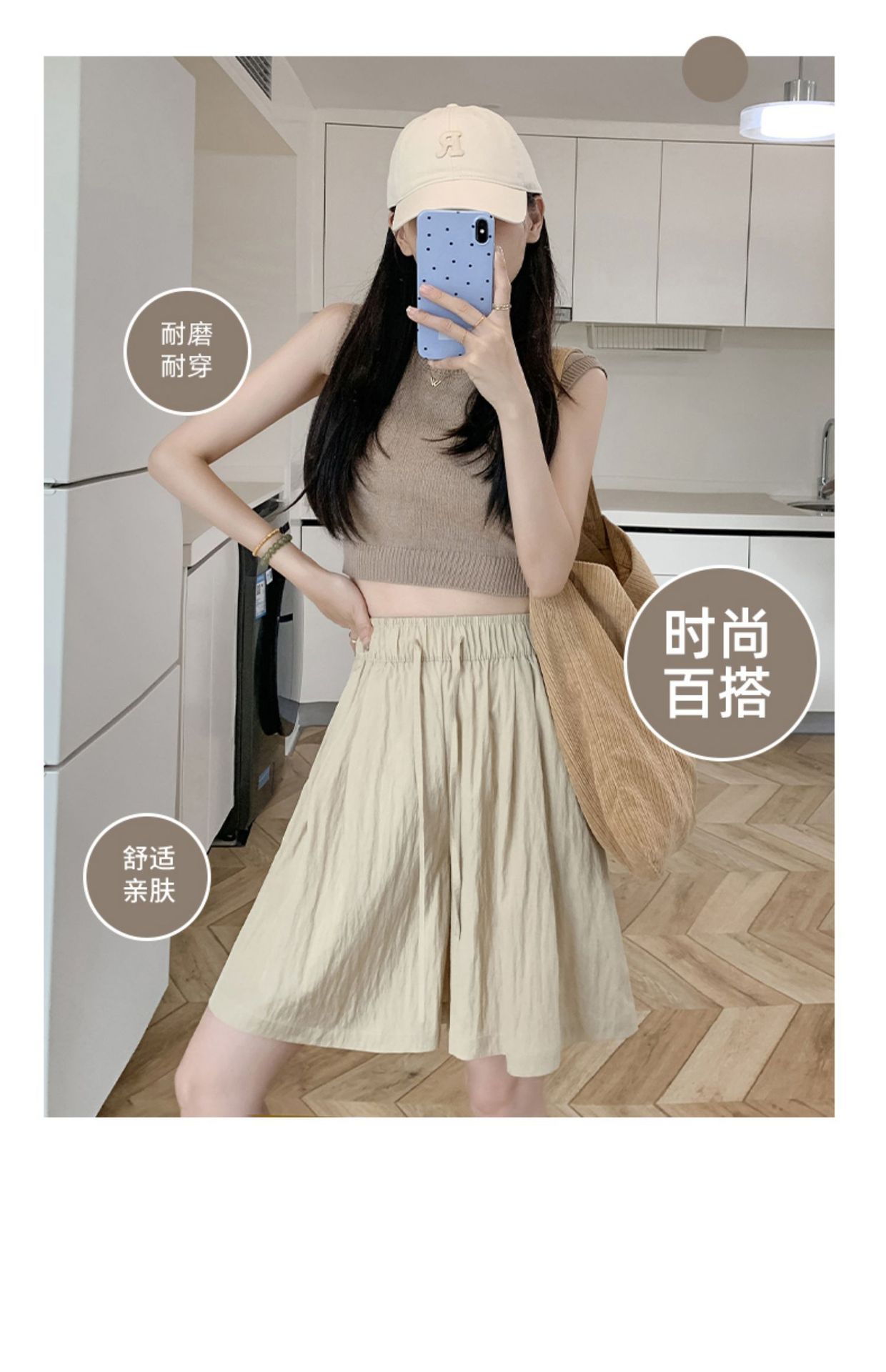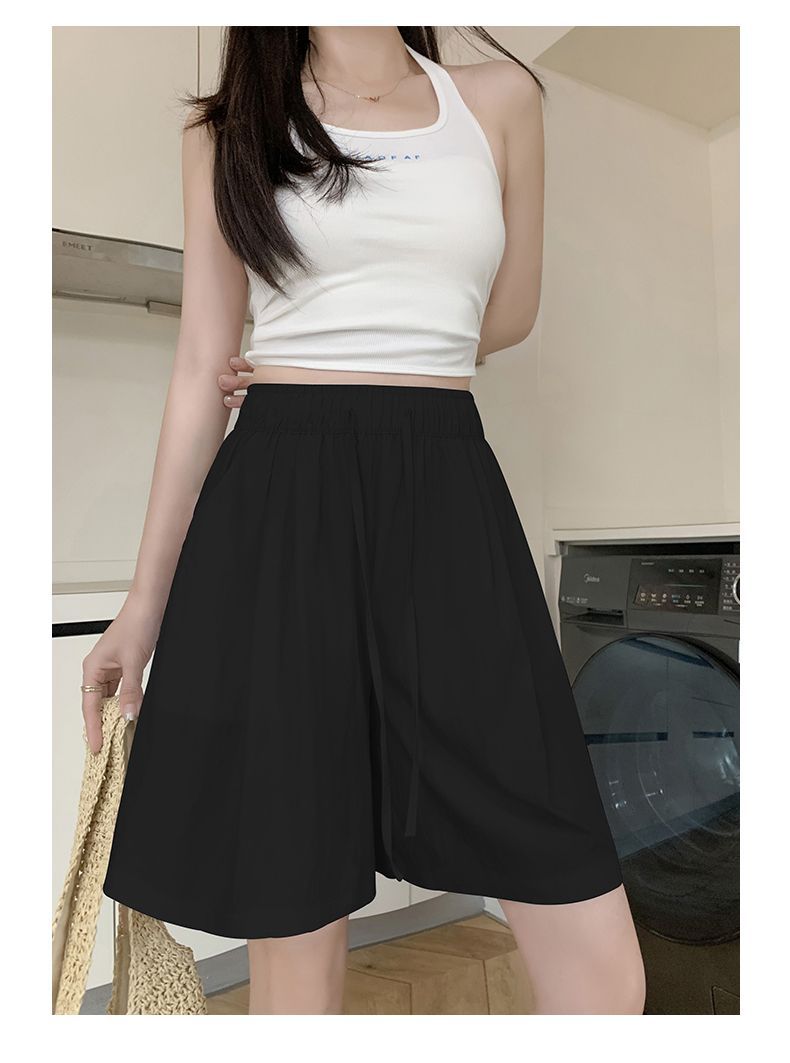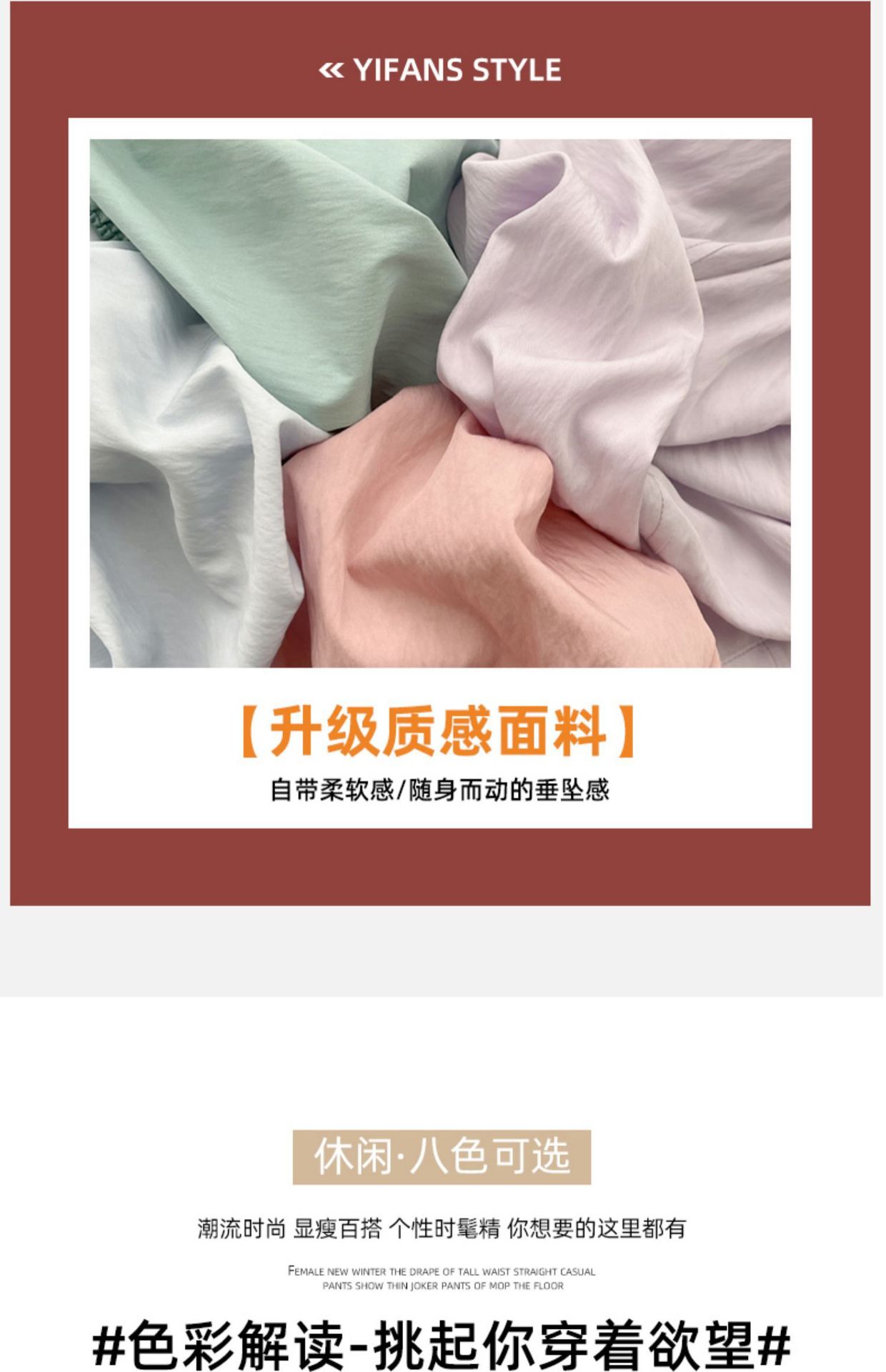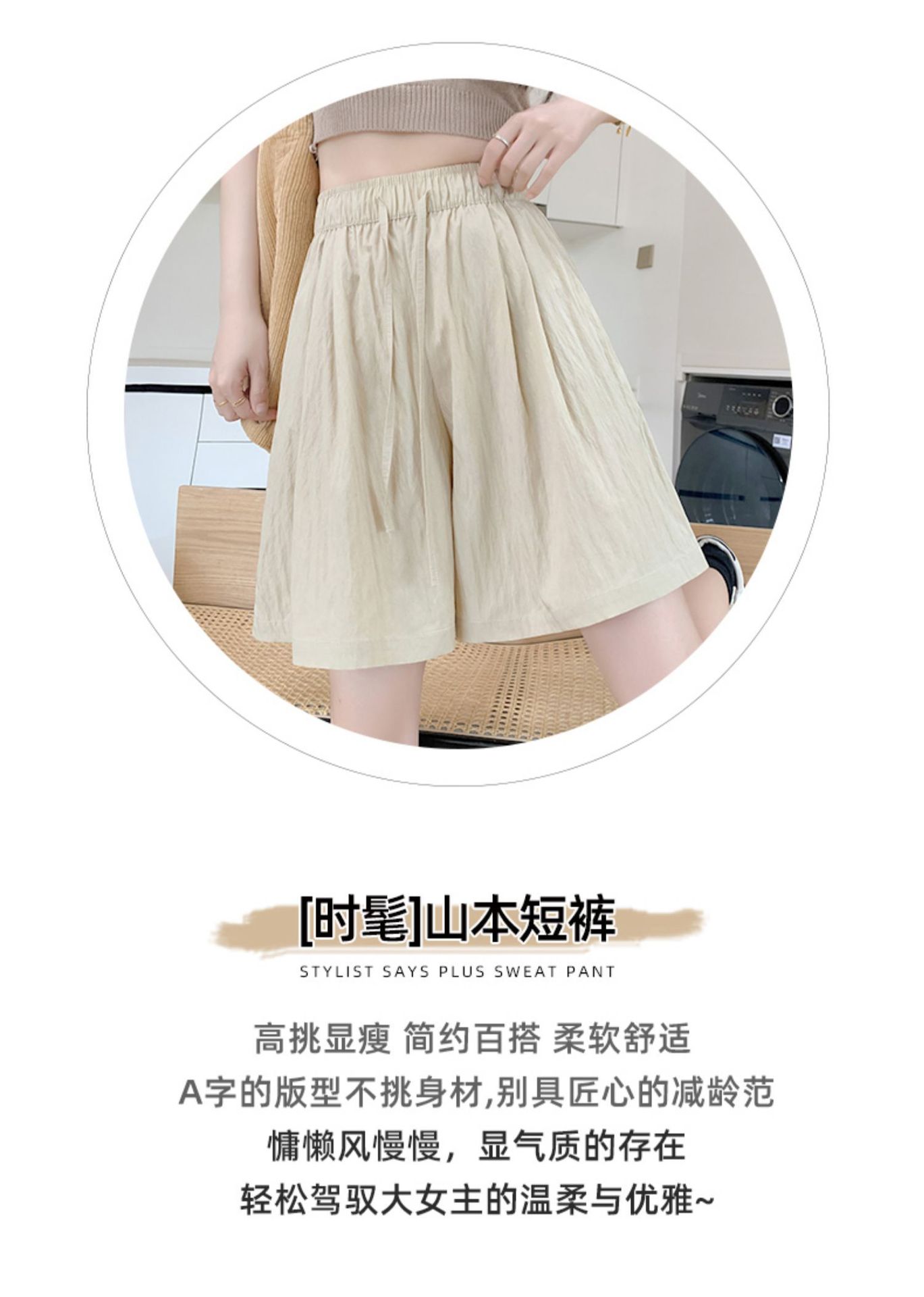 카키 야마모토, 여성 여름 얇은 높은 허리 느슨한 캐주얼 스트레이트 중간 길이 바지 넓은 다리 오프 착용 아이스 실크 바지스토어 가기