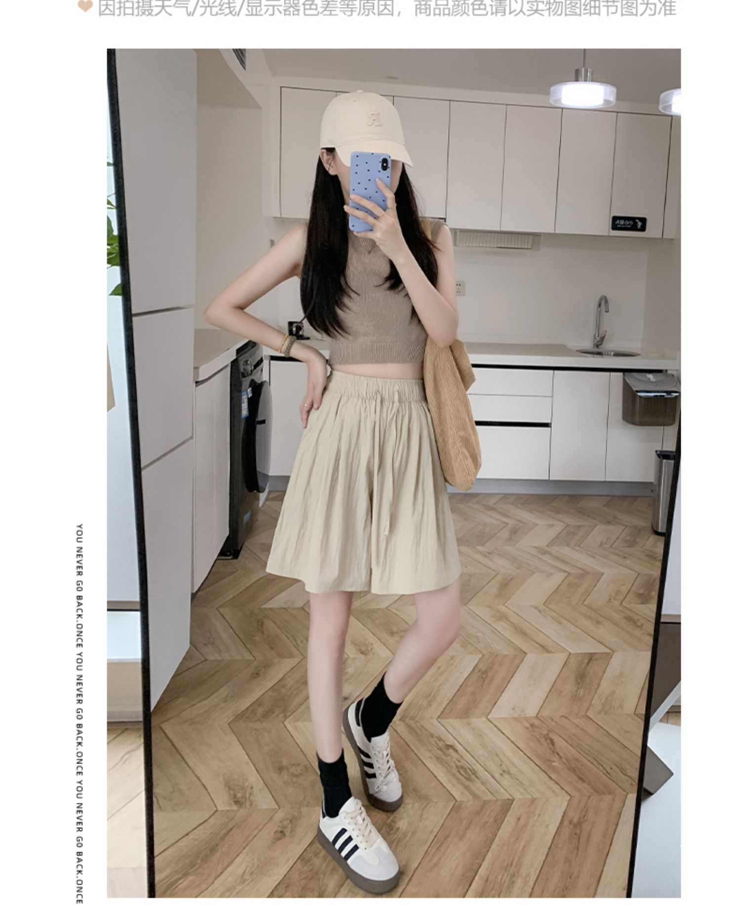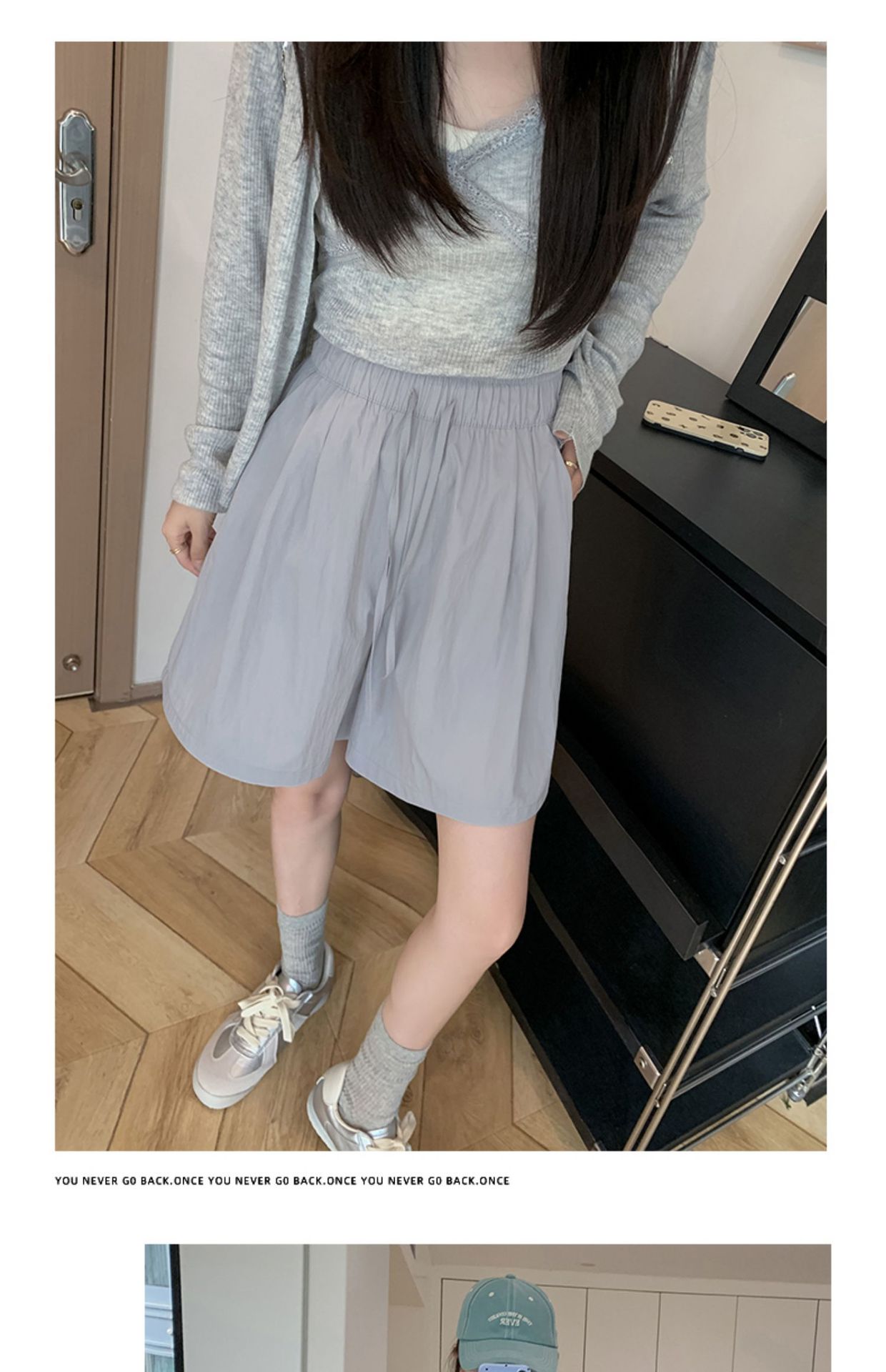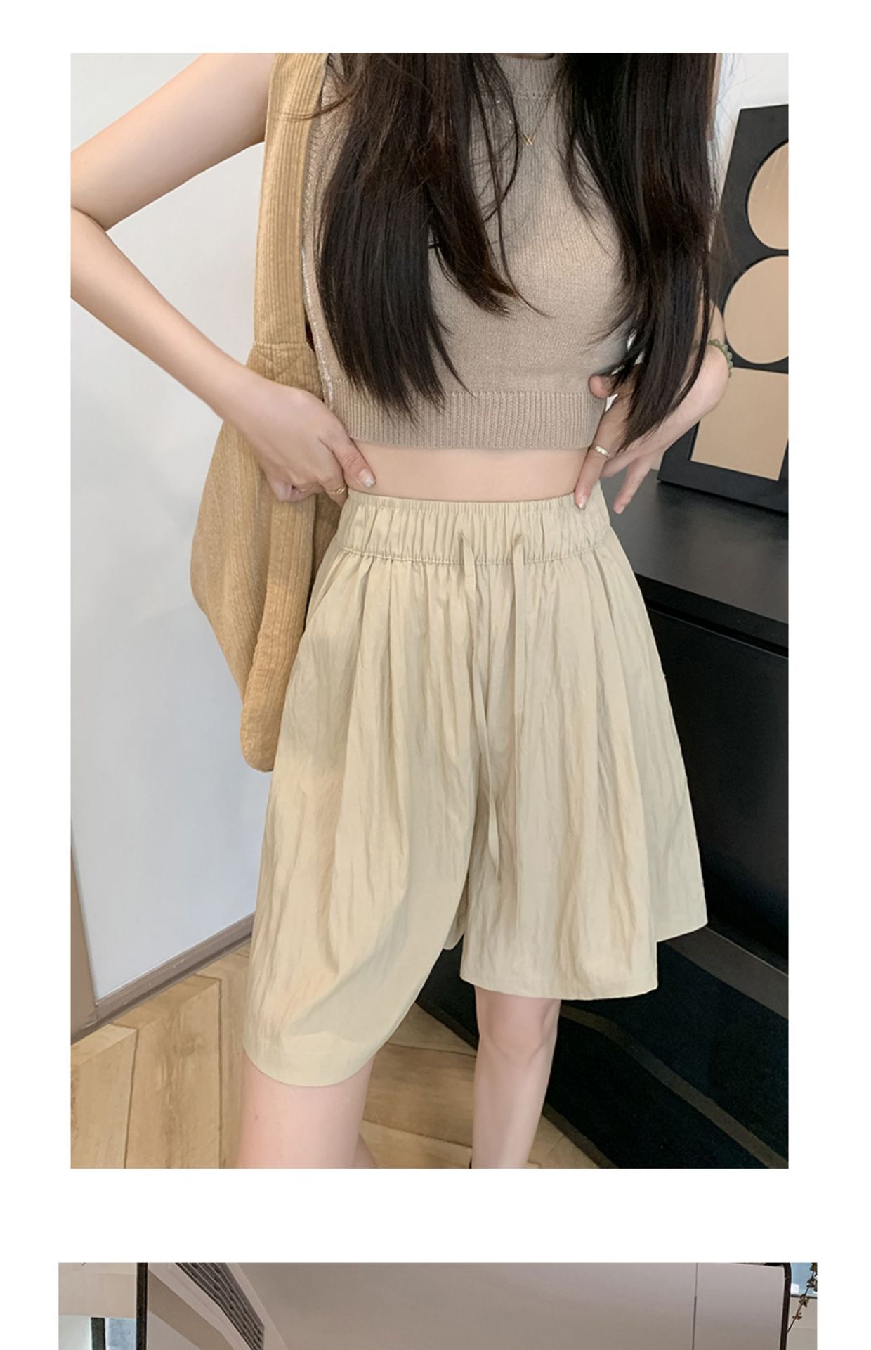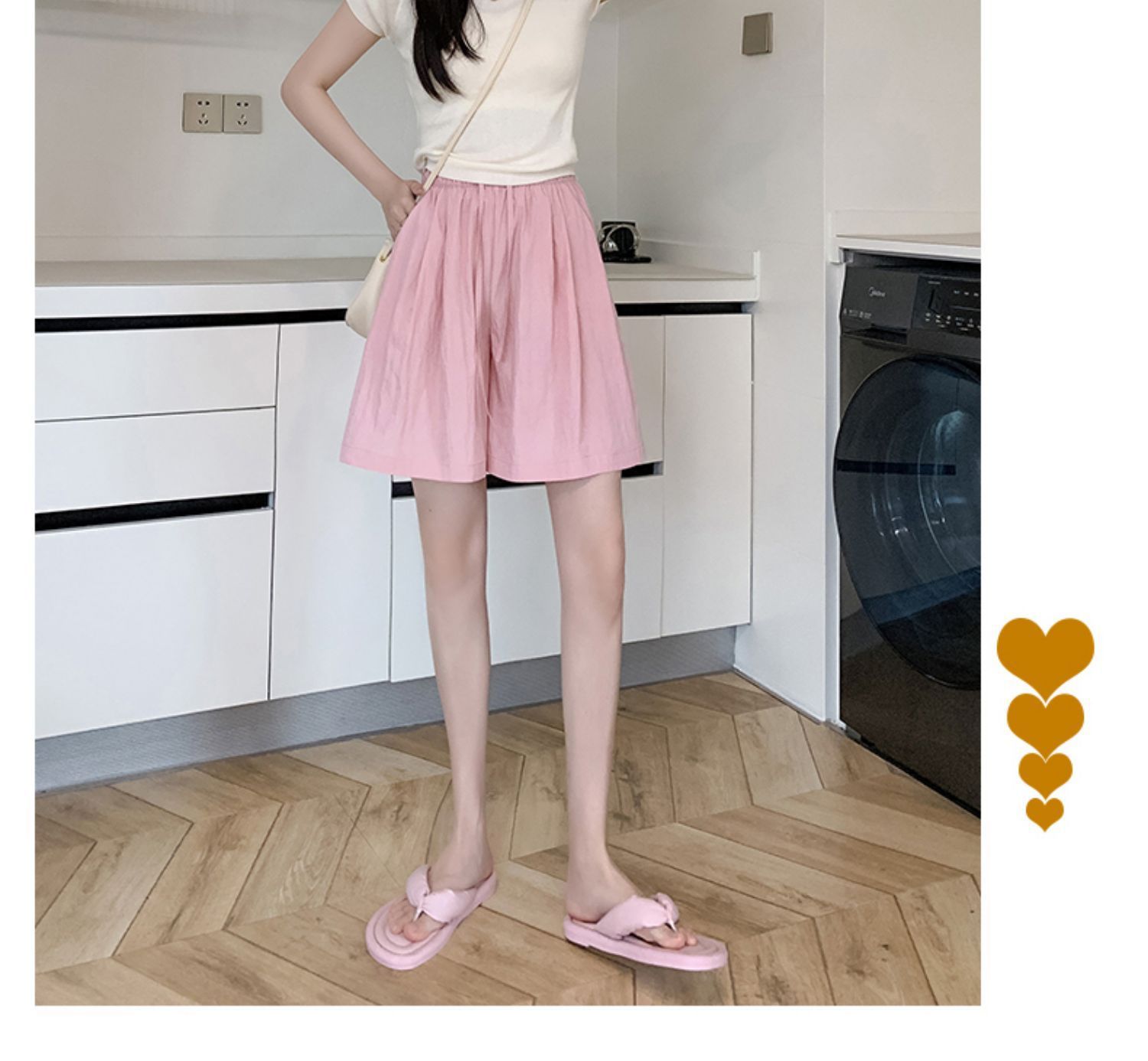 카키 야마모토, 여성 여름 얇은 높은 허리 느슨한 캐주얼 스트레이트 중간 길이 바지 넓은 다리 오프 착용 아이스 실크 바지스토어 가기