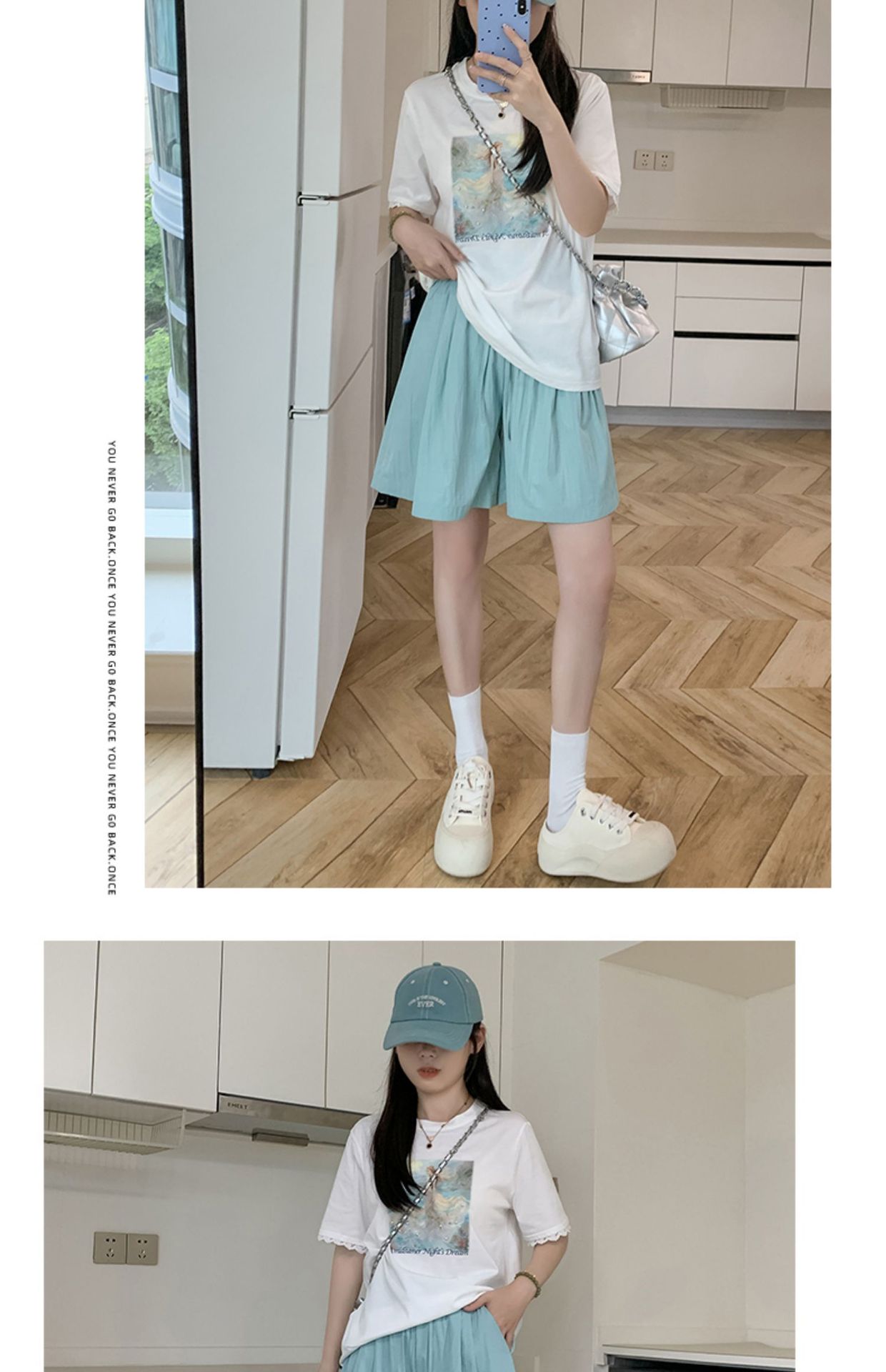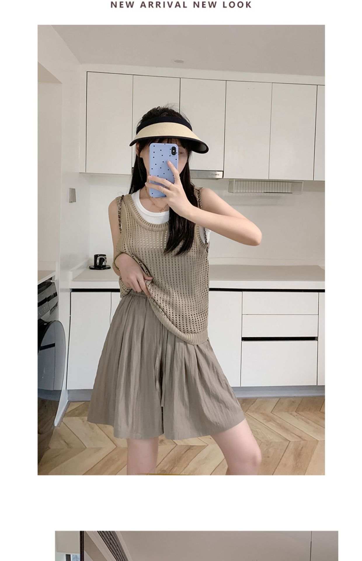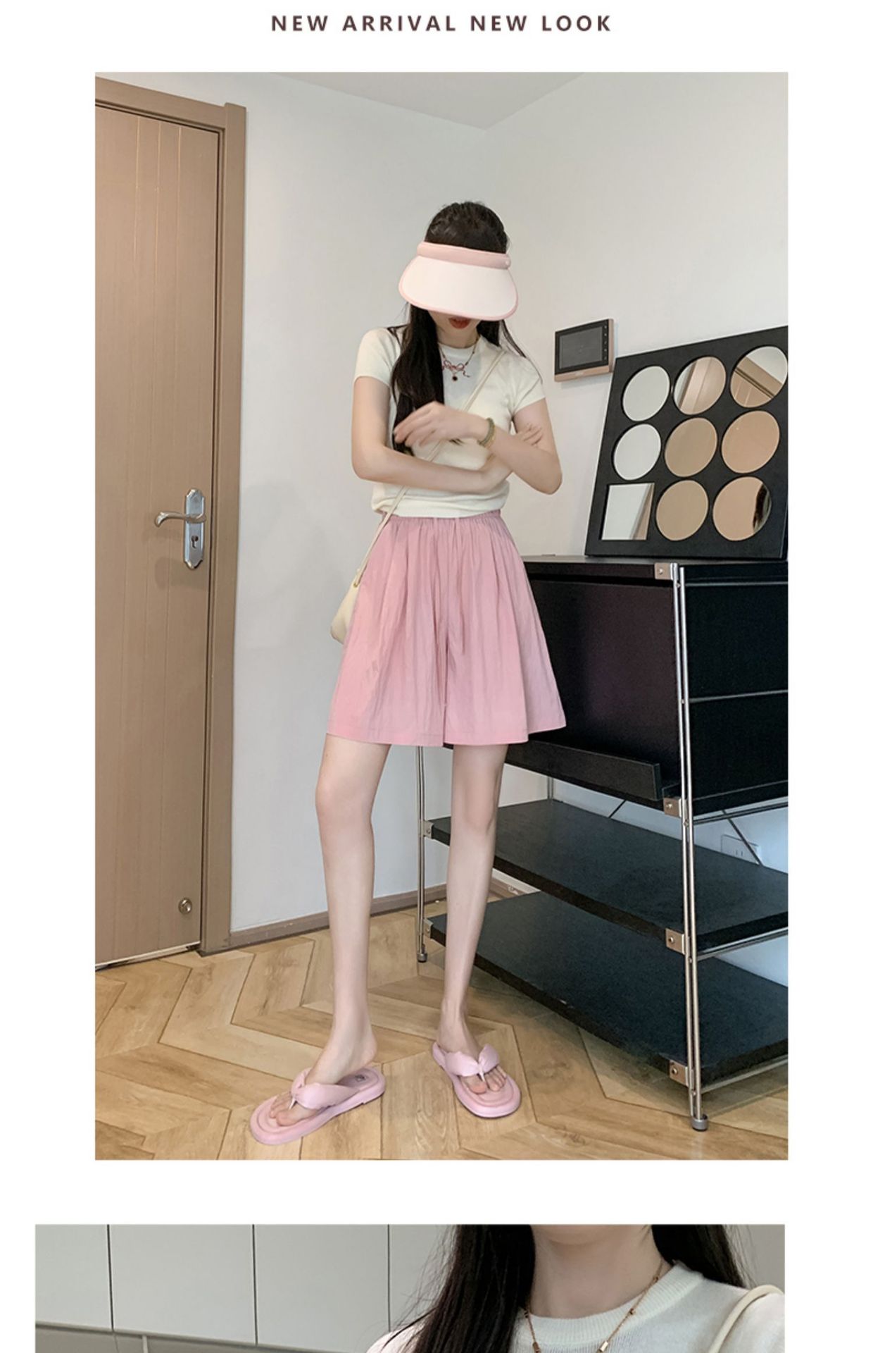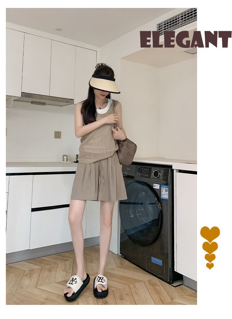 카키 야마모토, 여성 여름 얇은 높은 허리 느슨한 캐주얼 스트레이트 중간 길이 바지 넓은 다리 오프 착용 아이스 실크 바지스토어 가기