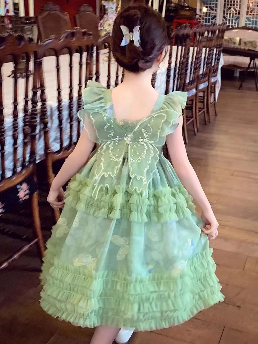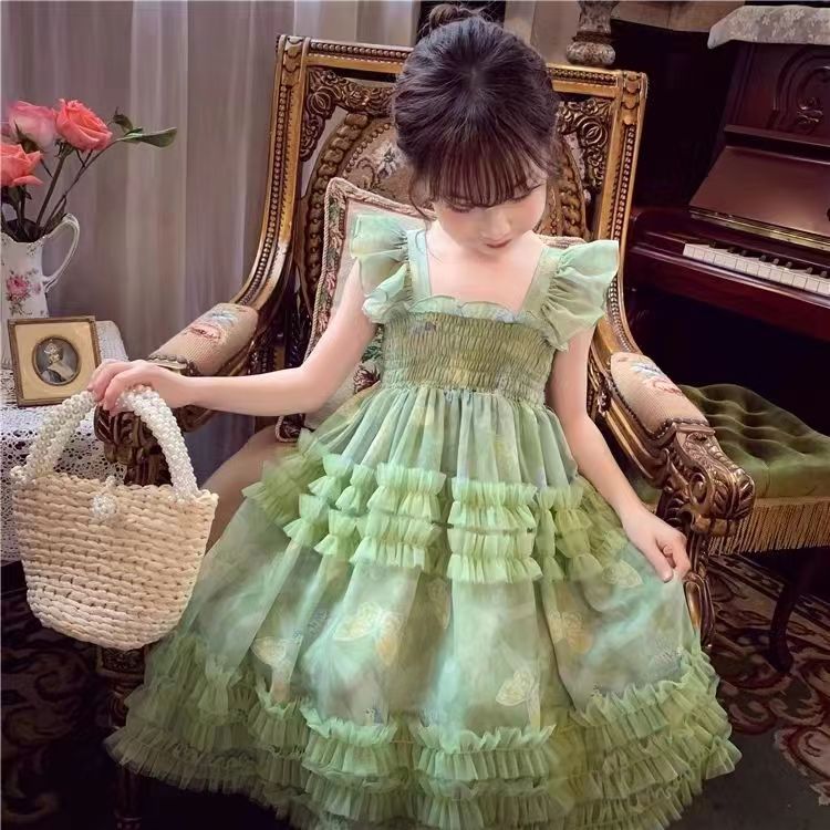 소녀의 공주 원피스 여름 2025 새로운 어린이 슬립 스커트 스타일 소녀의 퍼프 메쉬 공주 원피스 원피스스토어 가기