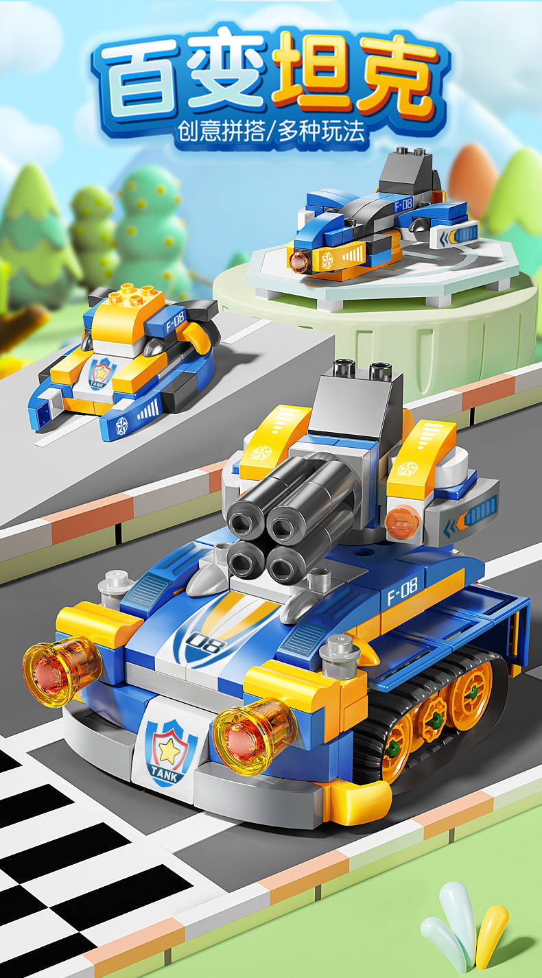 페이레 대형 조립식 다목적 탱크 엔지니어링 차량 블록 어린이 창의력 퍼즐 블록 남자아이 장난감 무료 배송스토어 가기