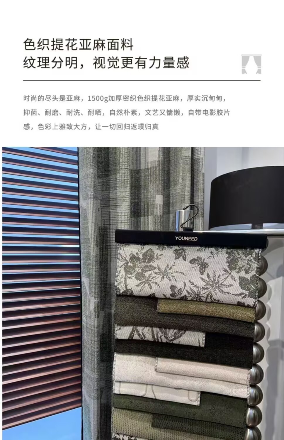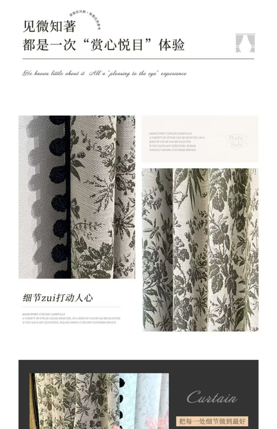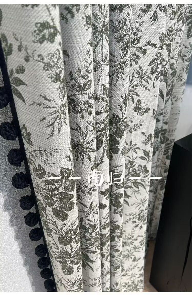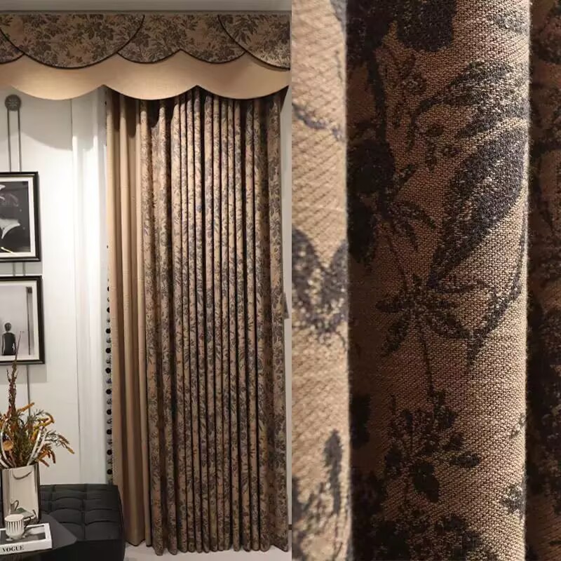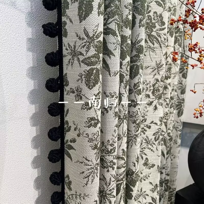 Nangui 복고풍 프랑스 자카드 차광 면 및 린넨 커튼 새로운 스타일 거실 침실 라이트 럭셔리 미국 자카드 린넨 원사 염색스토어 가기