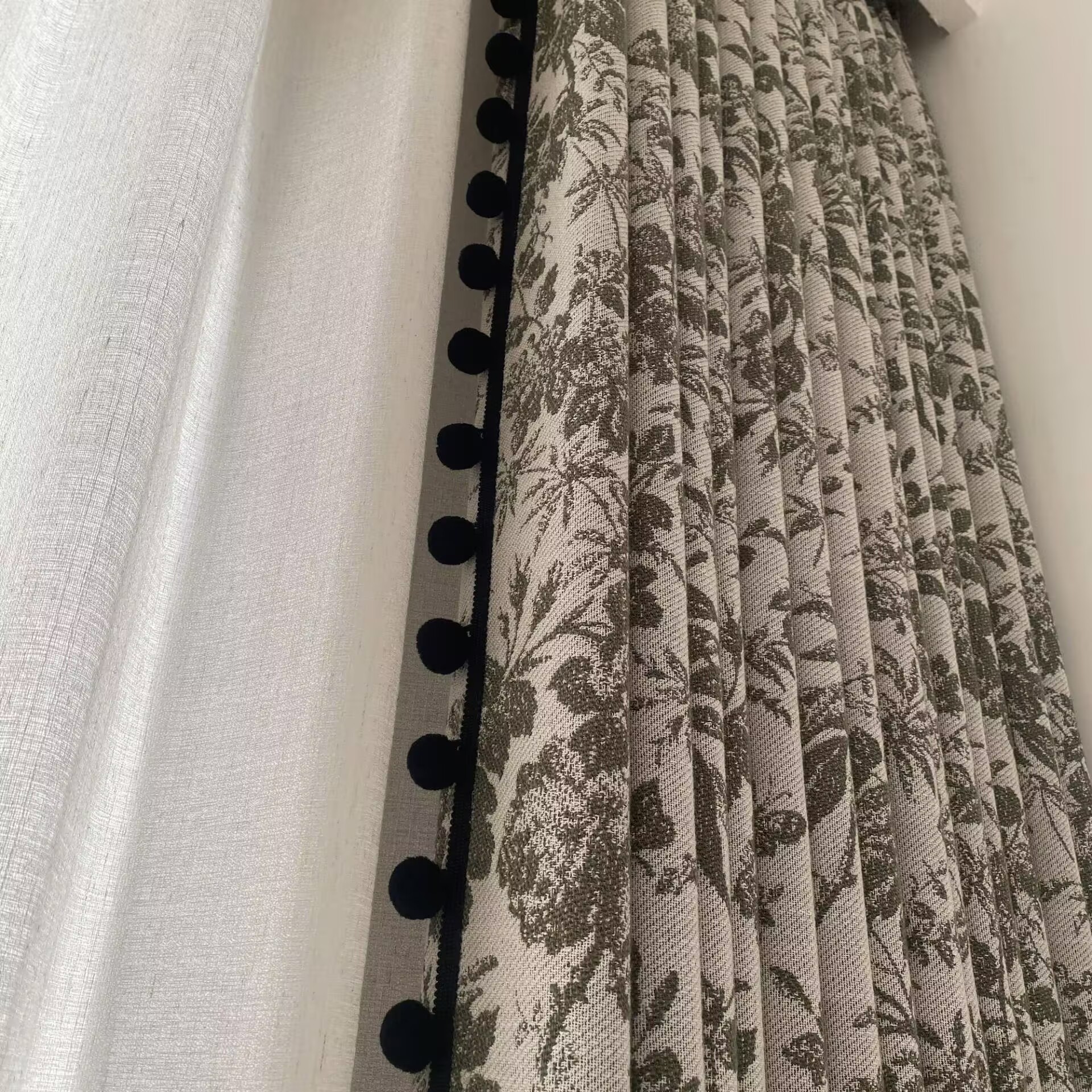 Nangui 복고풍 프랑스 자카드 차광 면 및 린넨 커튼 새로운 스타일 거실 침실 라이트 럭셔리 미국 자카드 린넨 원사 염색