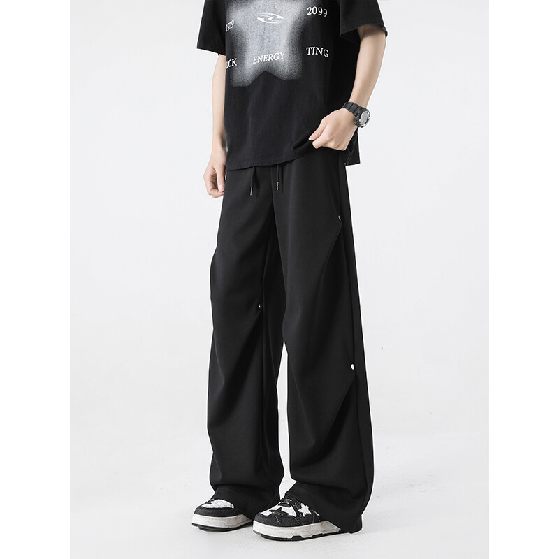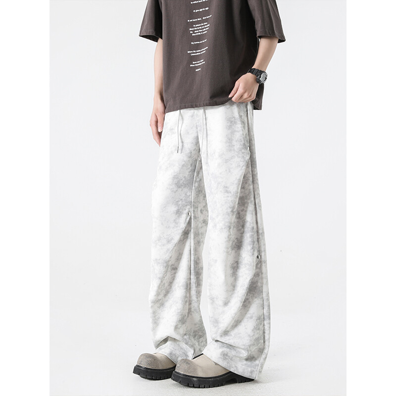 미국식 프라이드 스트리트 넥타이 염색 더티 캐주얼 바지 남자 여름 트렌디 브랜드 Ruffian 핸섬 플리츠 올 매치 루즈 와이드 레그 스포츠 바지
