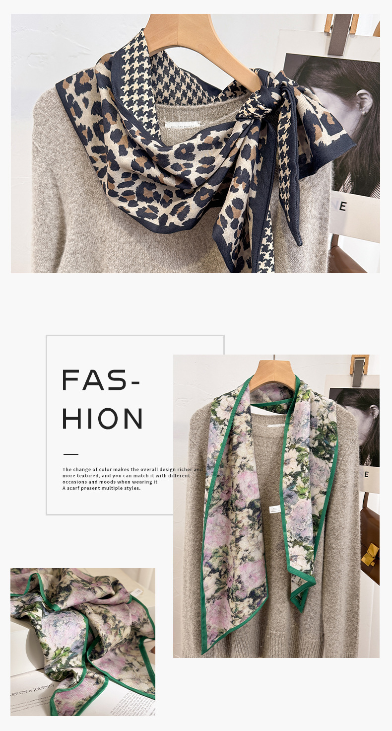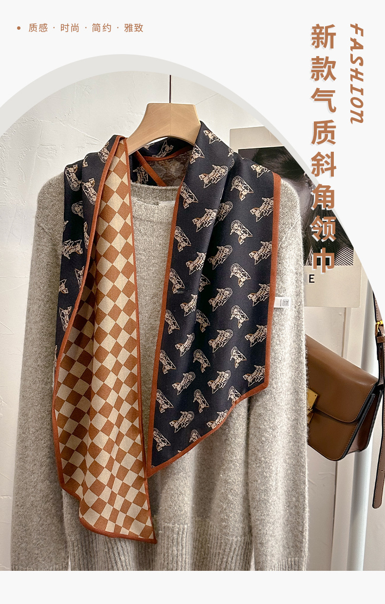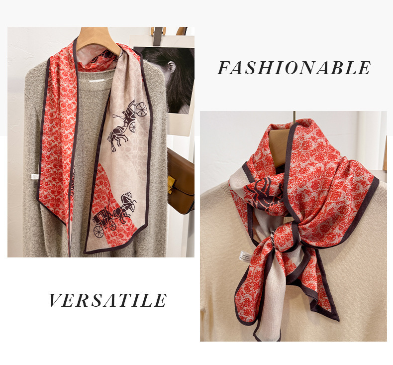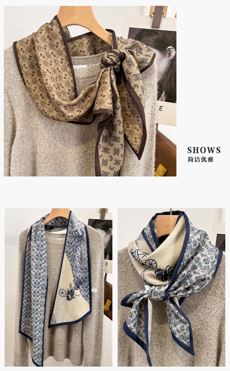 고급 양면 이중층 모조 실크 울 스카프 롱 베벨 스카프 여자 봄 가을 · 겨울 대형 스트랩 올매치 스카프