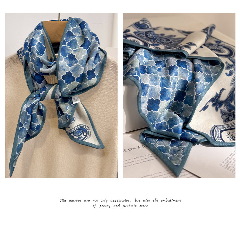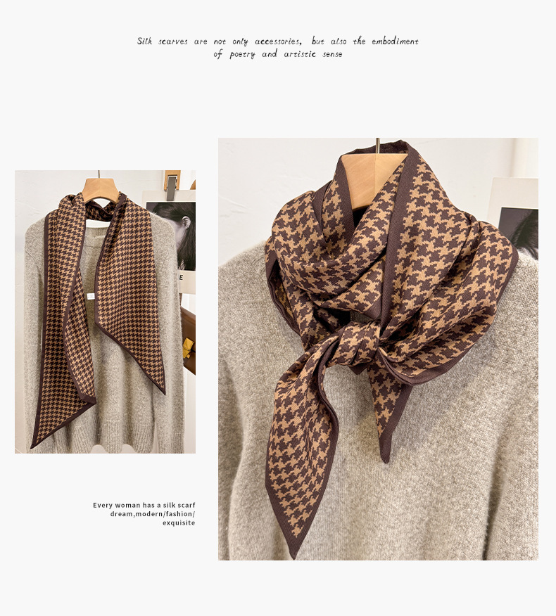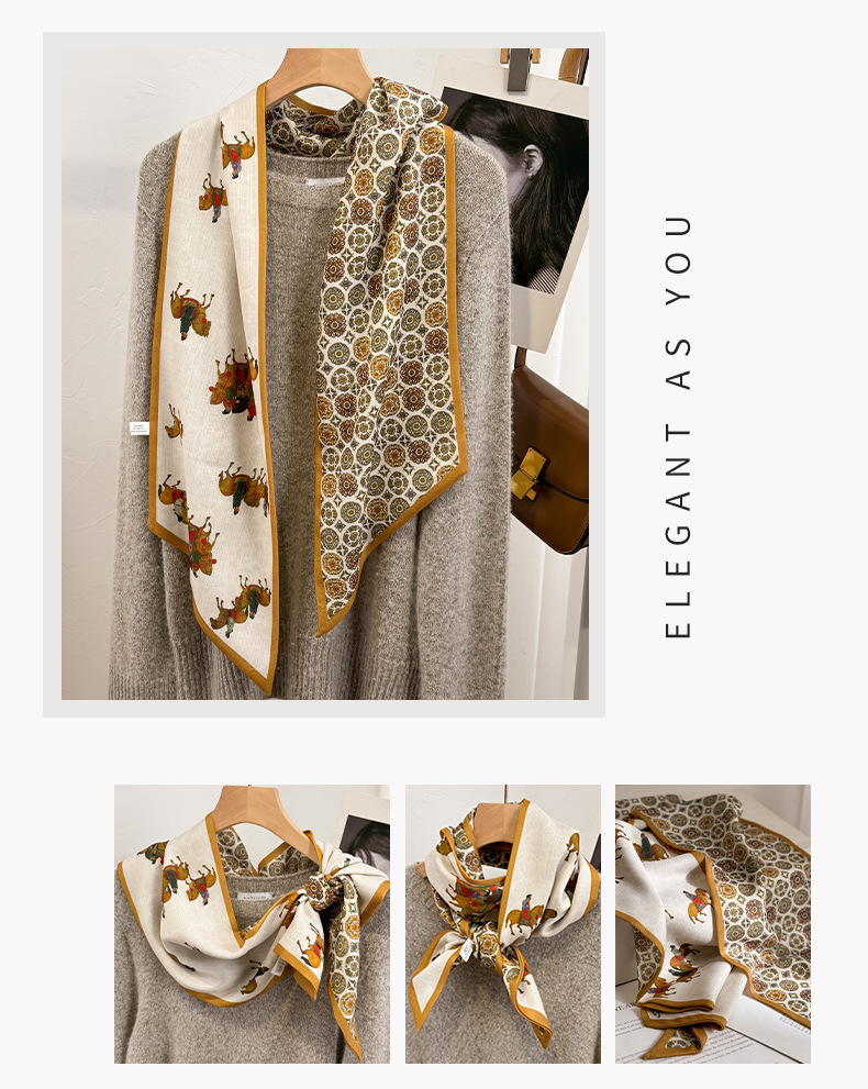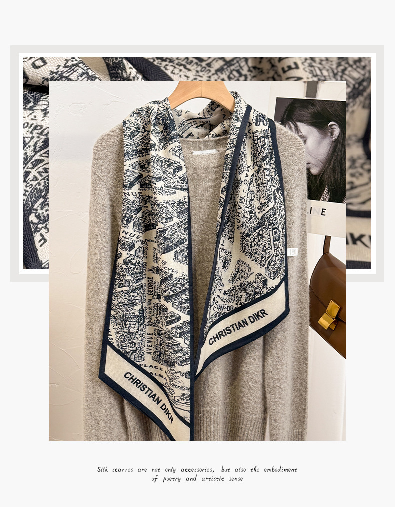 고급 양면 이중층 모조 실크 울 스카프 롱 베벨 스카프 여자 봄 가을 · 겨울 대형 스트랩 올매치 스카프