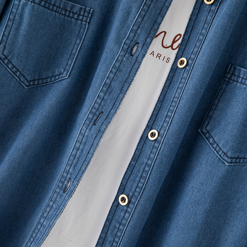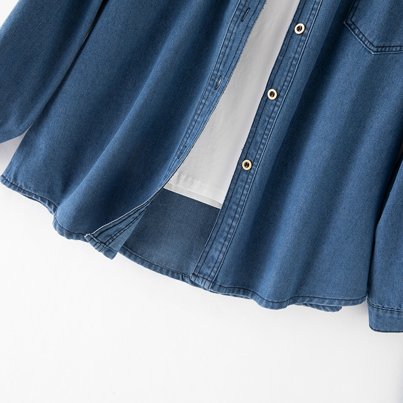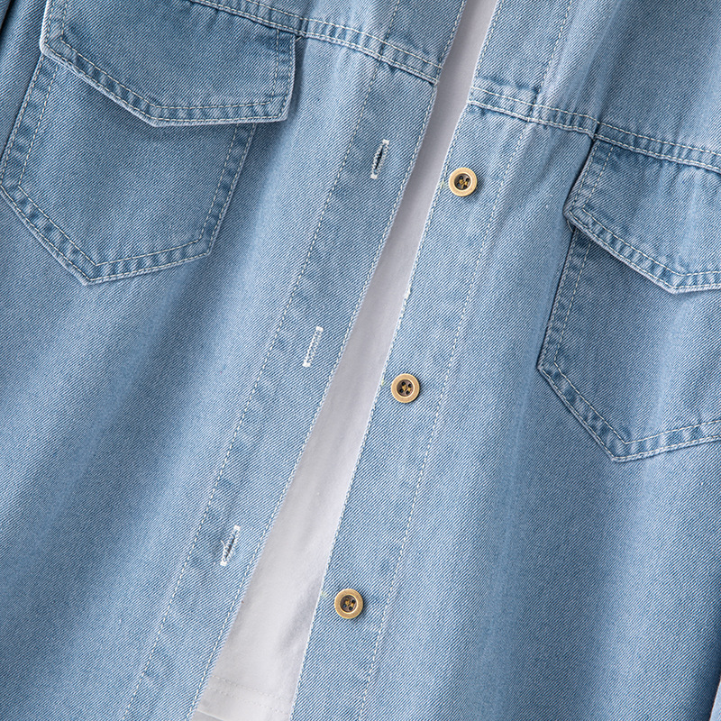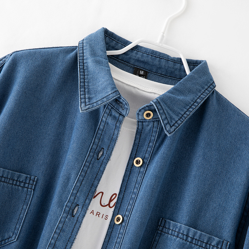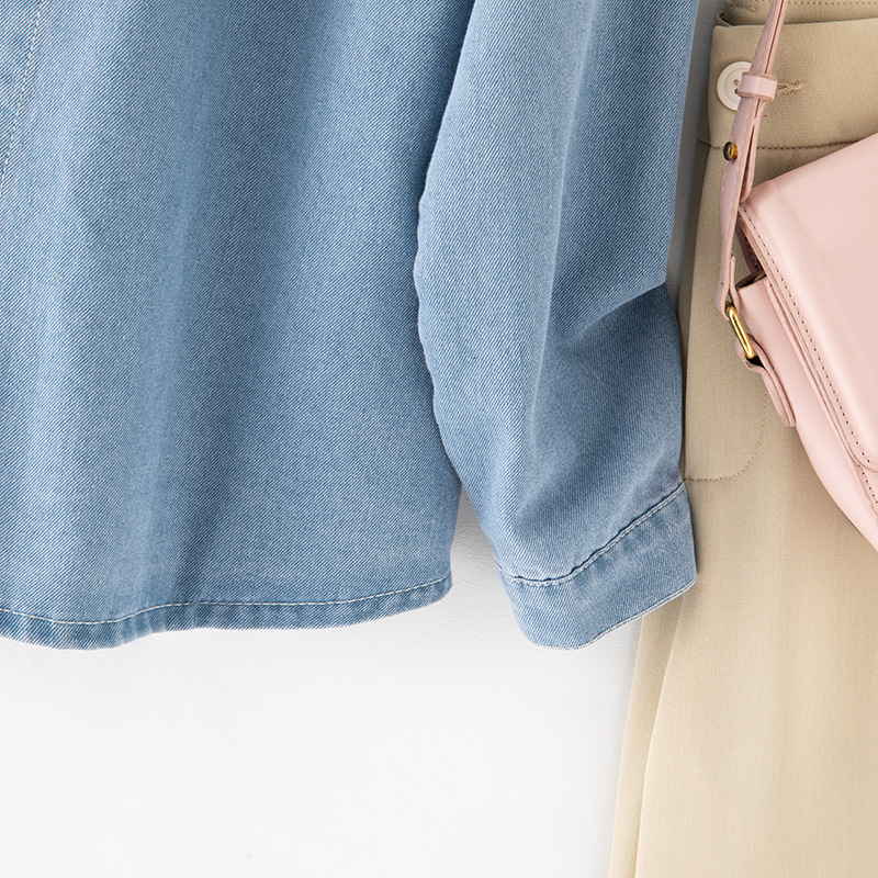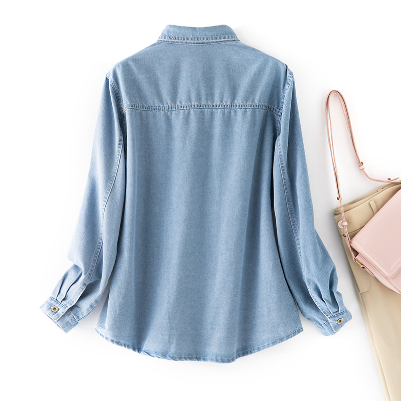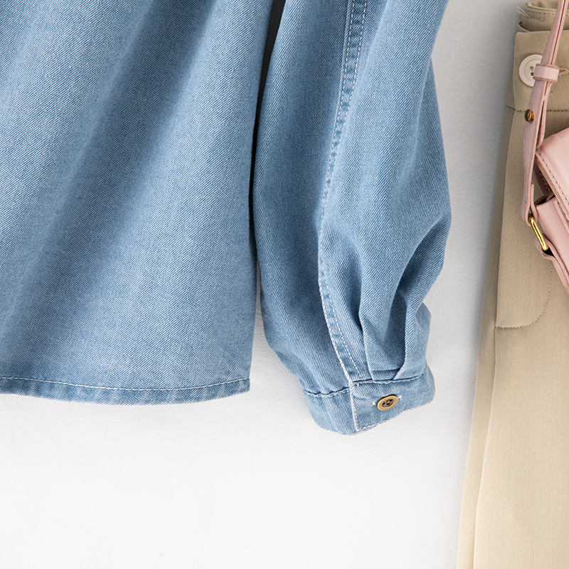 2025 데님 셔츠 여성 봄, 여름 새로운 얇은 부드러운 캐주얼 작은 느슨한 옷깃 포켓 여성용 긴팔 자켓스토어 가기