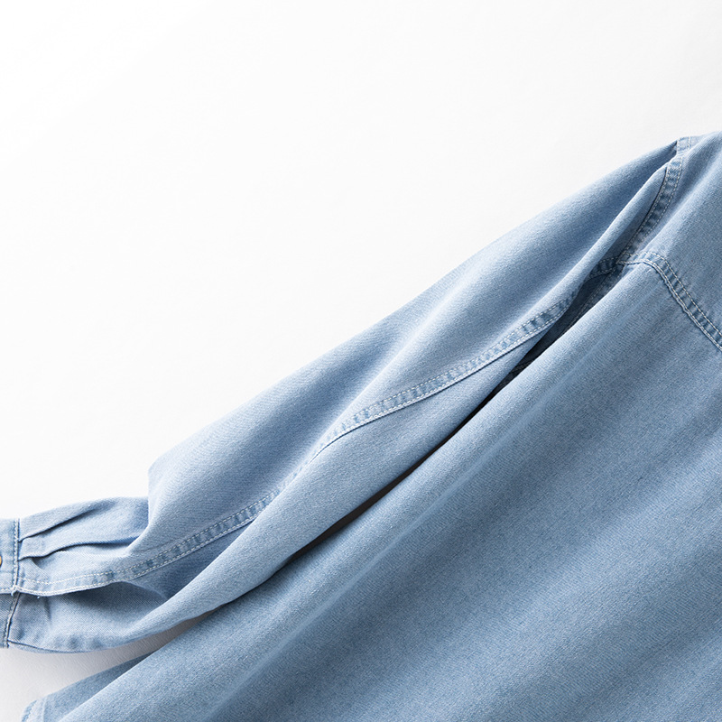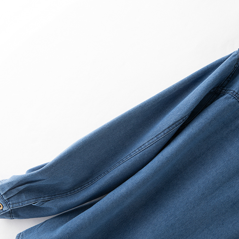 2025 데님 셔츠 여성 봄, 여름 새로운 얇은 부드러운 캐주얼 작은 느슨한 옷깃 포켓 여성용 긴팔 자켓