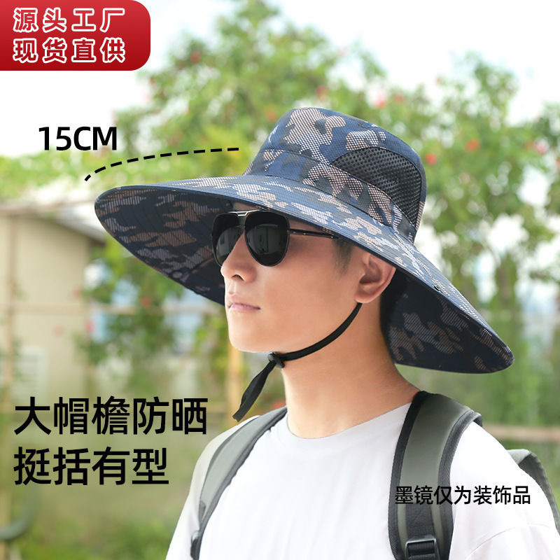 국경 간 여름 남성 자외선 차단제 어부 모자 등산 차양 모자 자외선 방지 통기성 대형 브림 야외 낚시 모자
