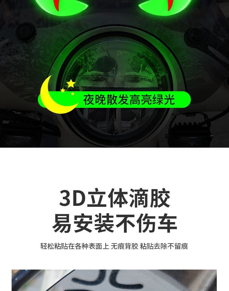 자동차 개조 빛나는 악마 눈 스테레오 스티커 오토바이 전기 자동차 스테레오 장식 자동차 헤드 스티커
