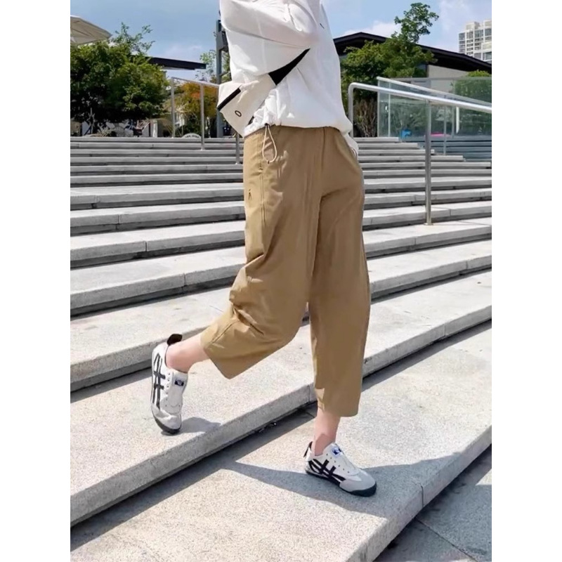 빠른 건조 스포츠 바지 여자 여름 플러스 사이즈 통통녀 높은 허리 슬림 핏 느슨한 캐주얼 바지 얇은 자른 할란 당근 바지스토어 가기