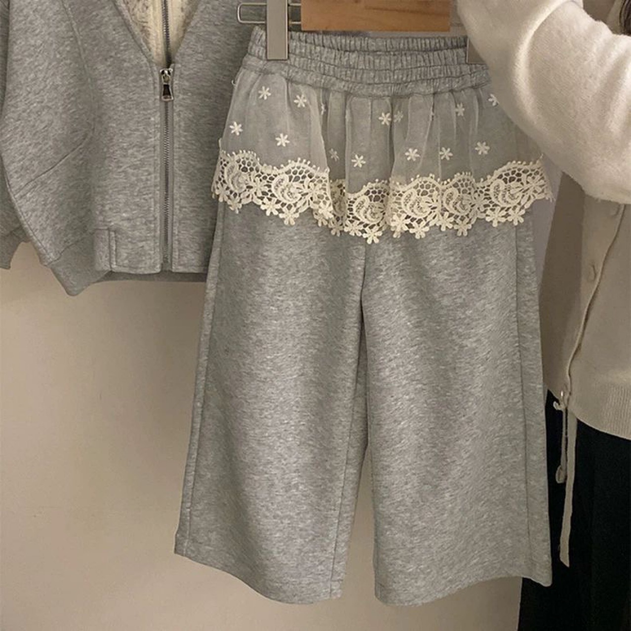 소녀 봄과 가을 세트 새로운 후드 스웨터 캐주얼 레이스 카디건 재킷 바느질 바지 투피스 세트스토어 가기