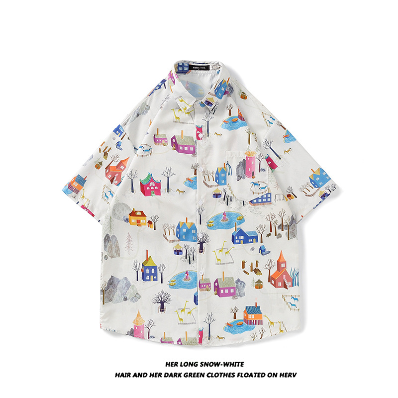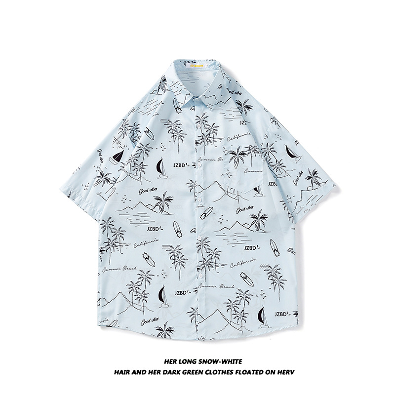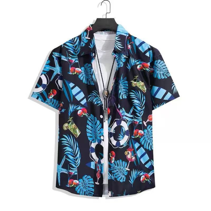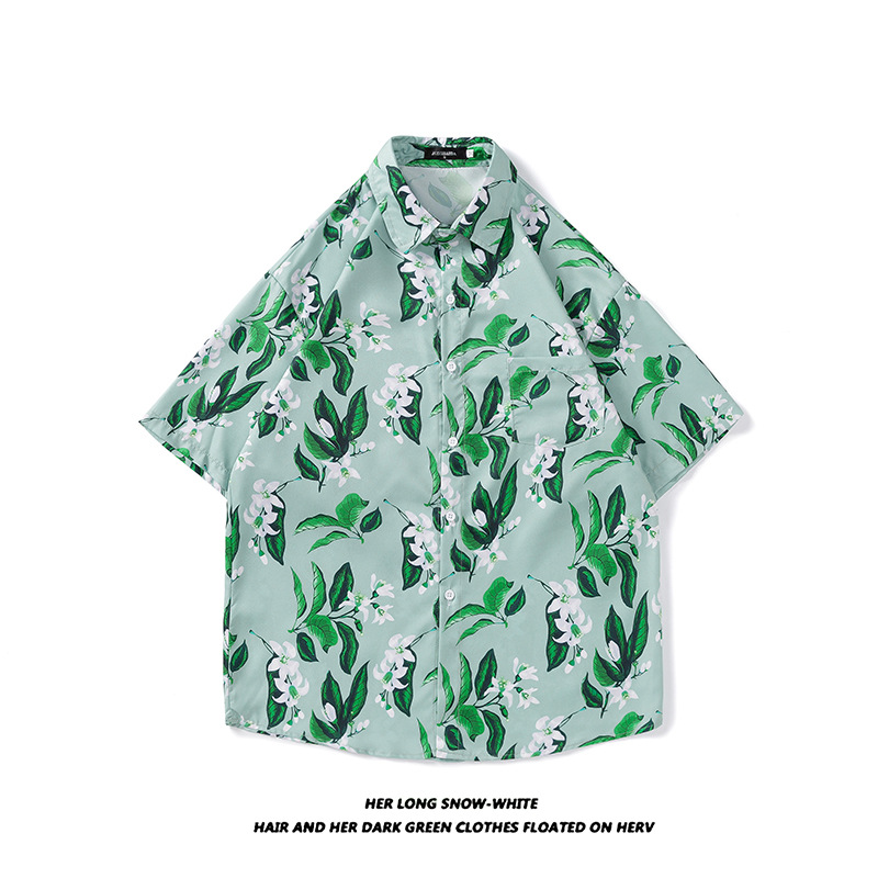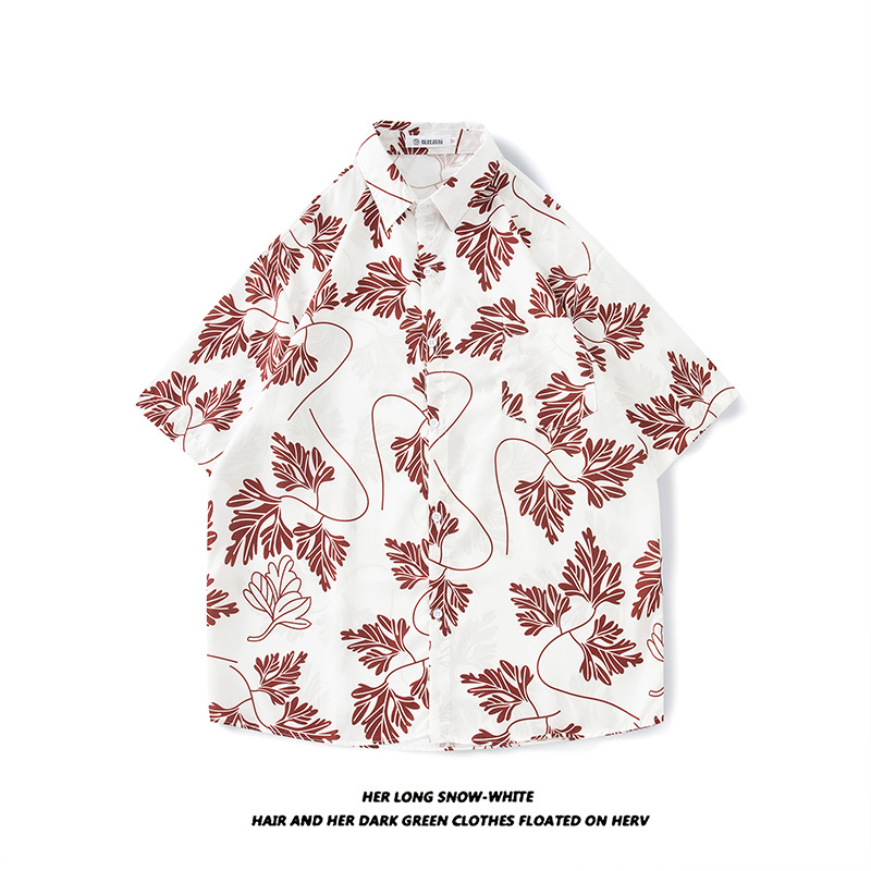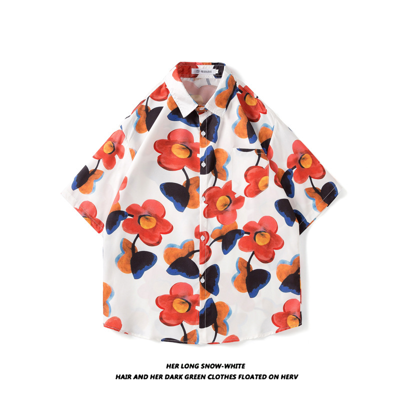 태국 빈티지 셔츠 남자의 봄과 가을 새로운 느슨한 캐주얼 하이 엔드 반팔 셔츠 올매치 꽃 셔츠
