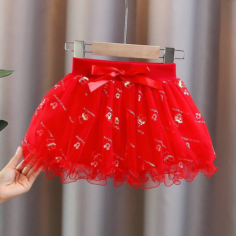 • 밝은 빨간색 글자 스팽글이 달린 허리 스커트