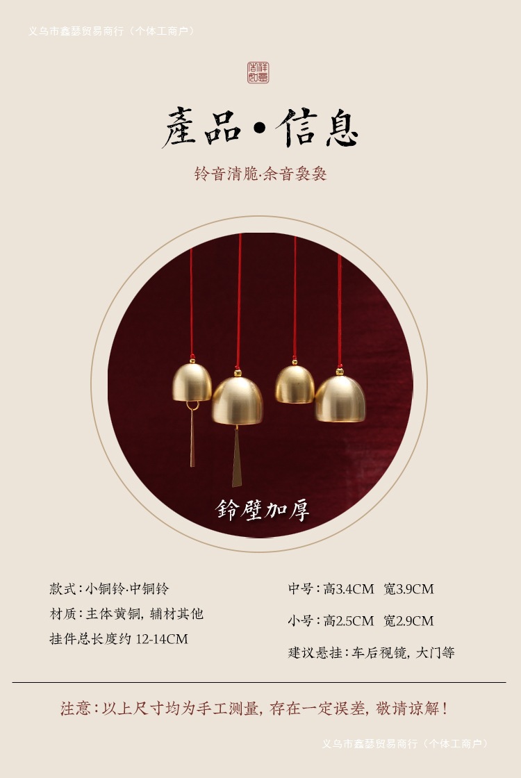 순수한 구리 작은 벨 금속 바람 벨 장식 액세서리 홈 샵 교수형 장식품 안전한 문 벨 장식 선물 자동차 교수형