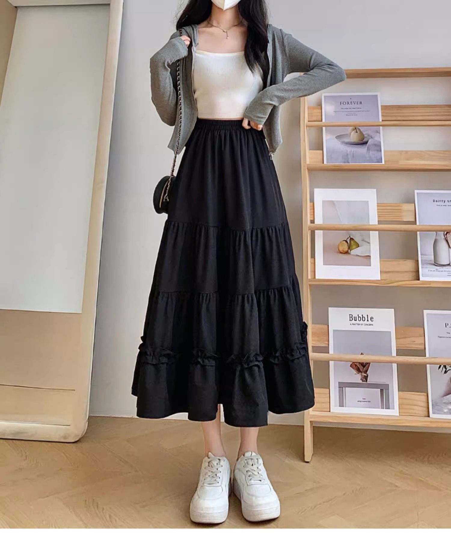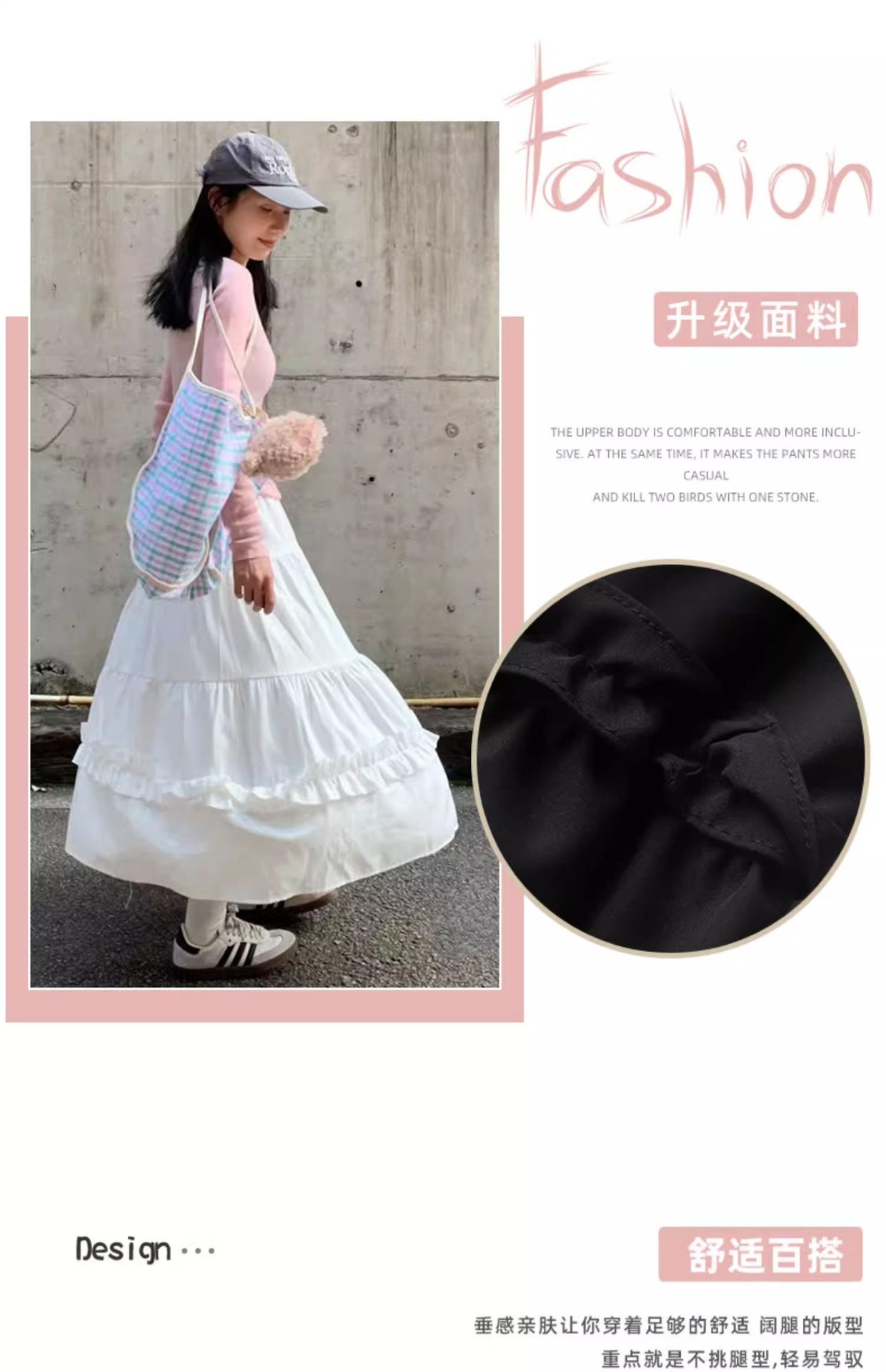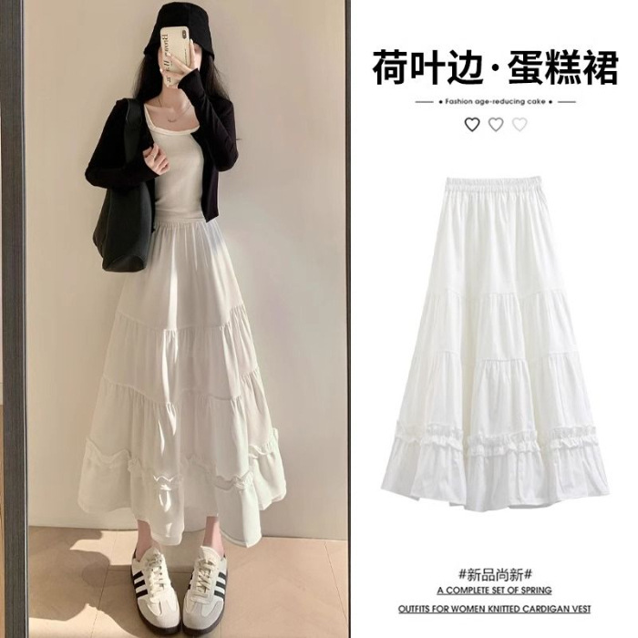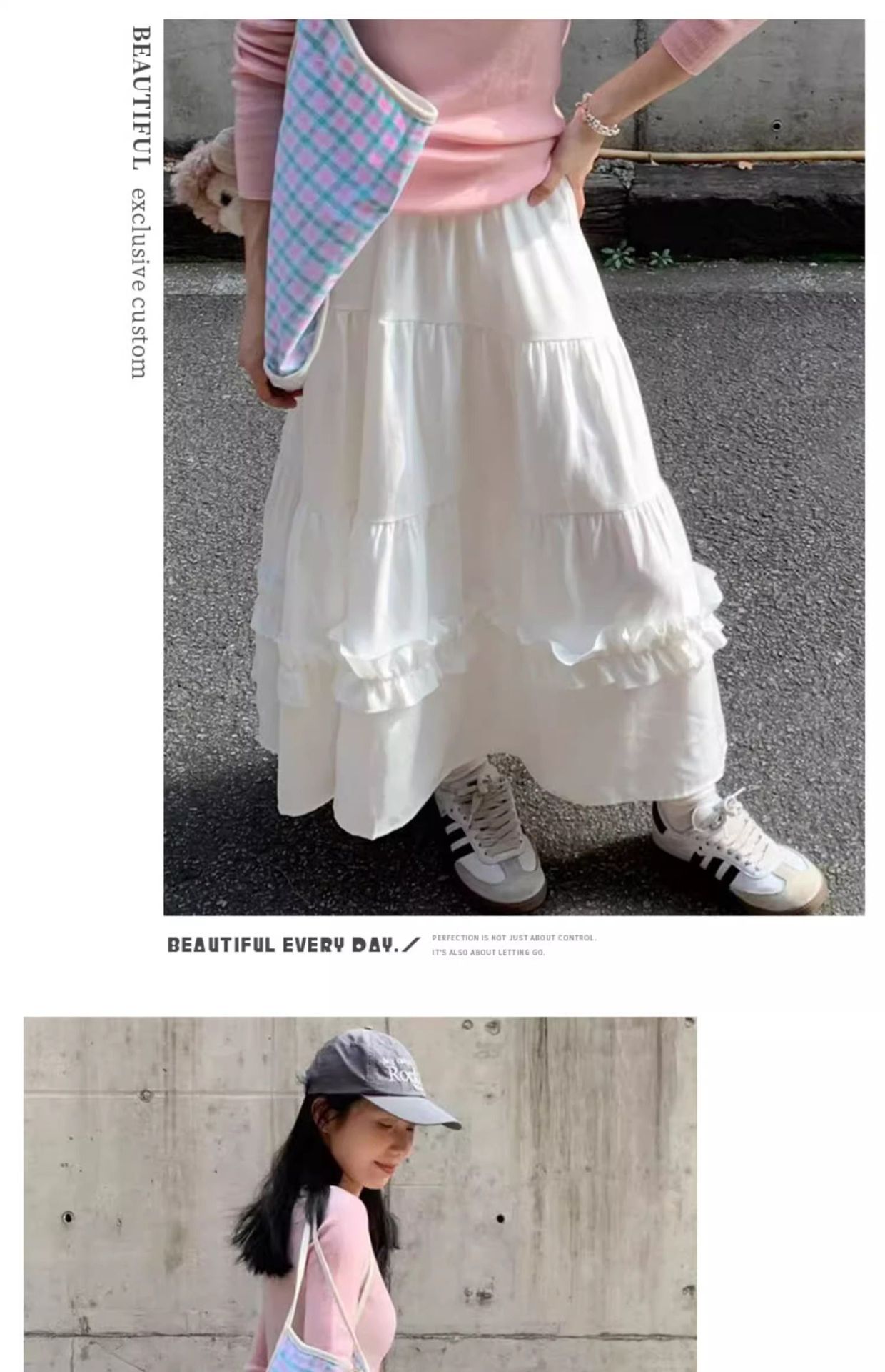 여성을위한 화이트 러플 스커트 2025 봄 여름 새로운 한국 스타일 하이 웨이스트 드레이프 a 라인 버섯 케이크 스커트