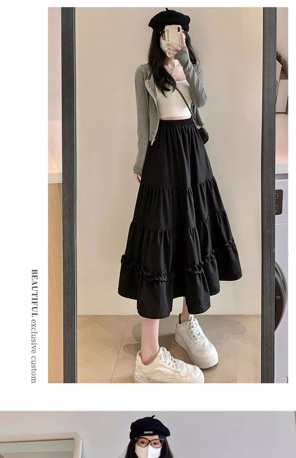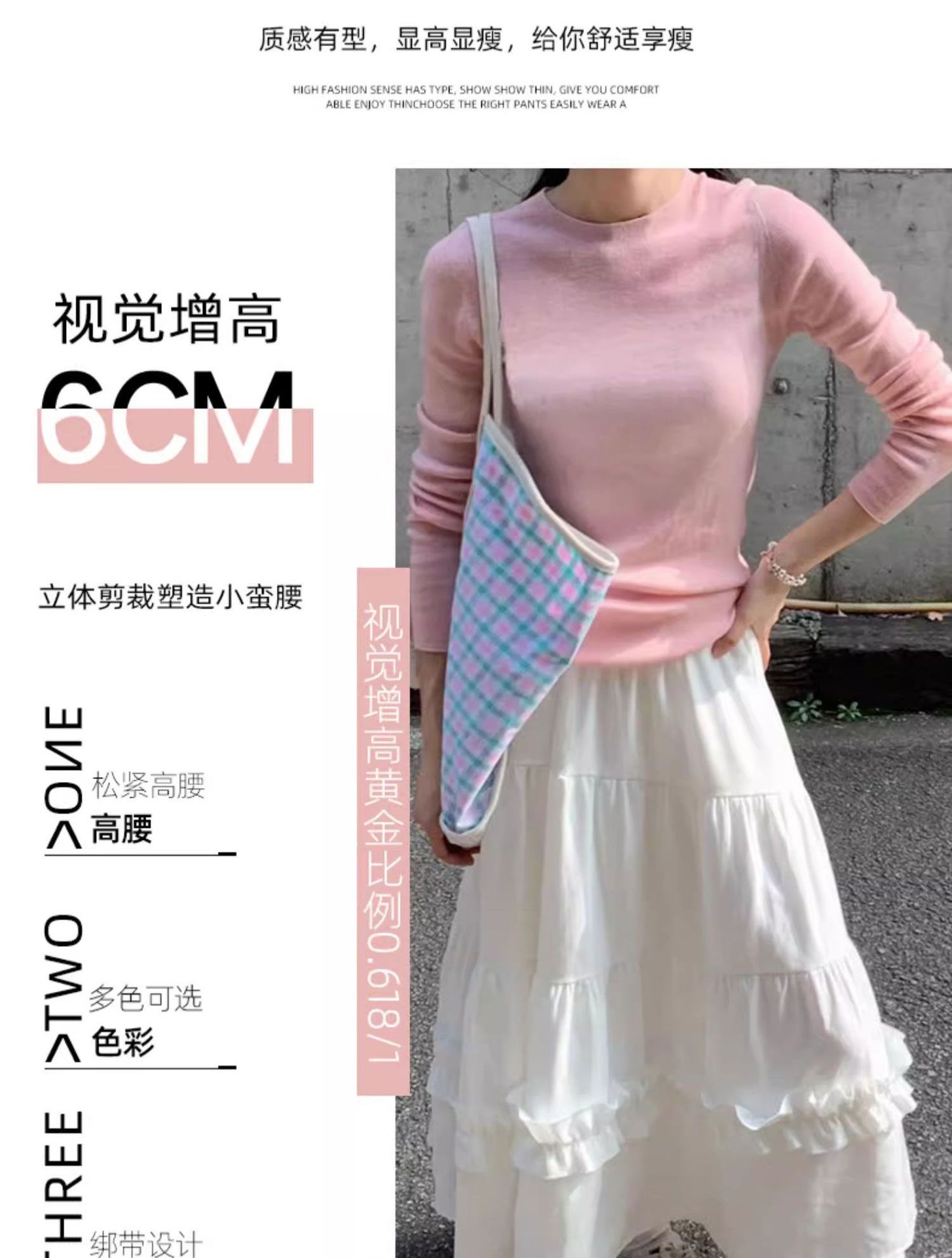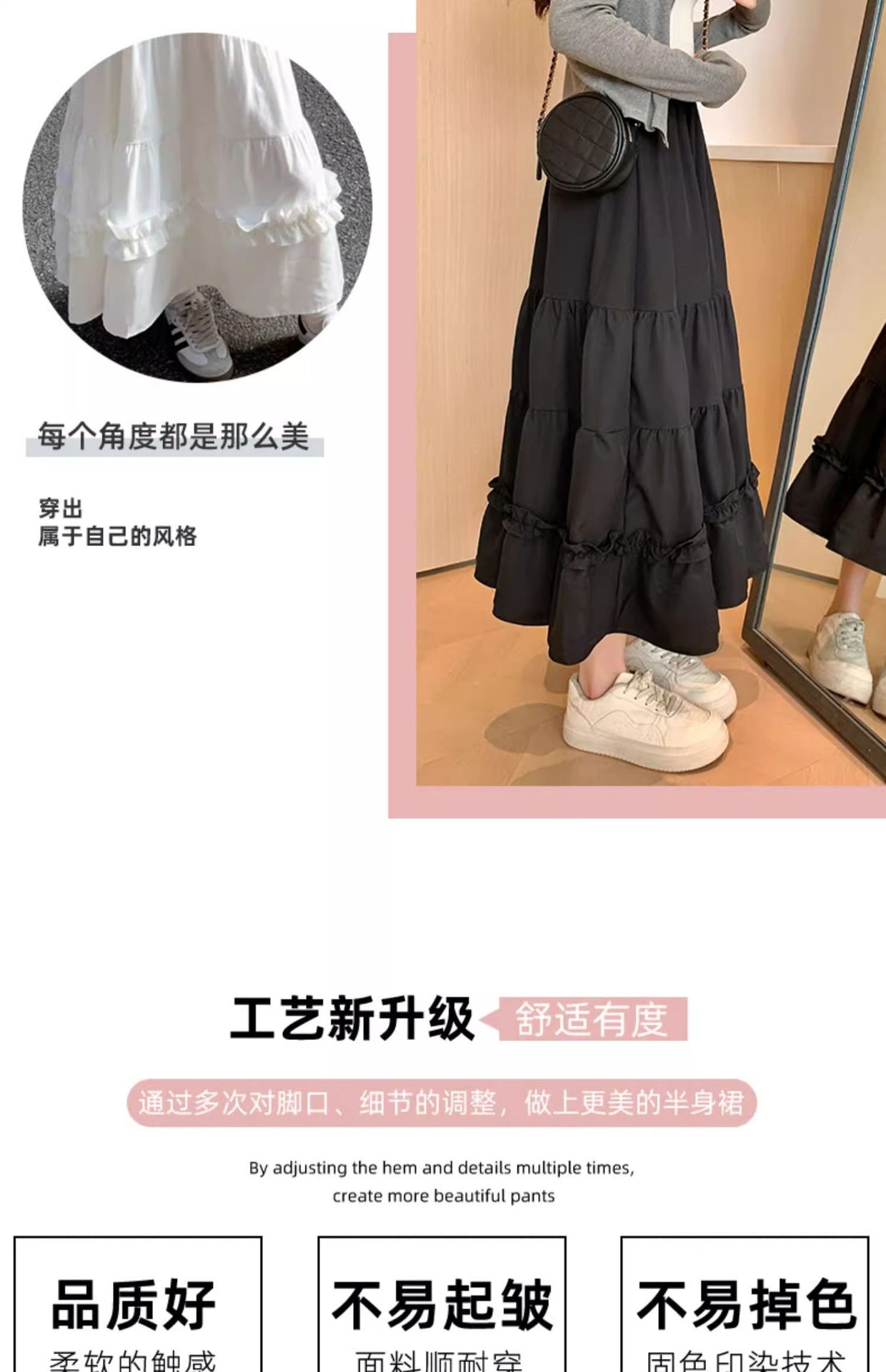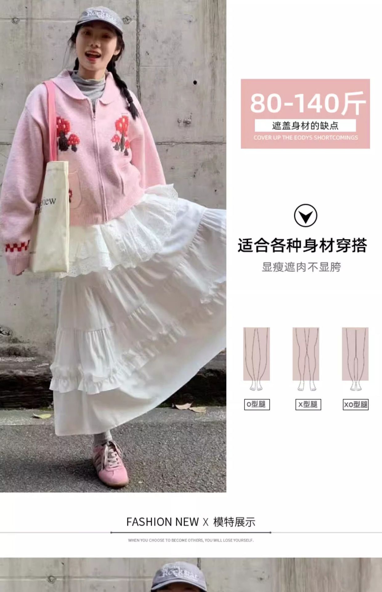 여성을위한 화이트 러플 스커트 2025 봄 여름 새로운 한국 스타일 하이 웨이스트 드레이프 a 라인 버섯 케이크 스커트스토어 가기
