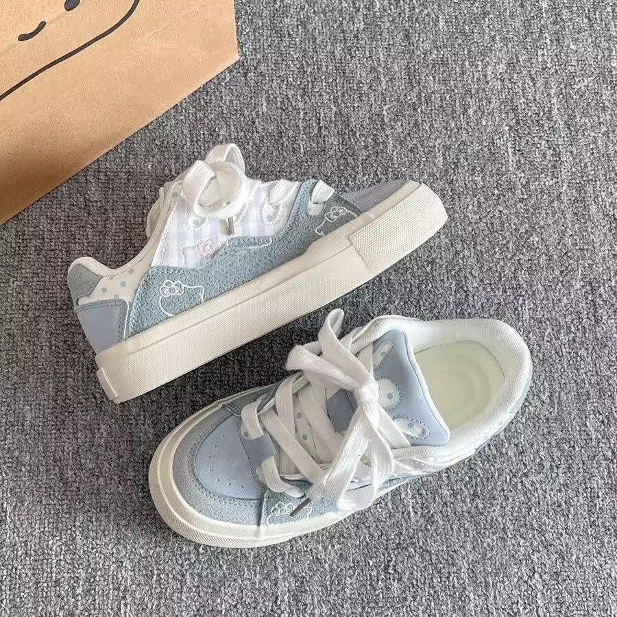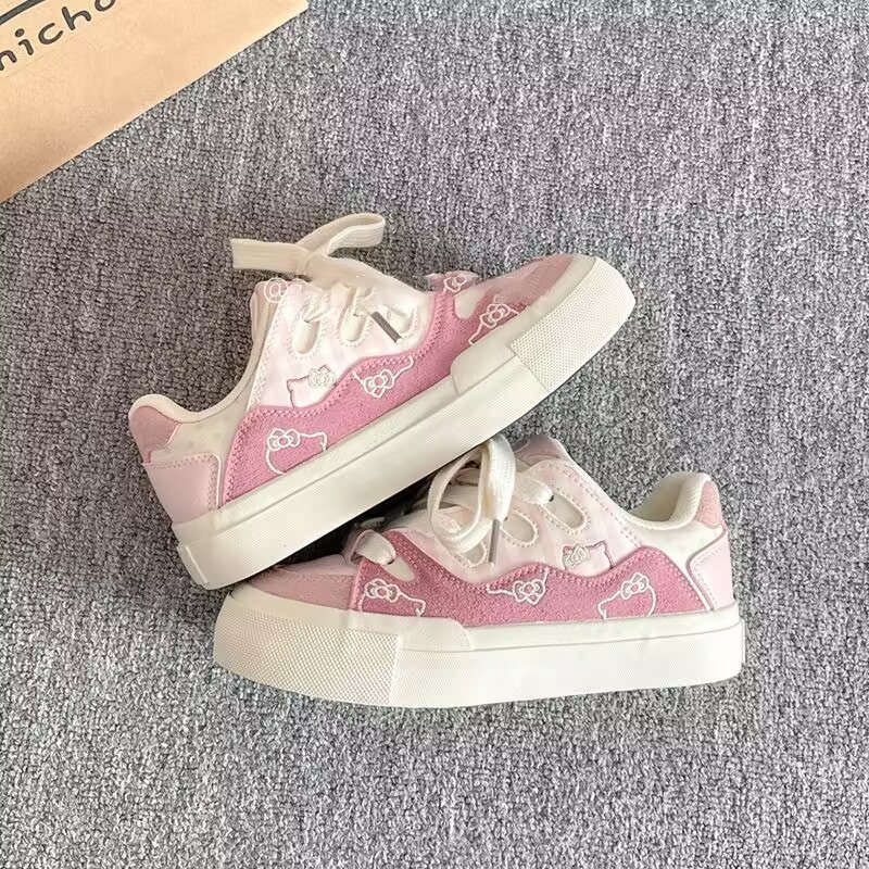 한국 스타일 캐주얼 보드 신발 여성 봄과 여름 2025 새로운 키티 니치 빵 신발 인스타그램 스타일 귀여운 흰색 신발 두꺼운 단독스토어 가기