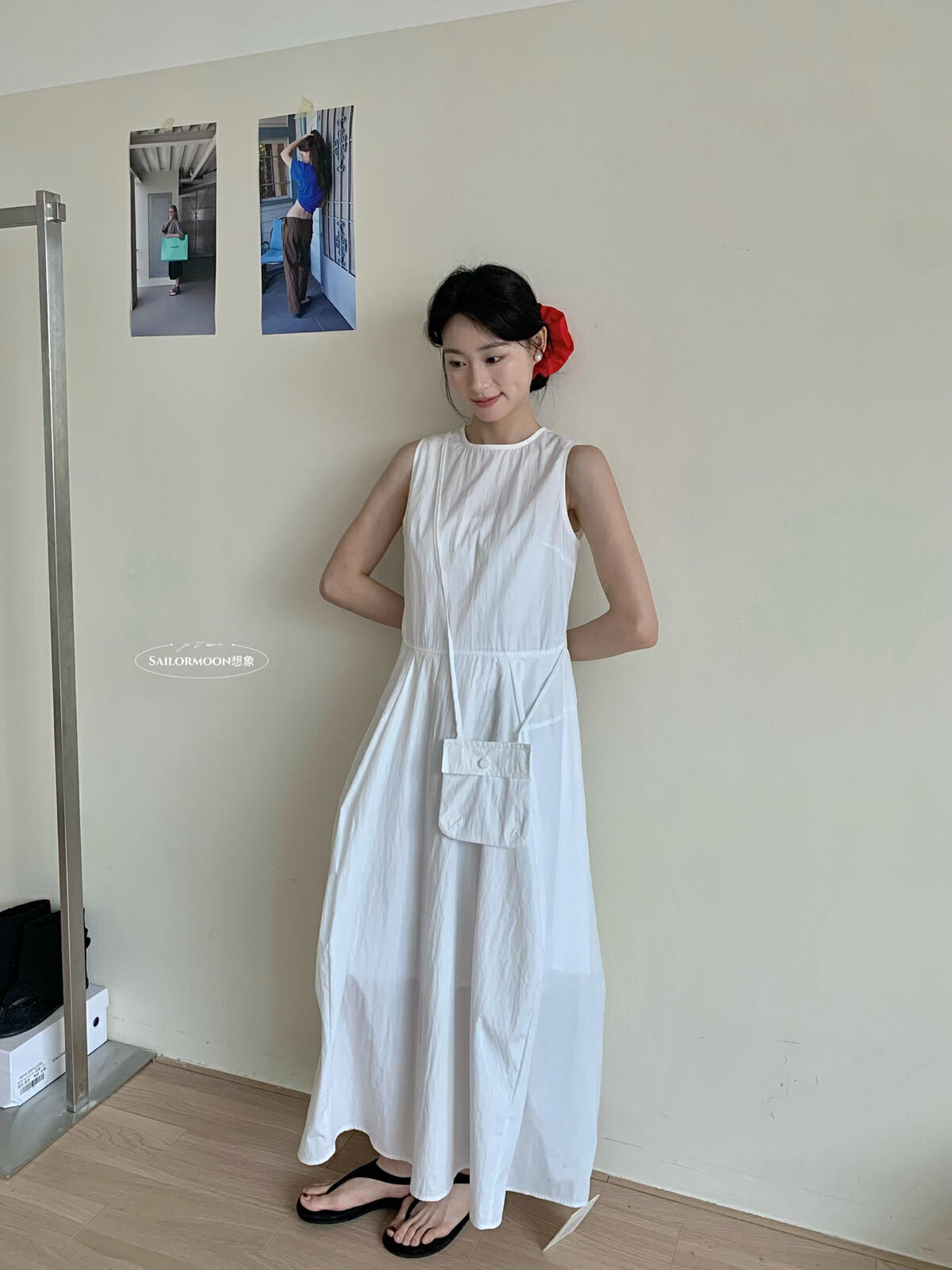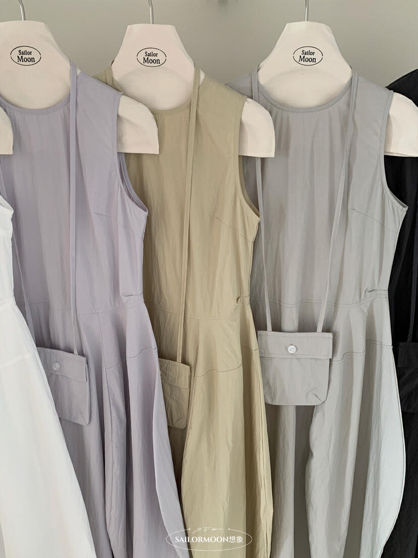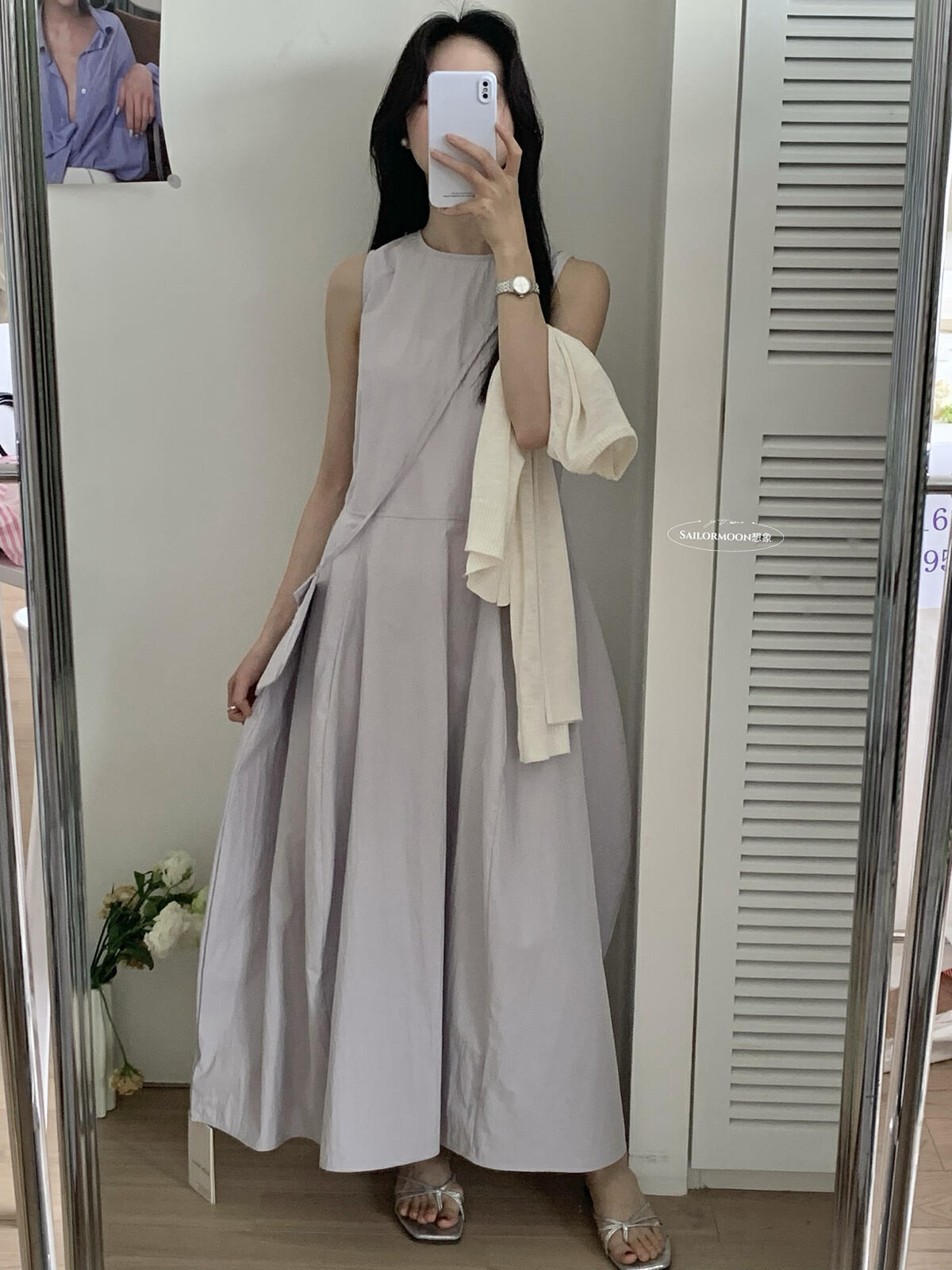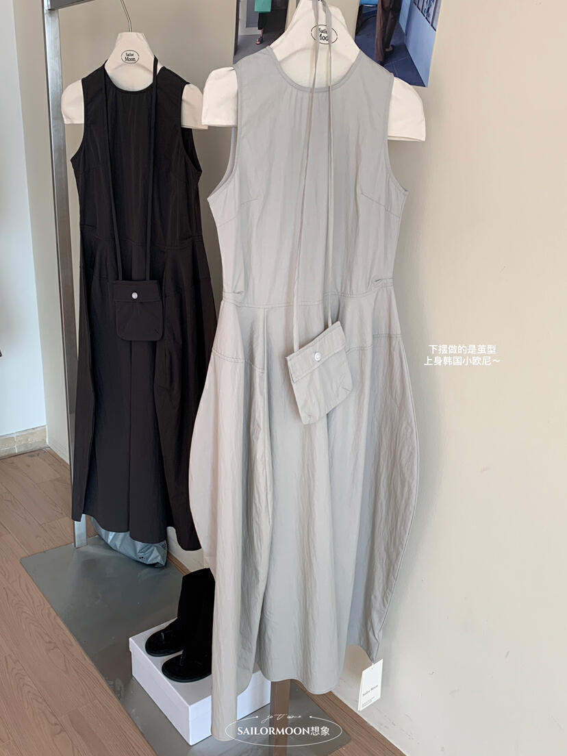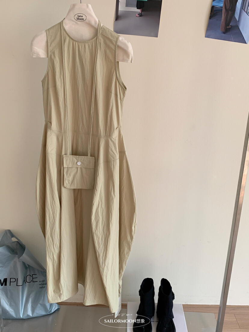 재고정리 무반품 상상의 여름 라운드넥 루즈핏 솔리드 컬러 롱 민소매 캐주얼 원피스 여성용 부드러운 8561