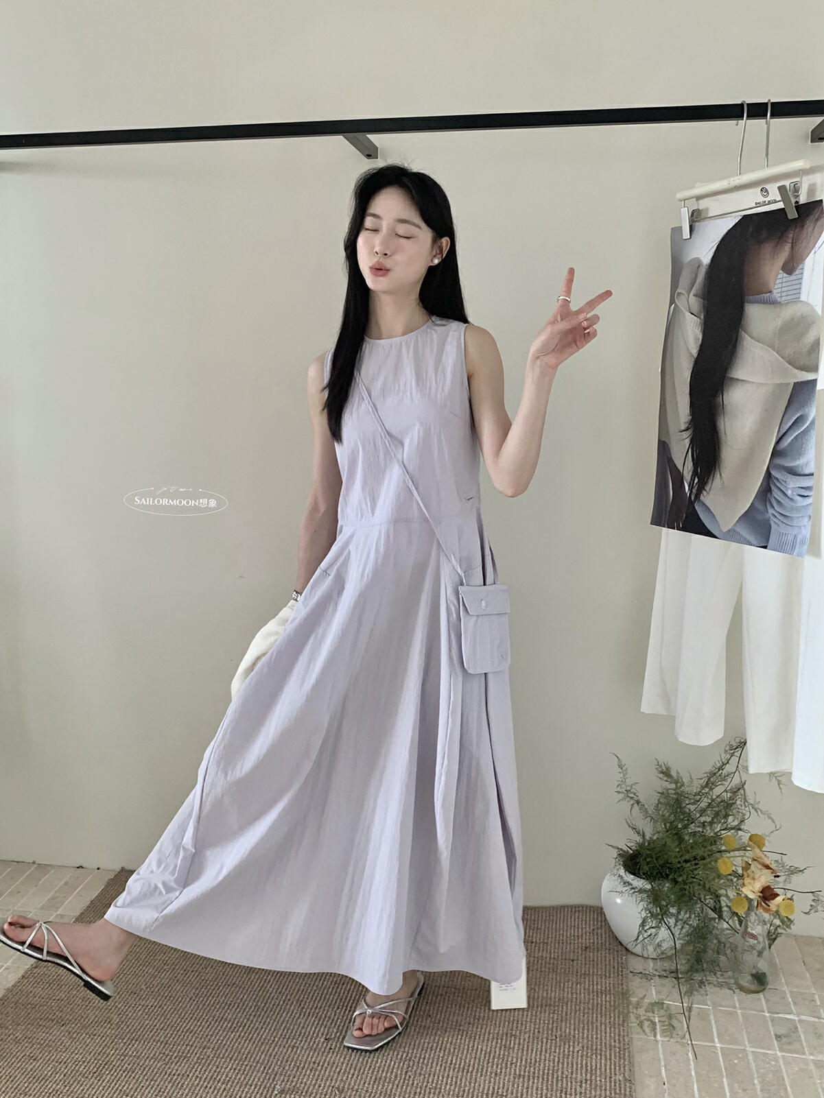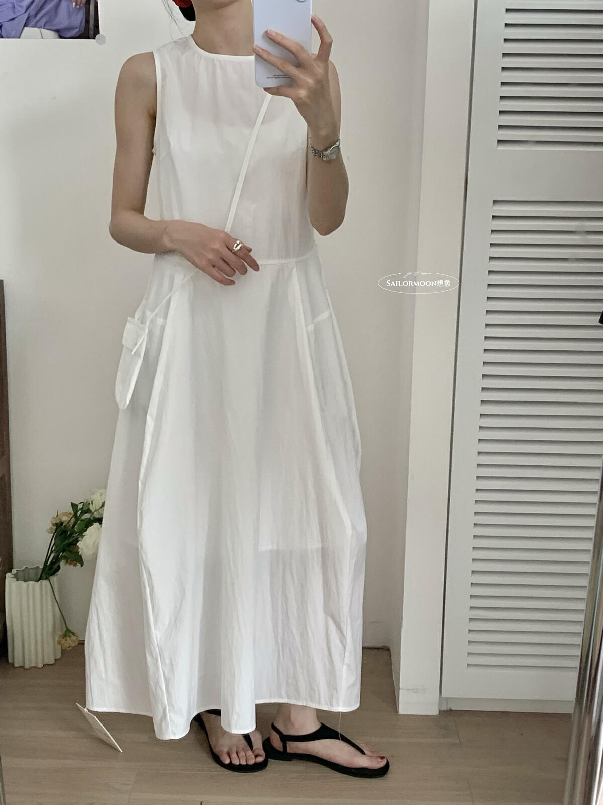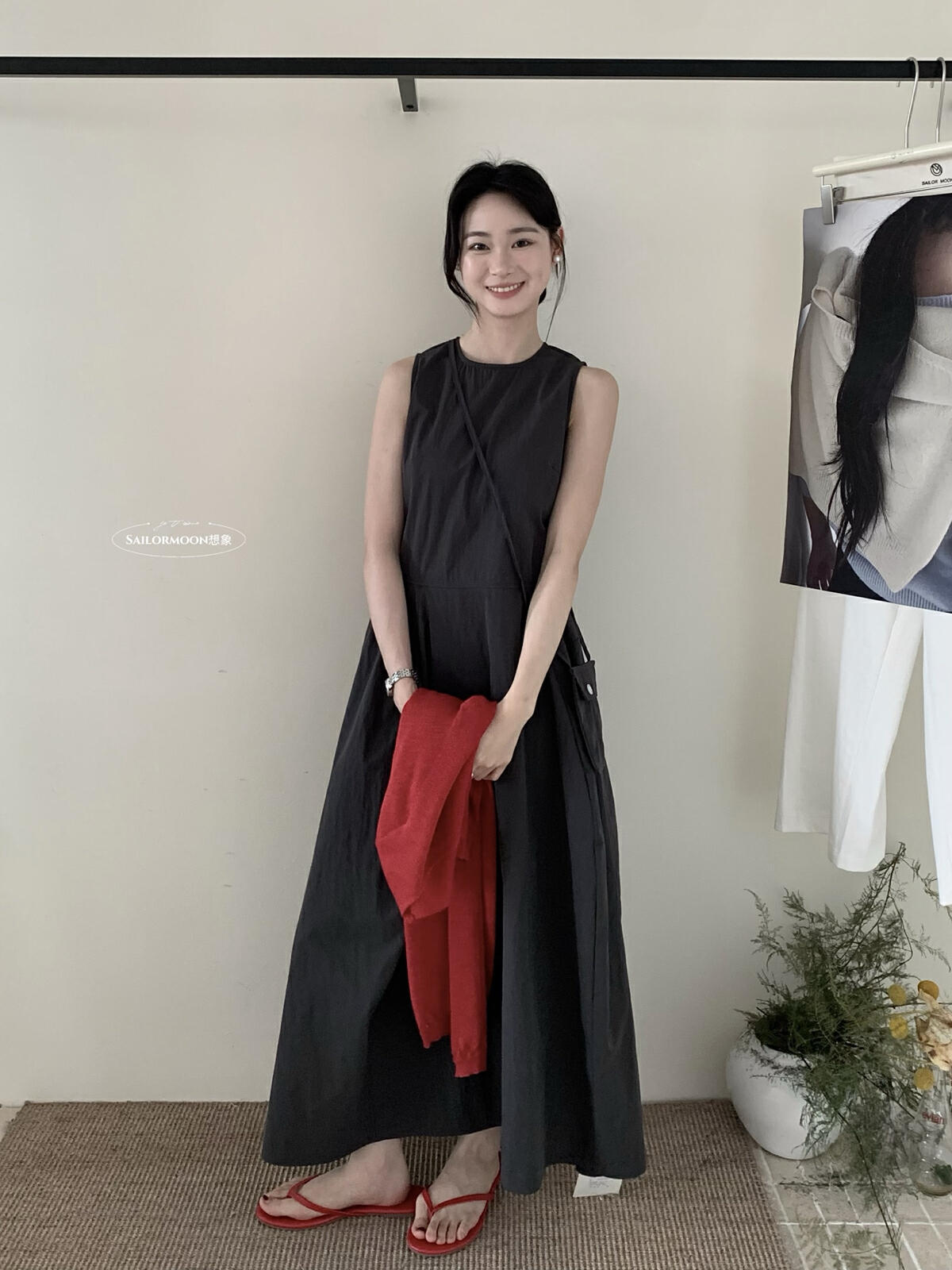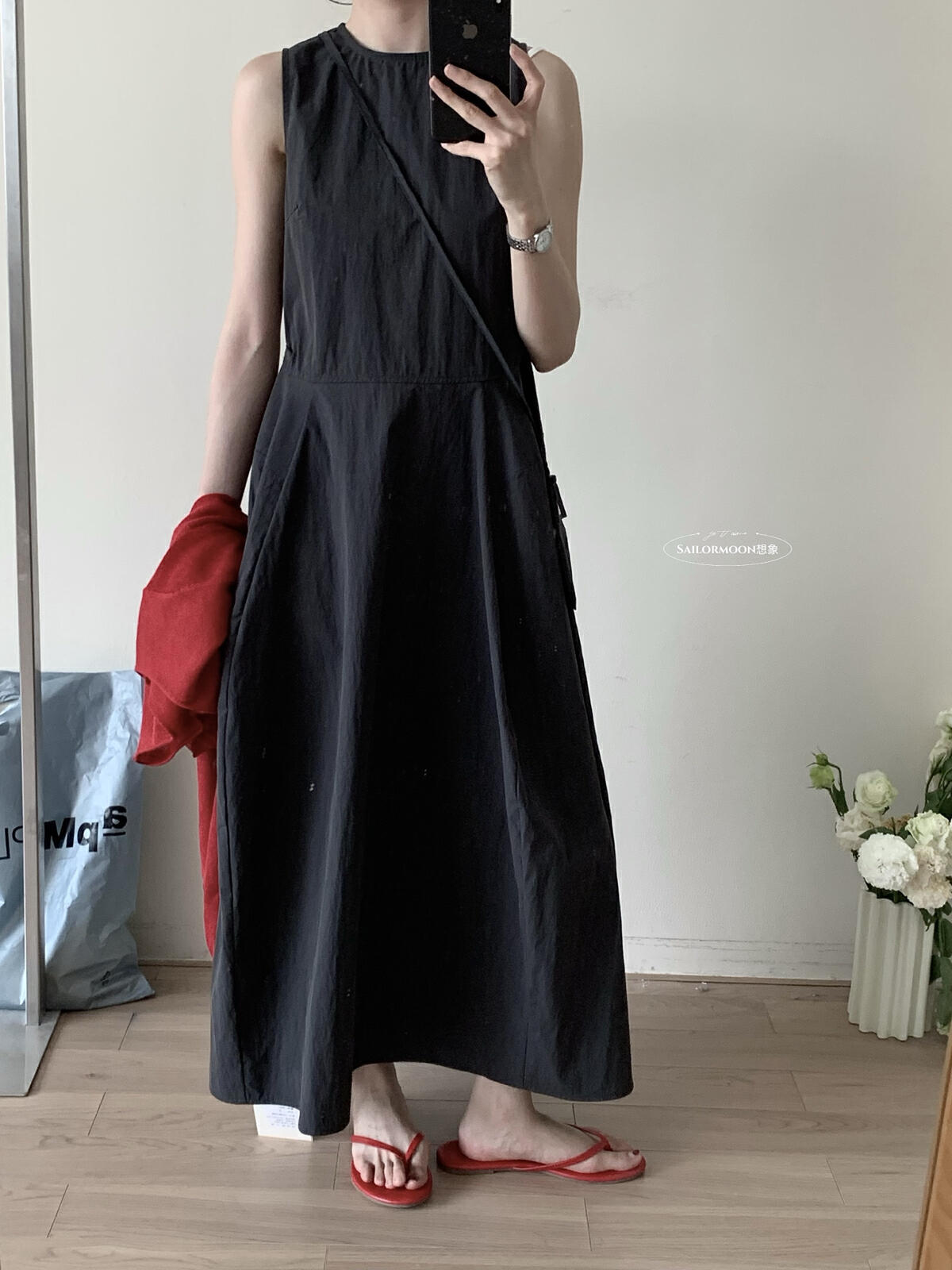 재고정리 무반품 상상의 여름 라운드넥 루즈핏 솔리드 컬러 롱 민소매 캐주얼 원피스 여성용 부드러운 8561