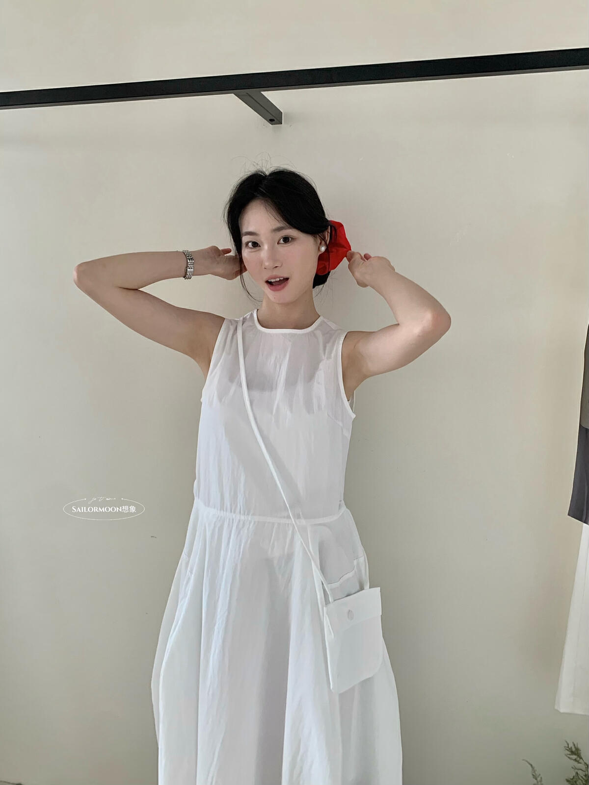 재고정리 무반품 상상의 여름 라운드넥 루즈핏 솔리드 컬러 롱 민소매 캐주얼 원피스 여성용 부드러운 8561스토어 가기