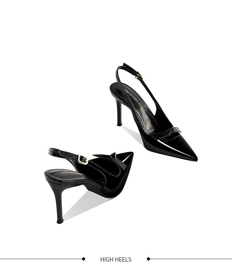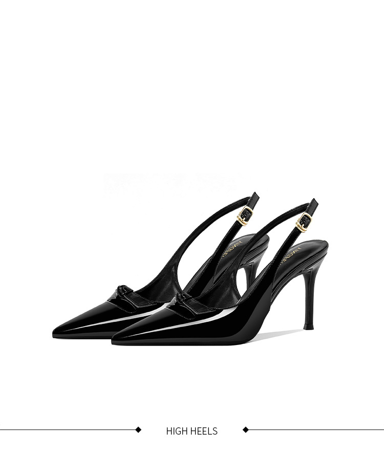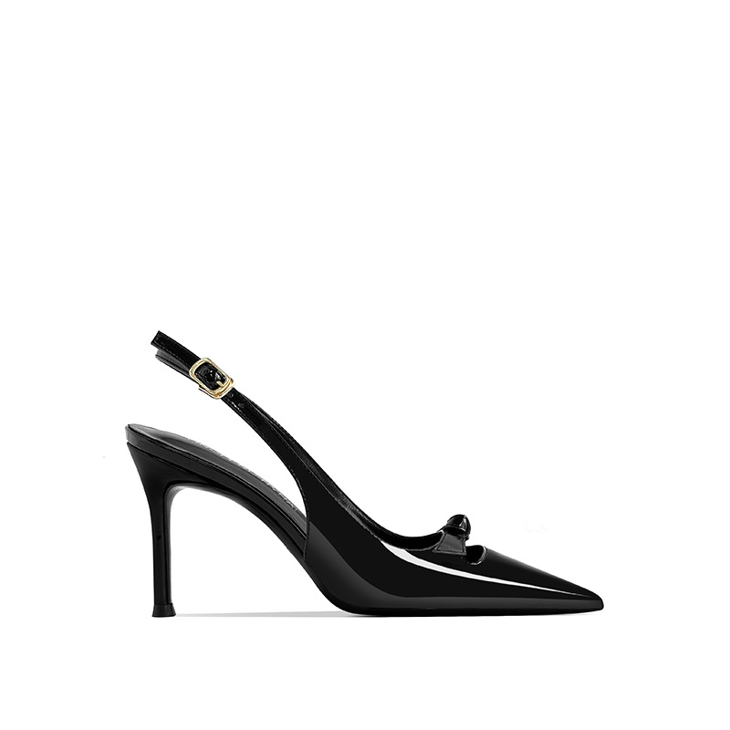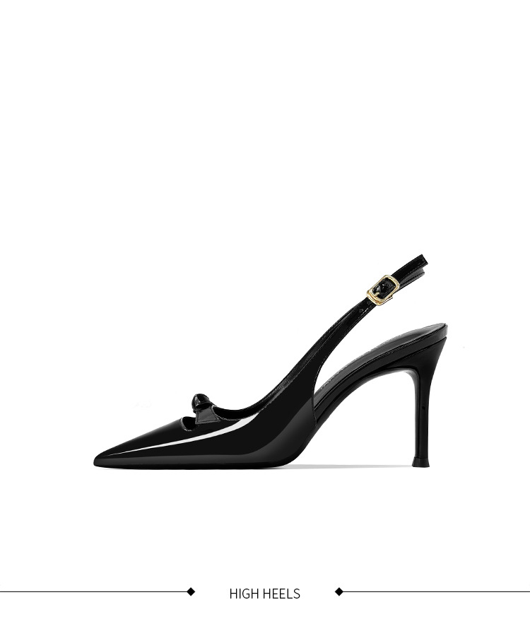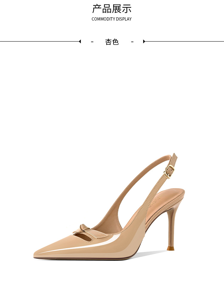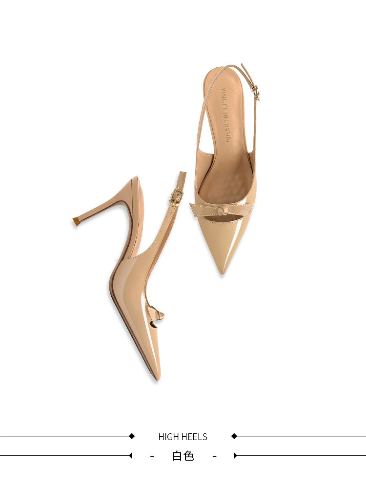 [재고 있음] 바오터우 샌들, 슬림 힐, 2025 봄 여름 스타일, 리본 포인티드 토 샌들, 여성용 뒷면이 비어있는 싱글 슈즈스토어 가기