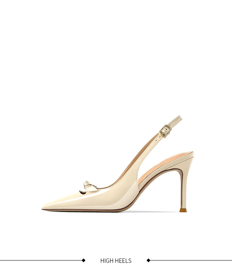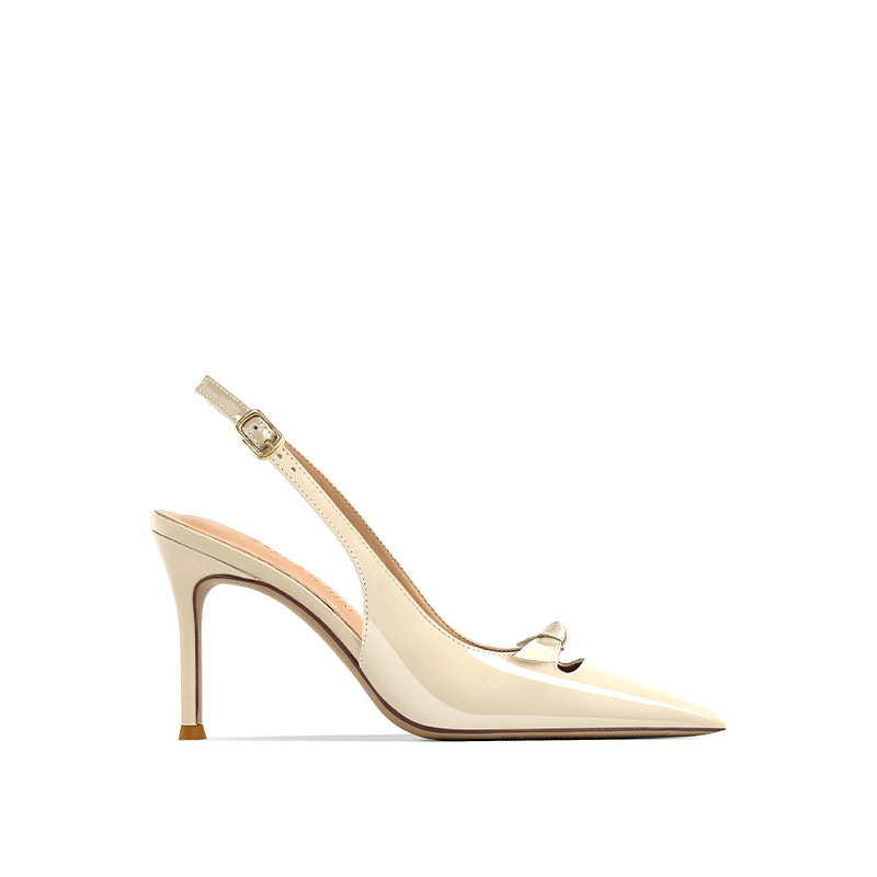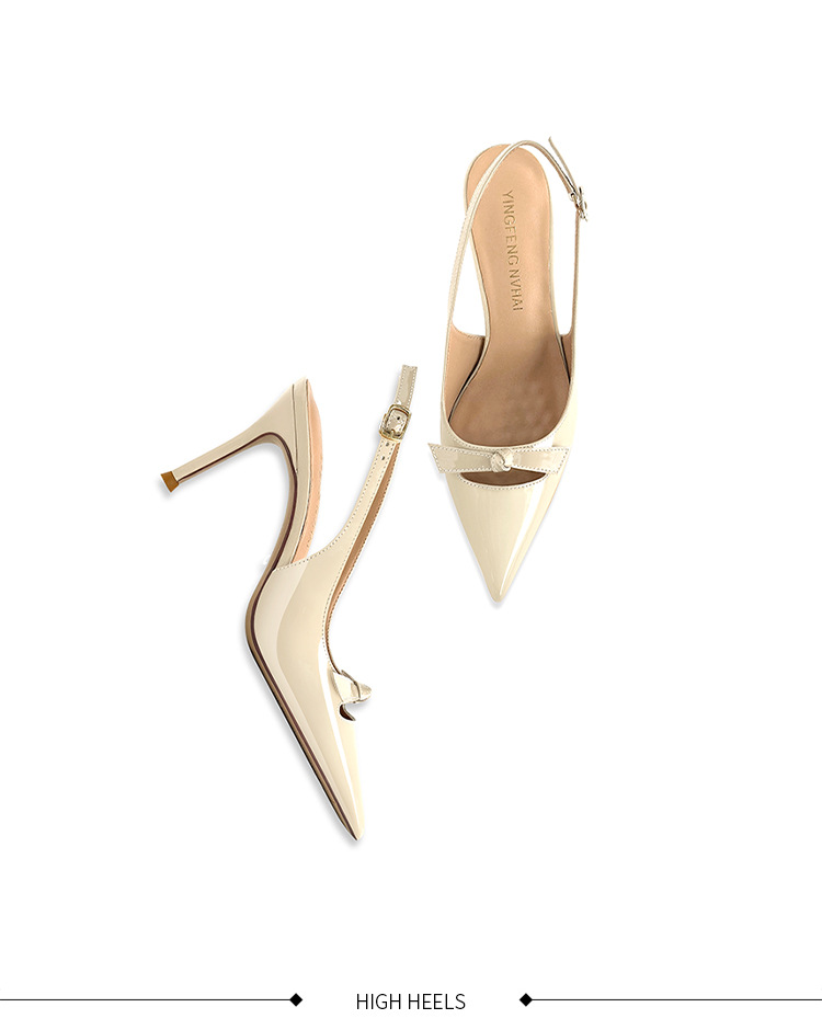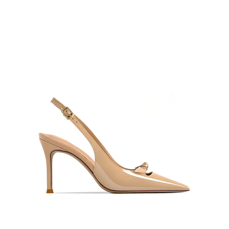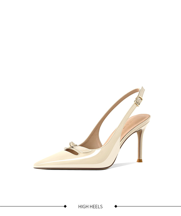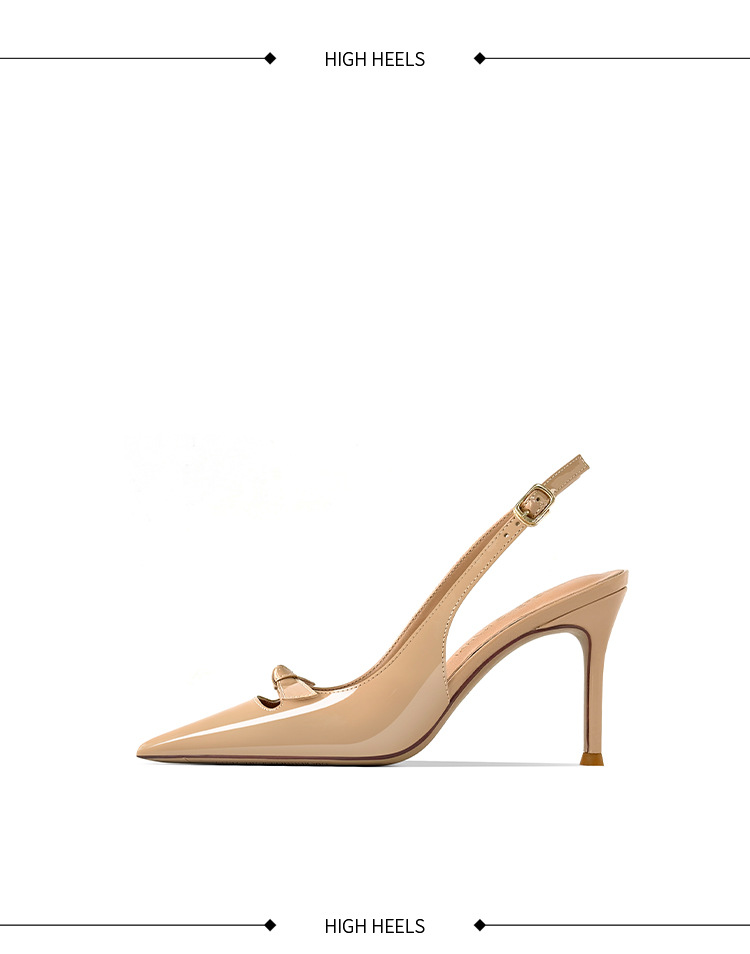 [재고 있음] 바오터우 샌들, 슬림 힐, 2025 봄 여름 스타일, 리본 포인티드 토 샌들, 여성용 뒷면이 비어있는 싱글 슈즈스토어 가기