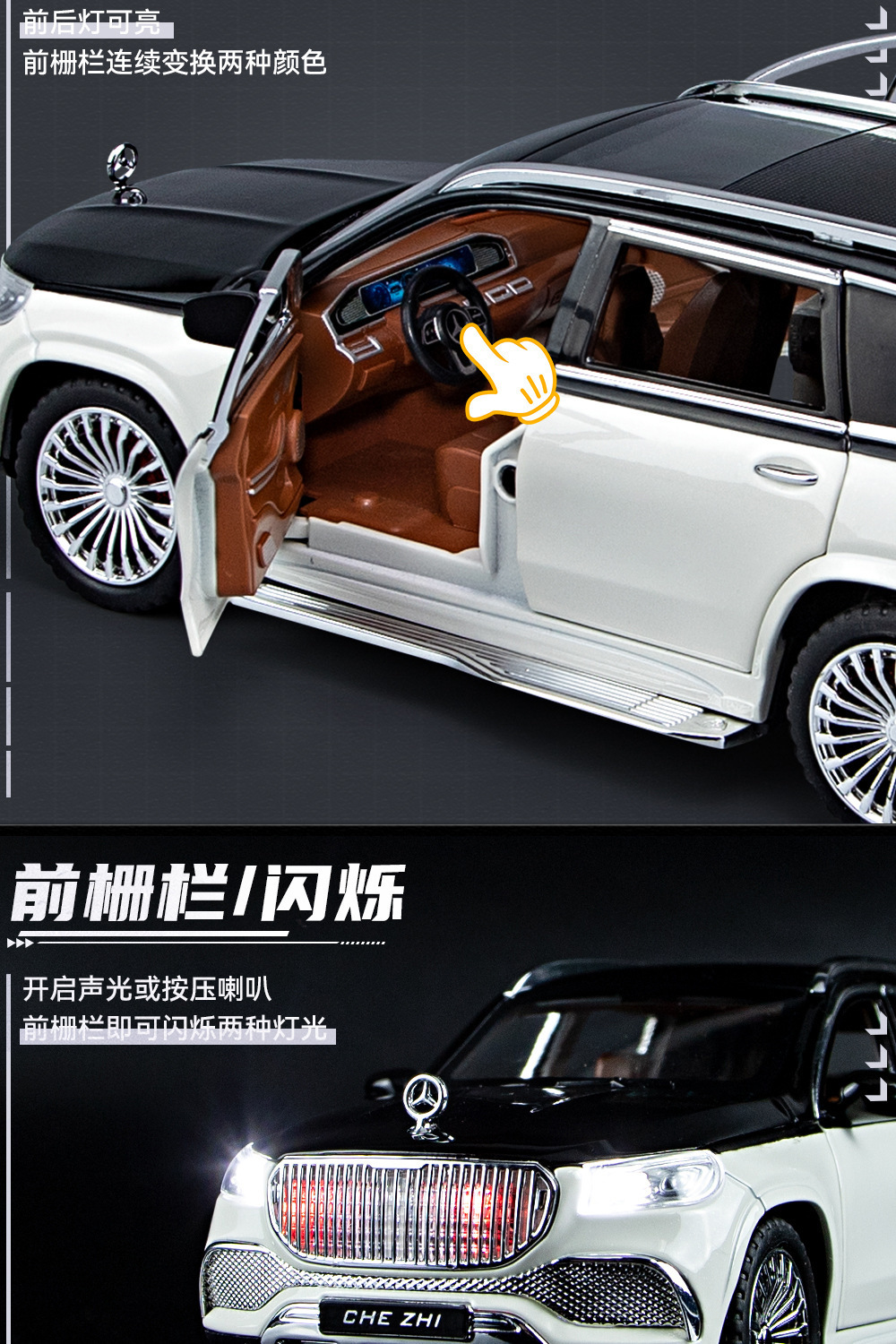 Chezhi 1:24 메르세데스-벤츠 마이바흐 GLS600 합금 자동차 모방 실제 자동차 장난감 소년 선물 컬렉션 장식품