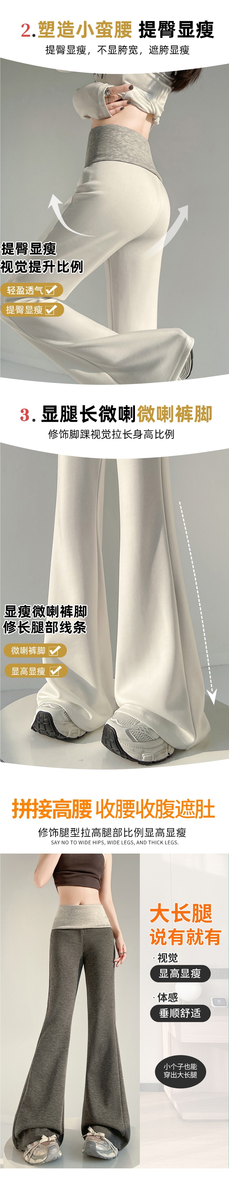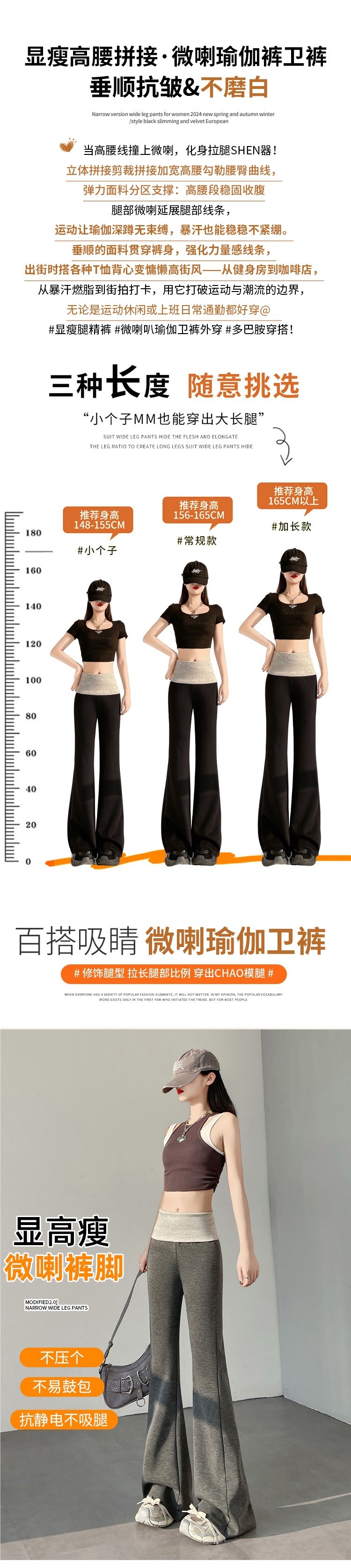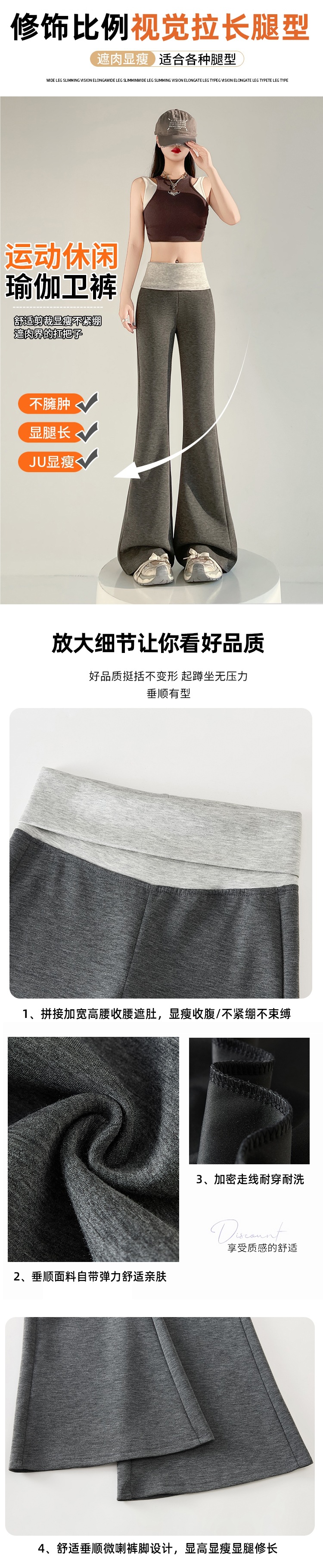 에어 레이어 대비 컬러 스티칭 마이크로 팬츠 여성의 여름 디자인 센스 탄성 슬림 플레어 팬츠 캐주얼 요가 스웨트 팬츠스토어 가기